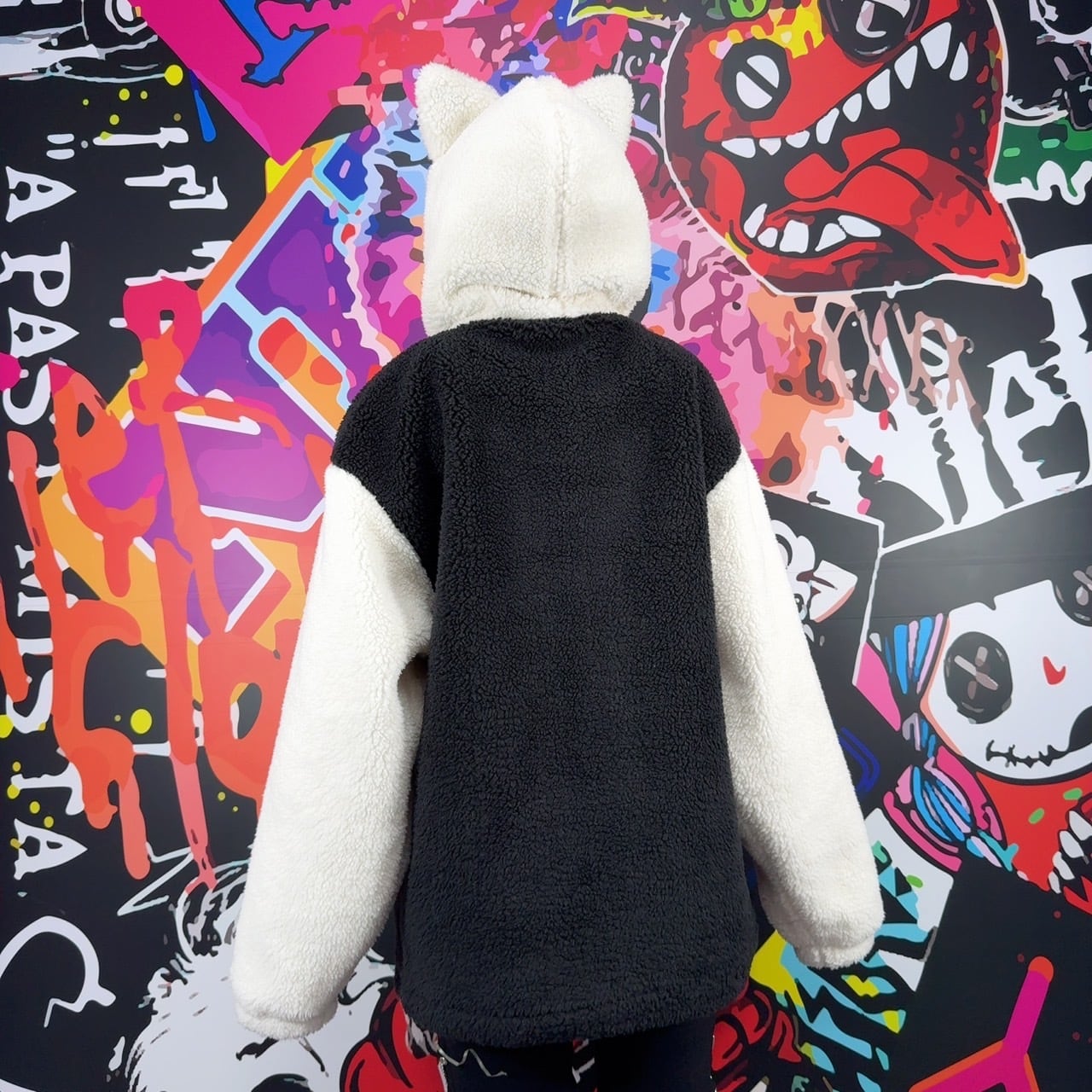 身頃部分はブラック、袖とフードはホワイトの配色で、