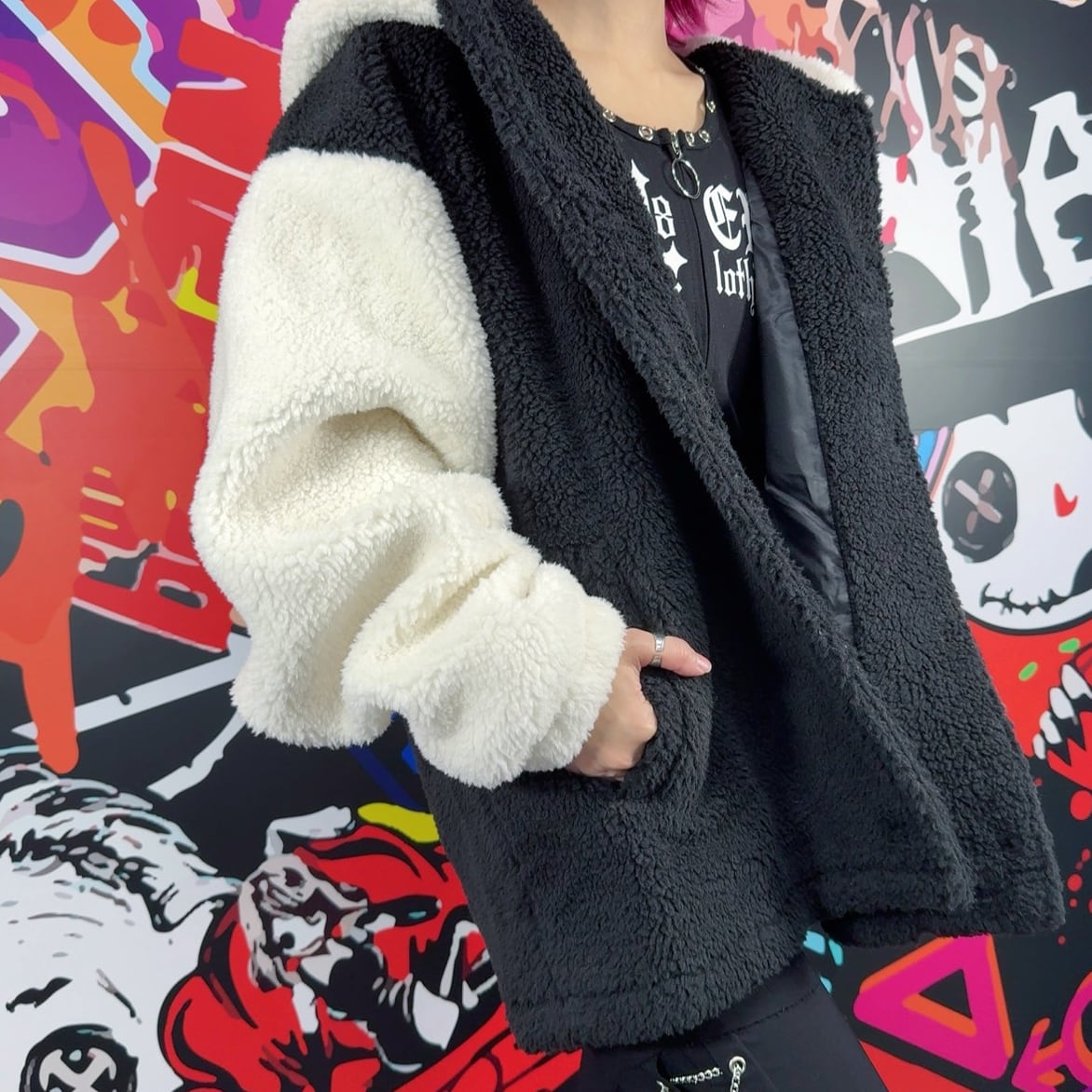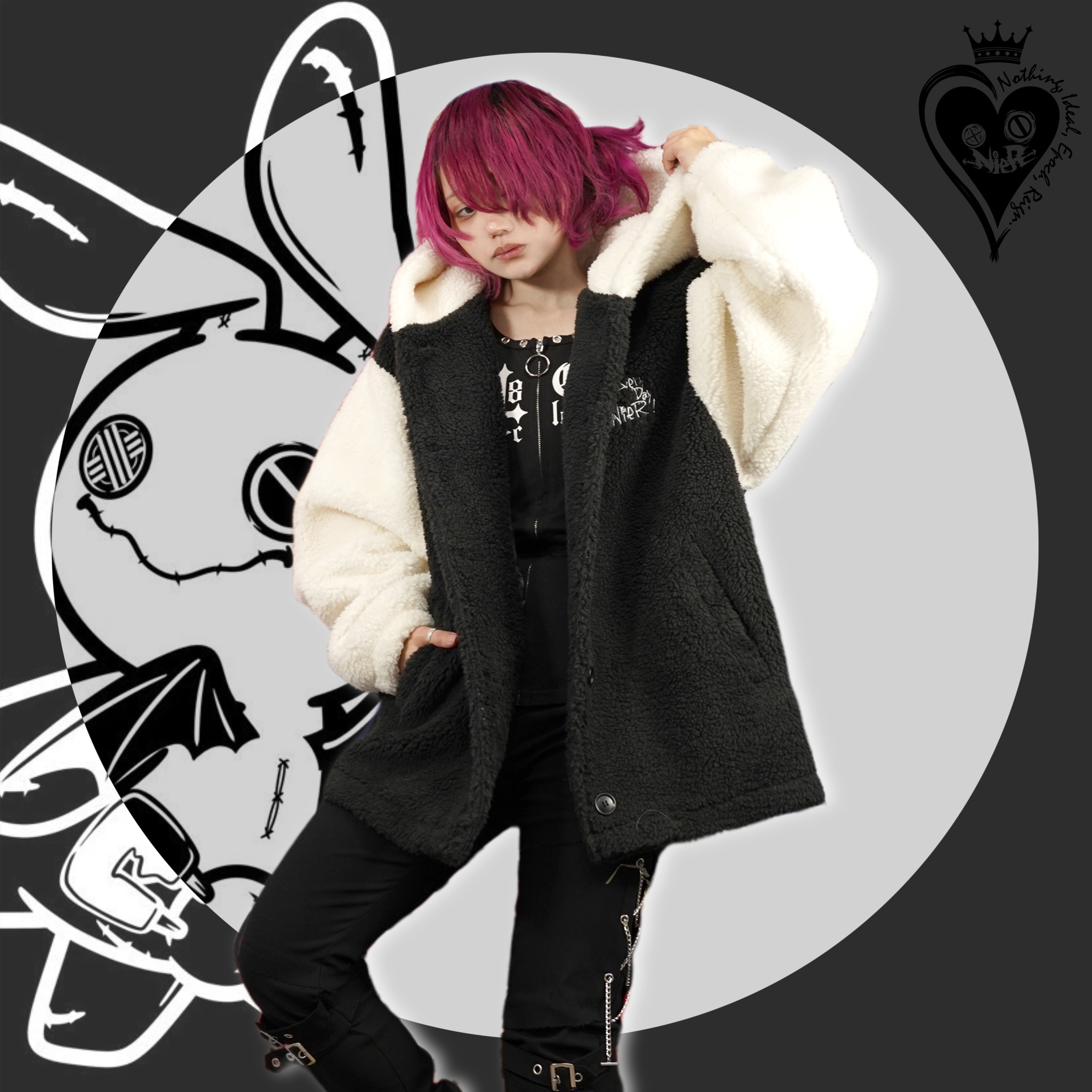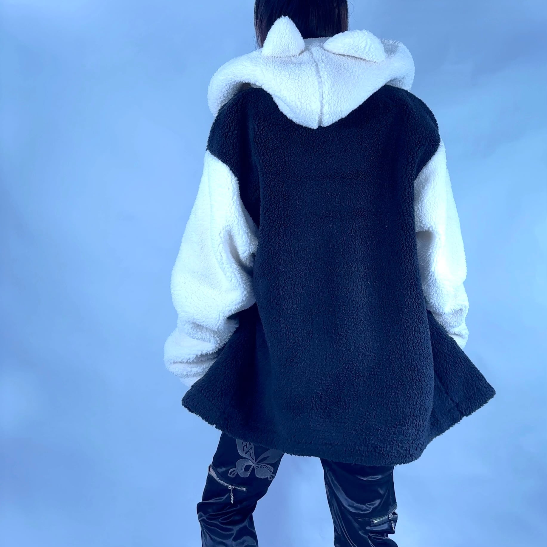 早い者勝ち70%OFF‼︎耳付きフードバイカラーボアアウター【BLACK BASE】