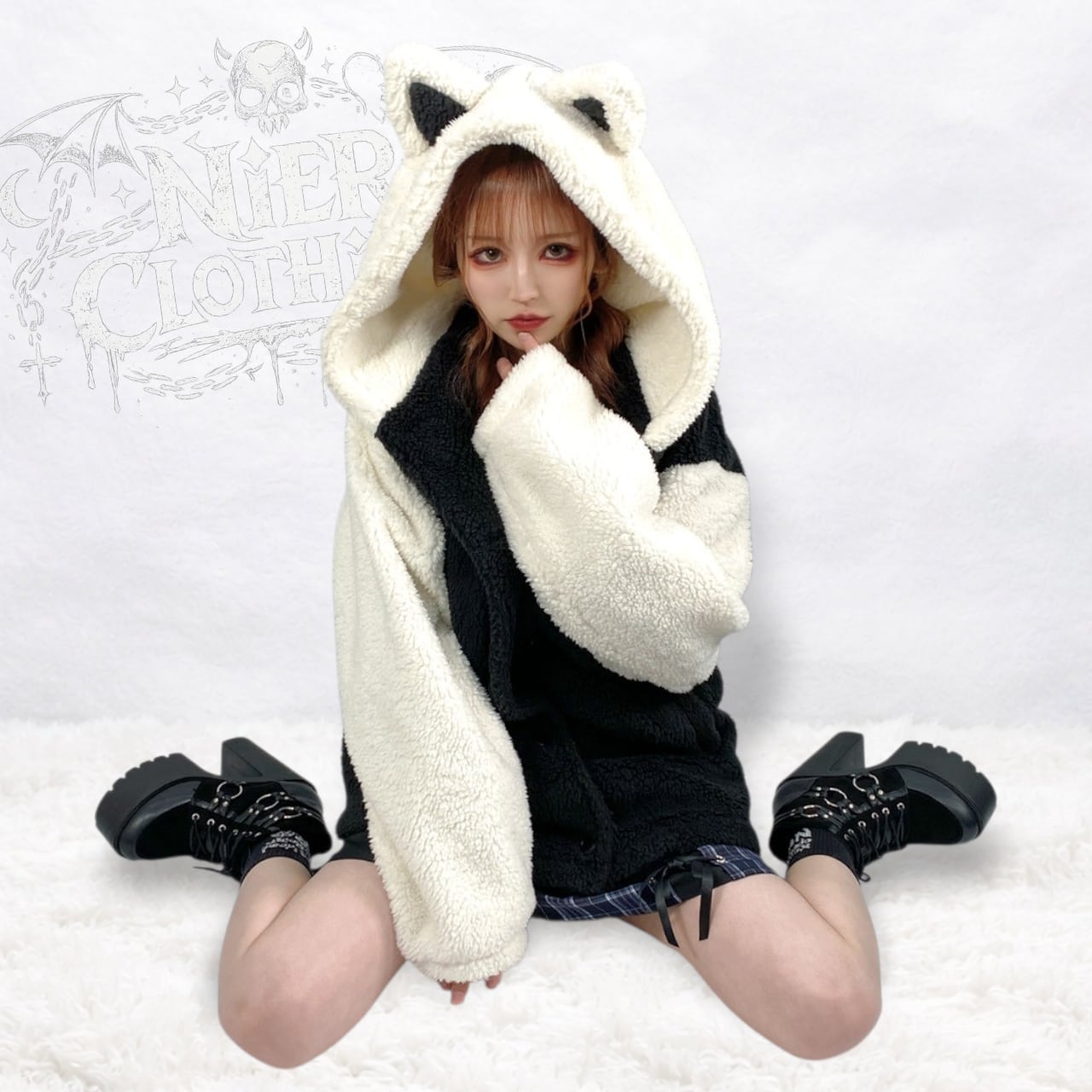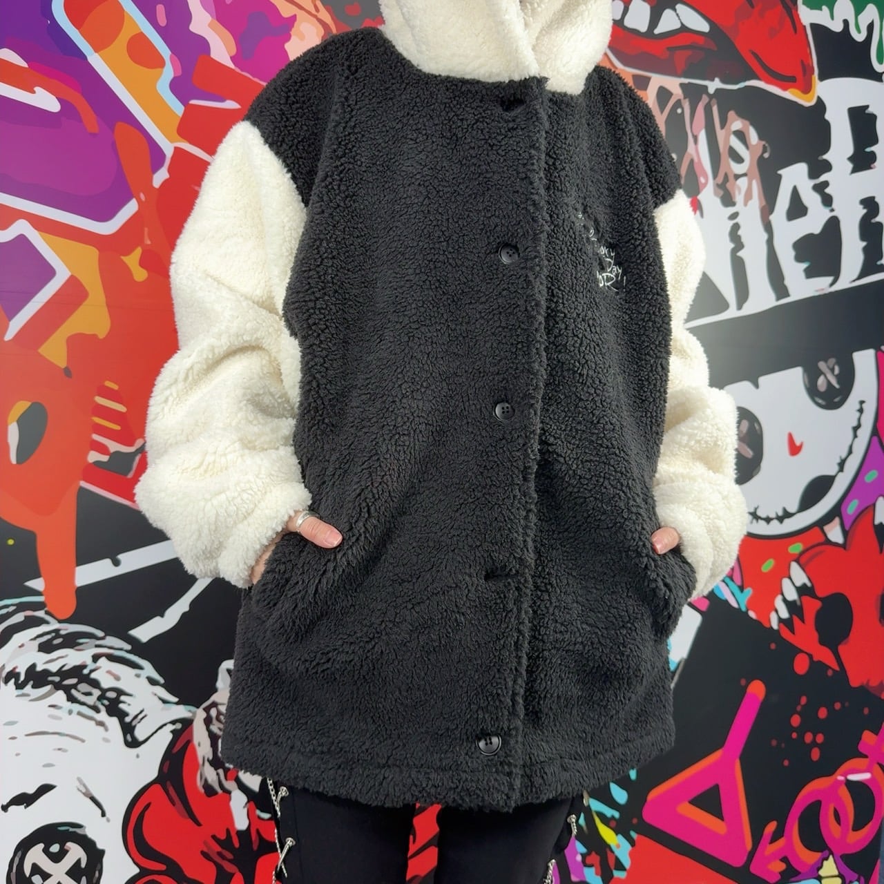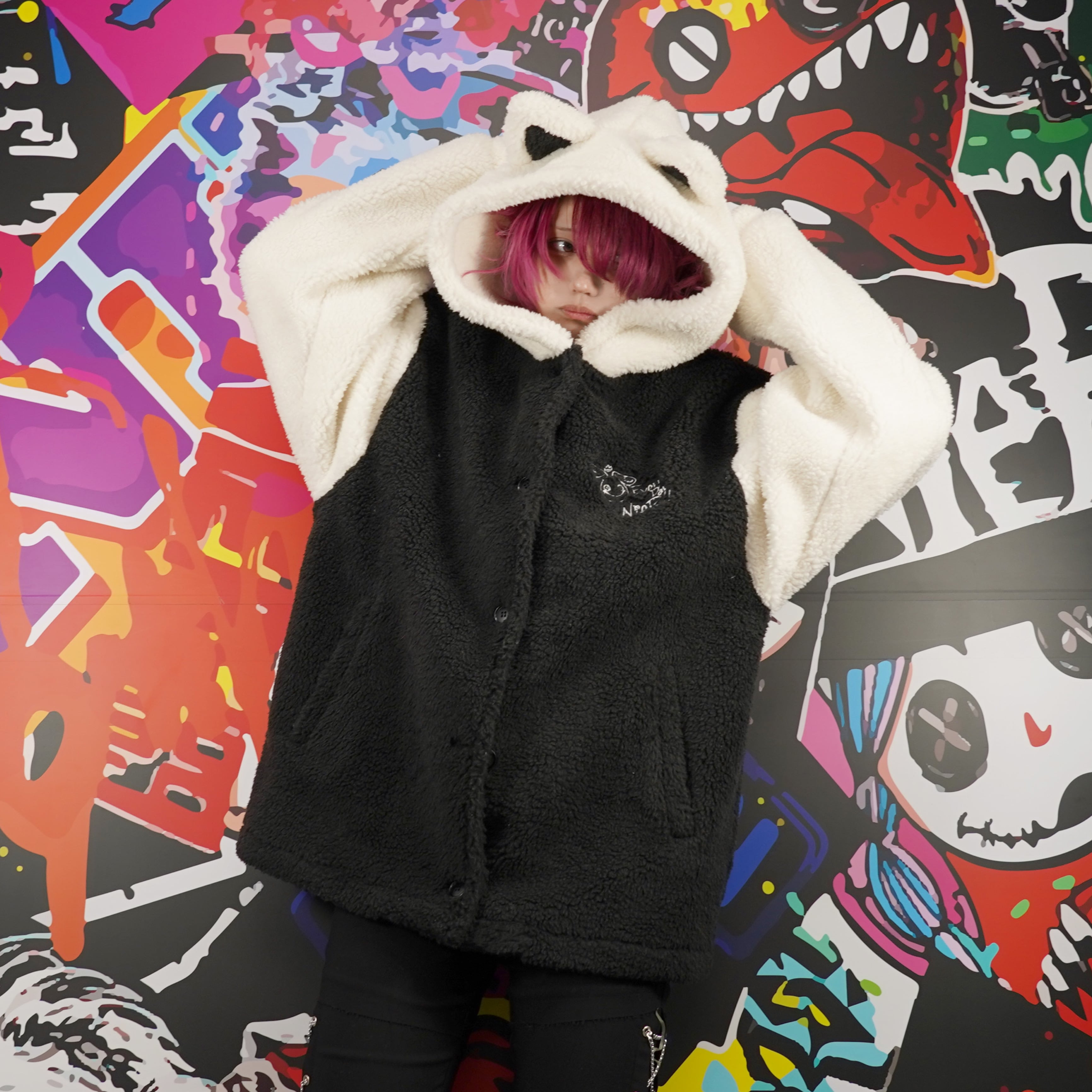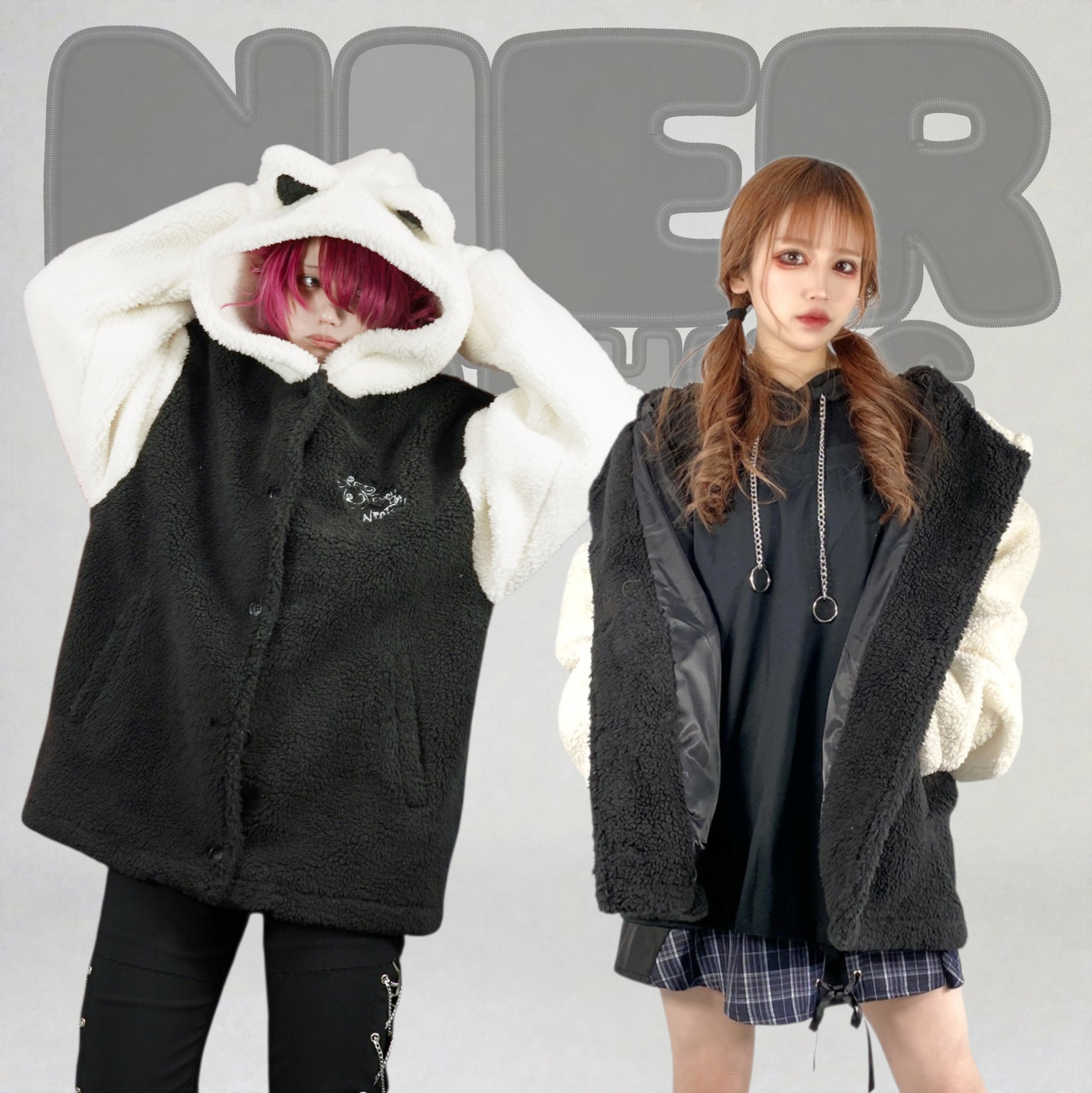 早い者勝ち70%OFF‼︎耳付きフードバイカラーボアアウター【BLACK BASE】