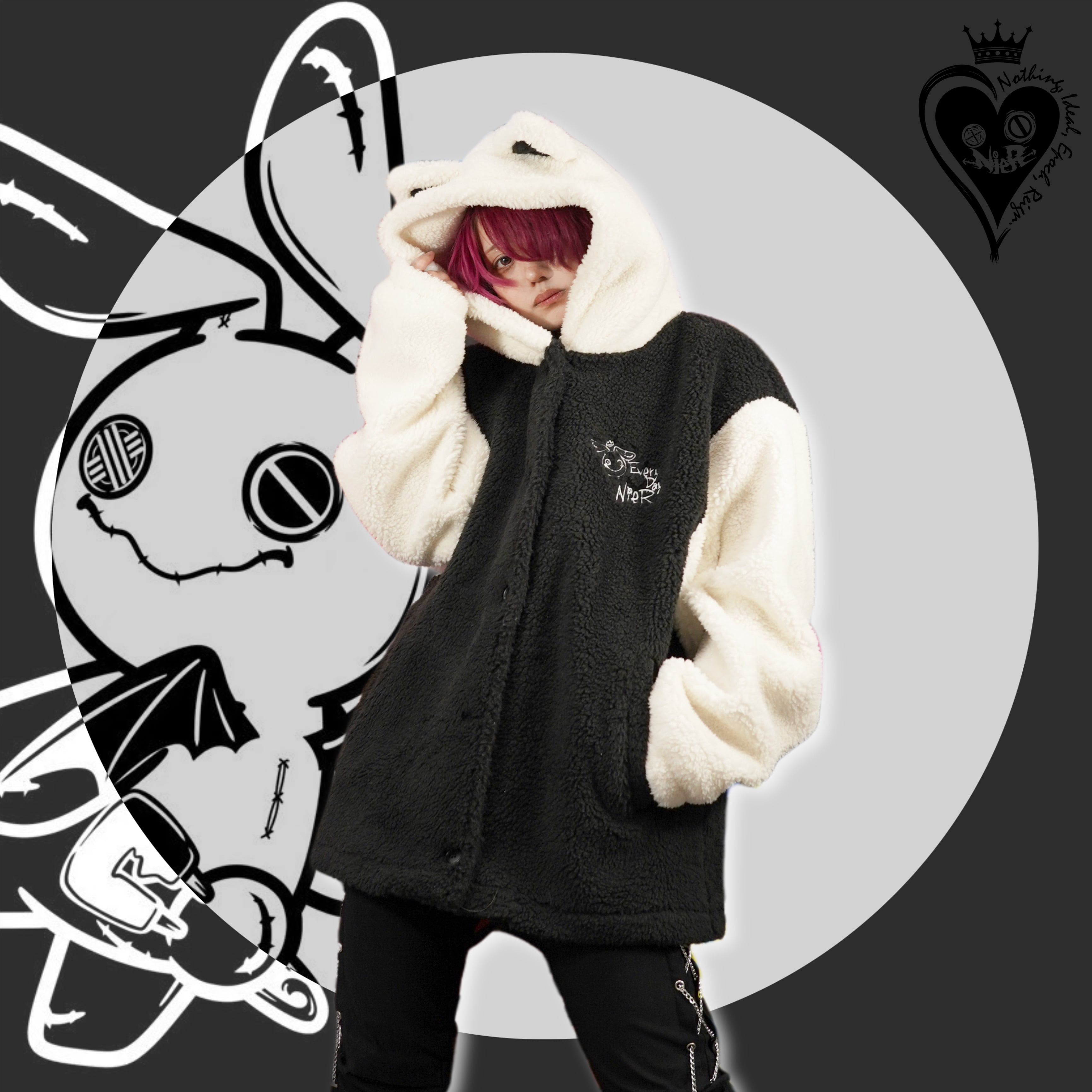 見た目の可愛さと着やすさを兼ね備えた耳付きアウターです。