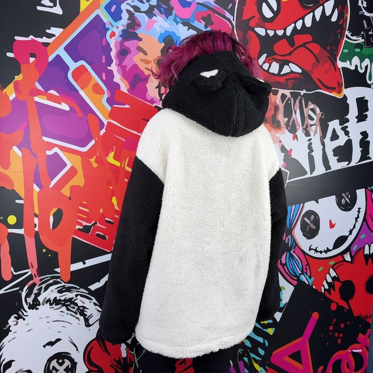フードには立体的な耳付きデザインを採用し、