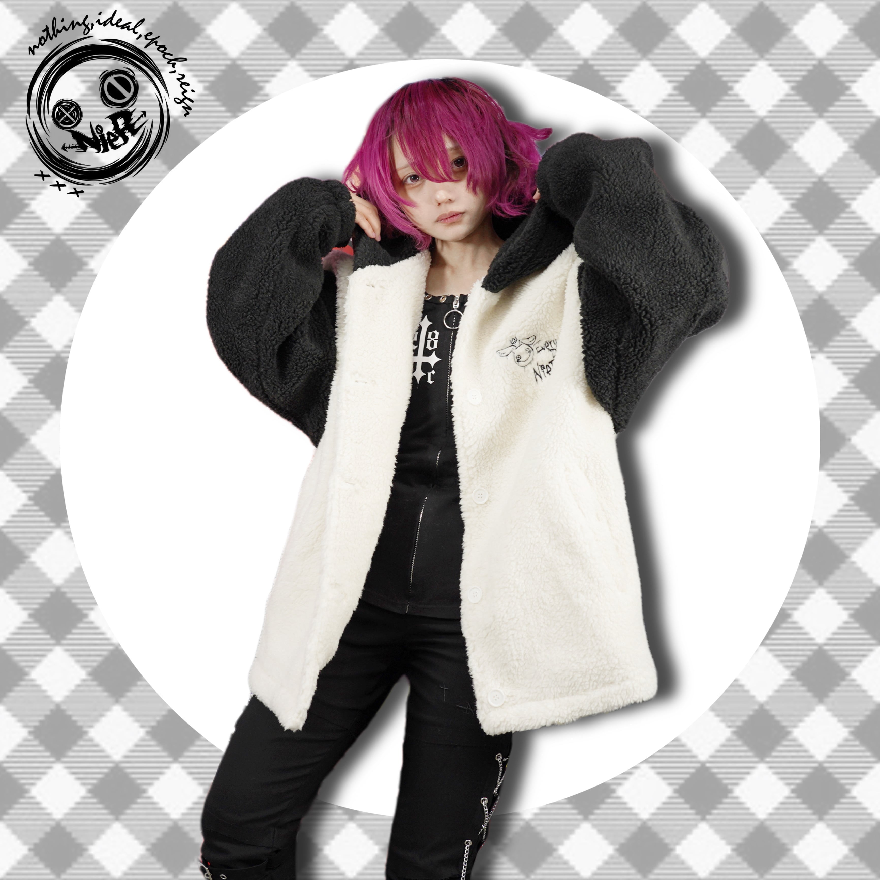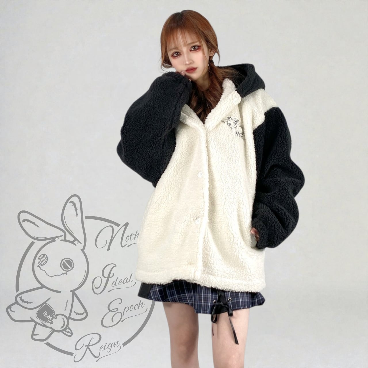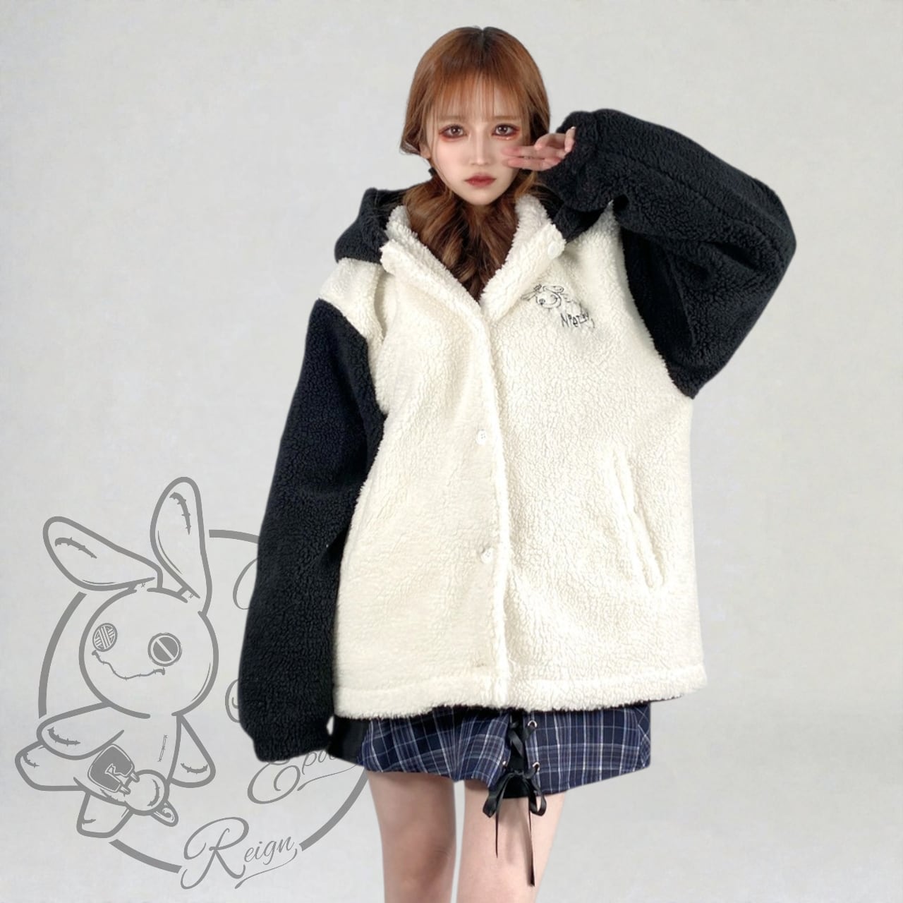 耳付きフードバイカラーボアアウター【WHITE BASE】