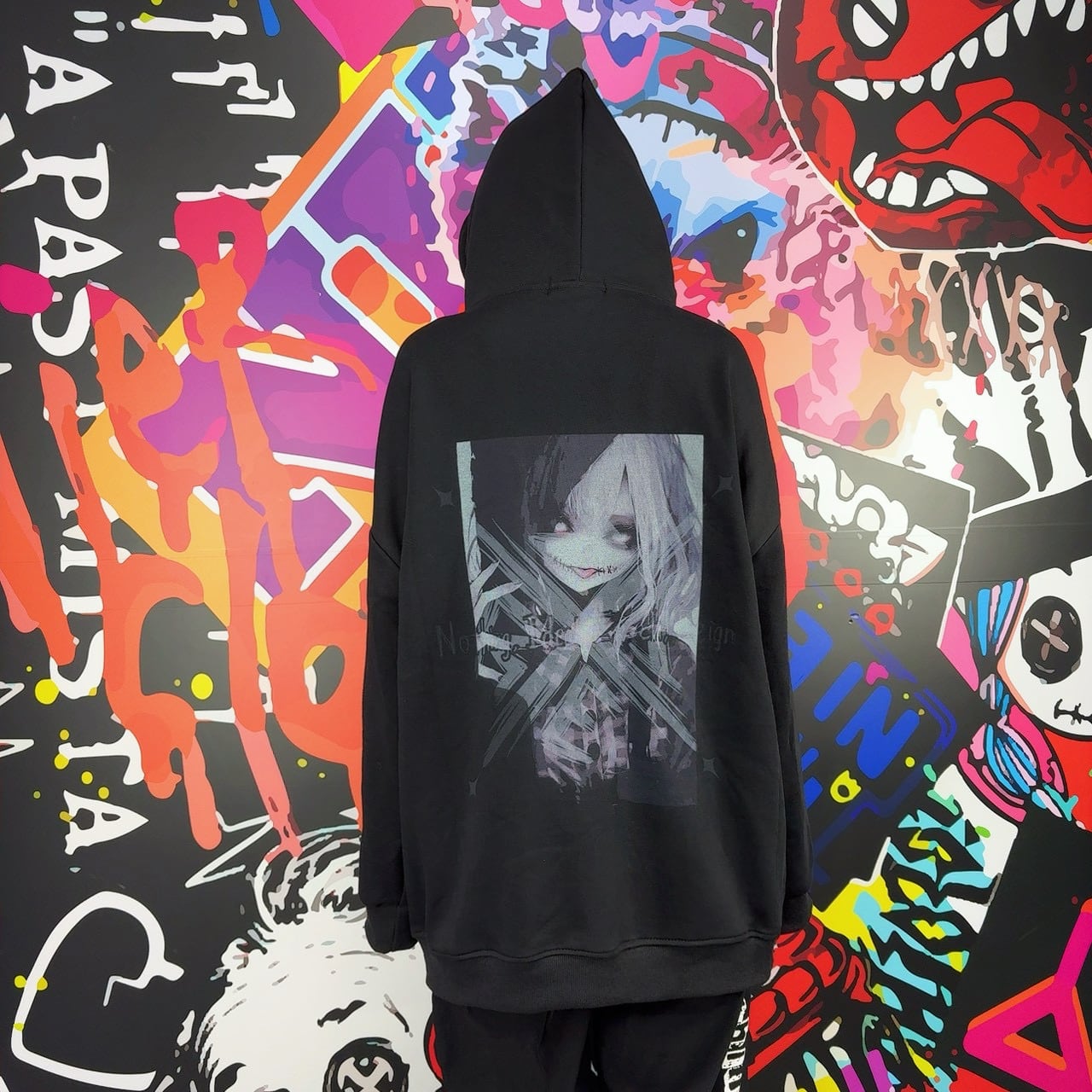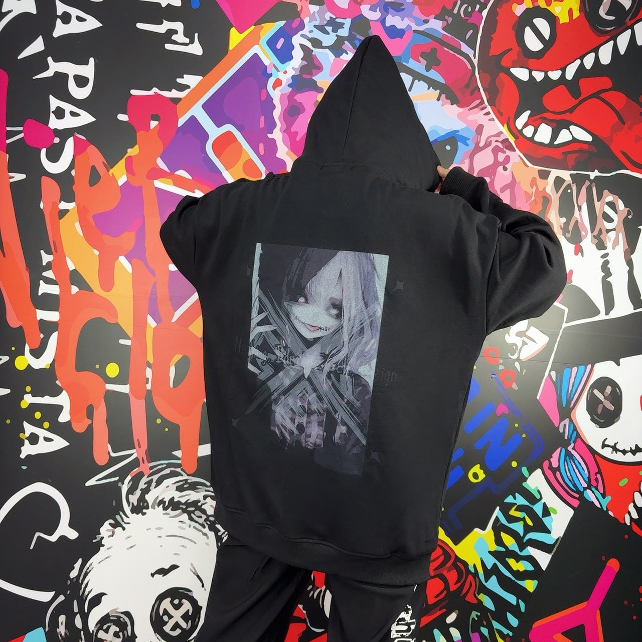 バックには大胆なアートグラフィックをプリント。