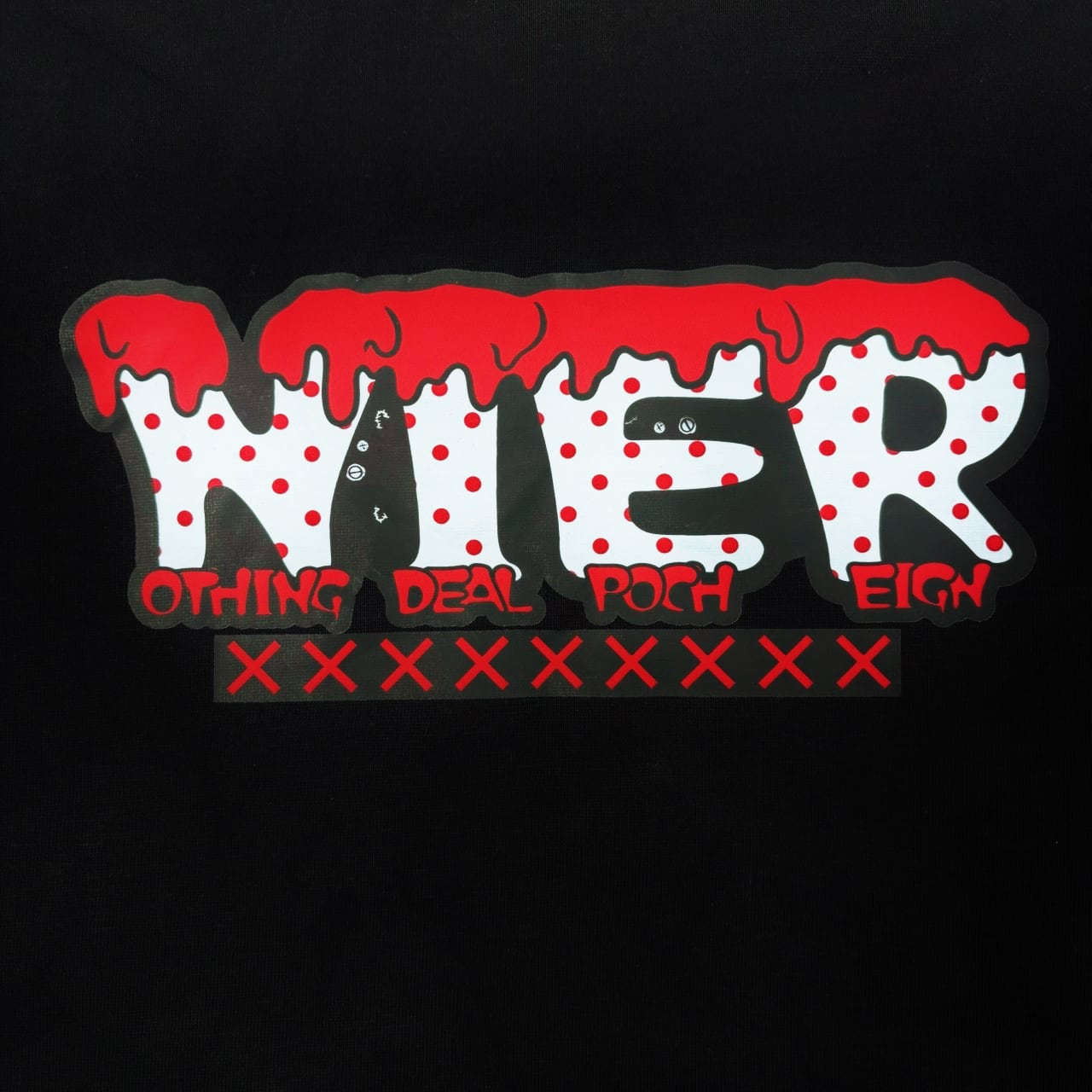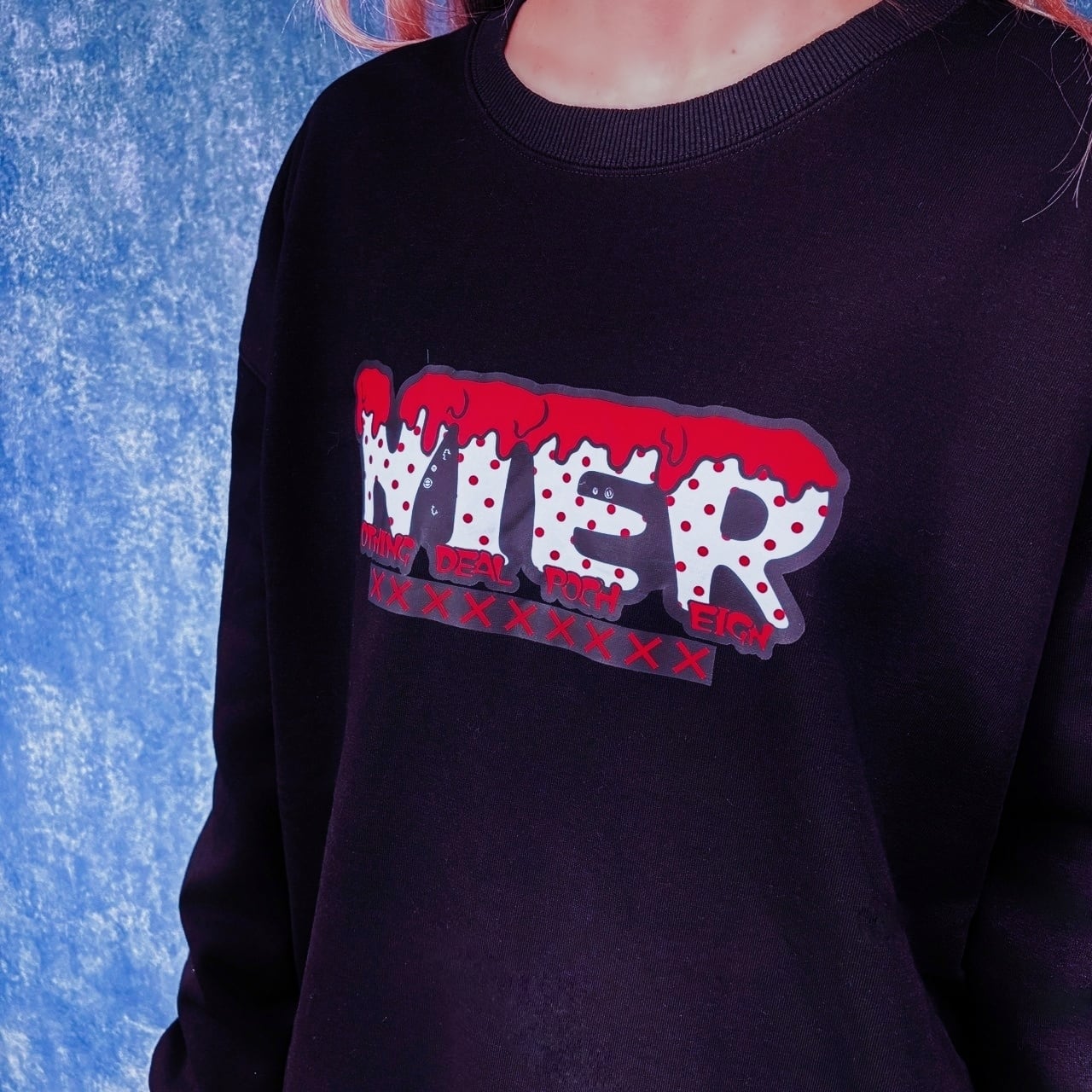 ロゴ部分は、ドリップ調の赤×ホワイト配色にドット柄を組み合わせ、