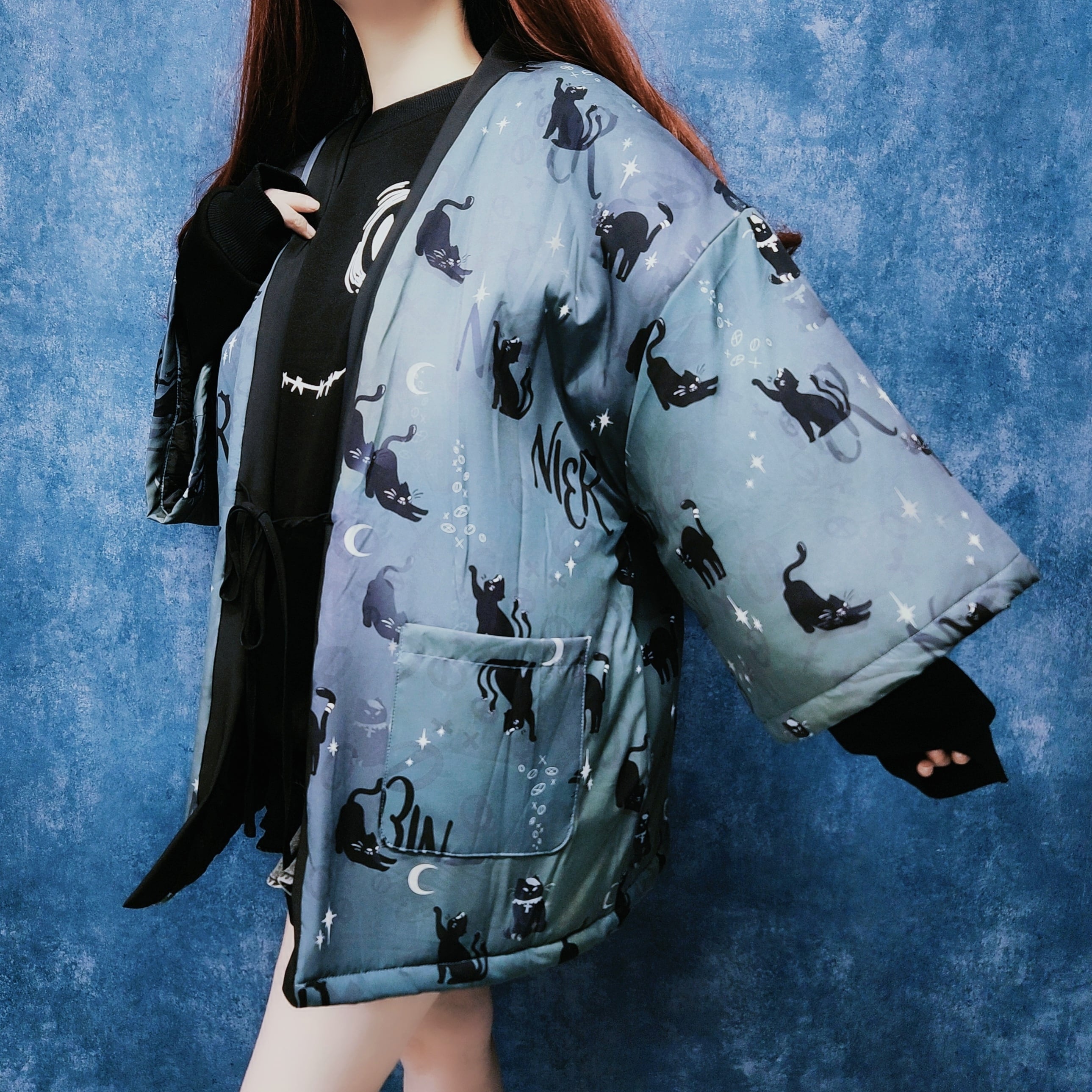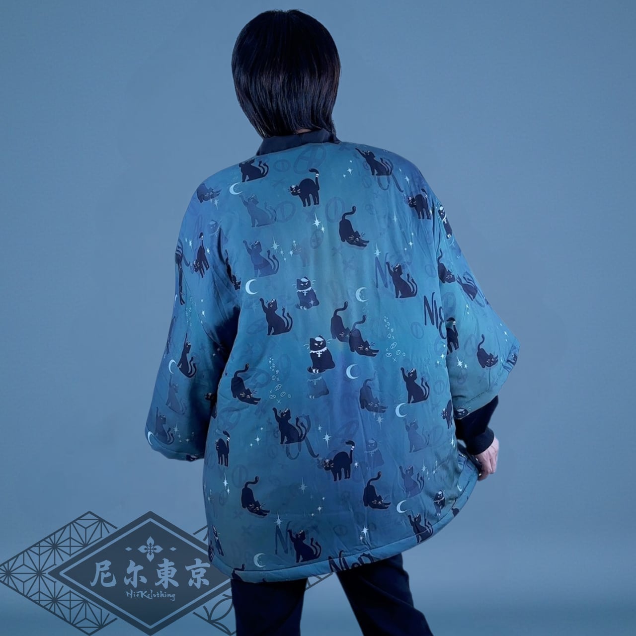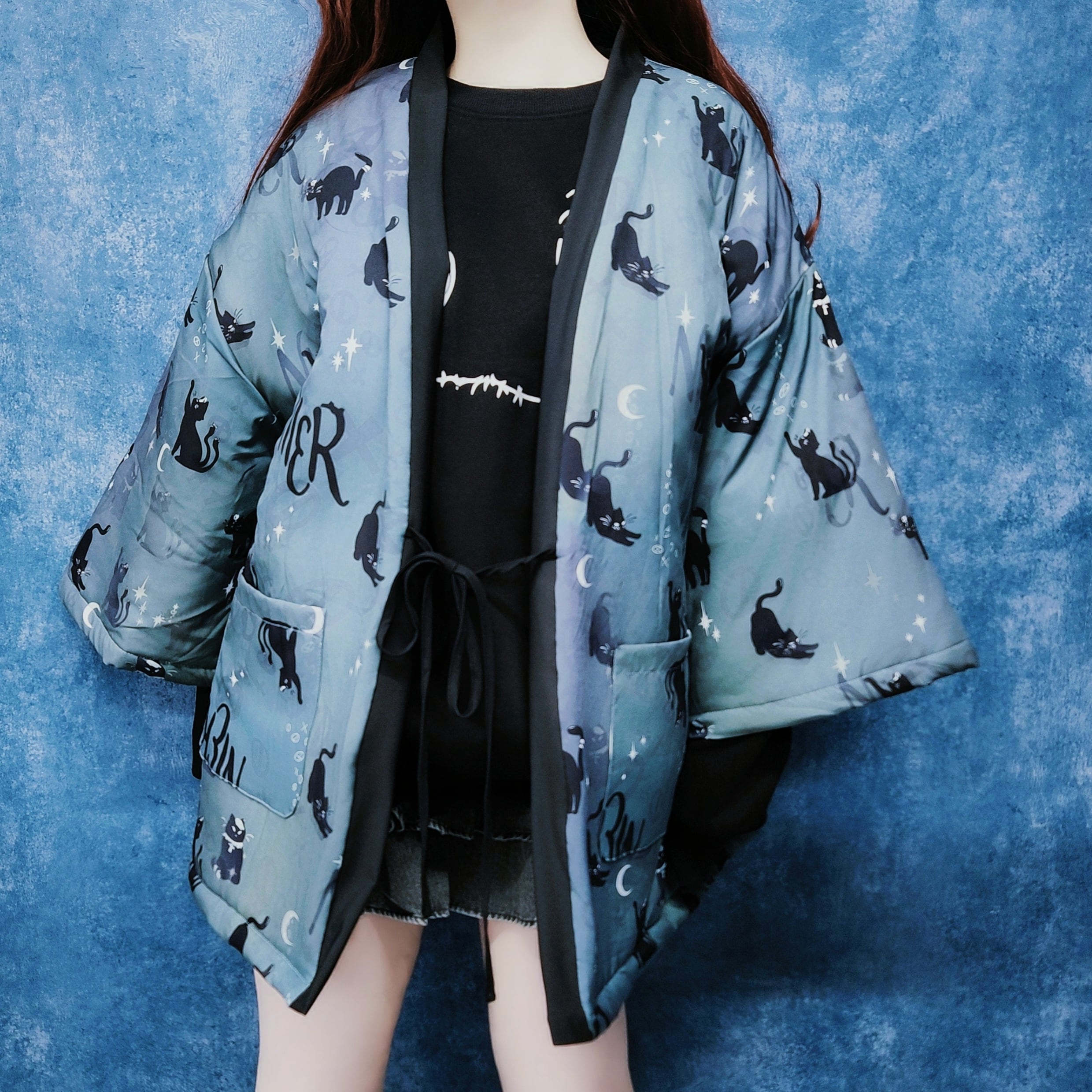 中綿入り黒猫半纏風OUTER
