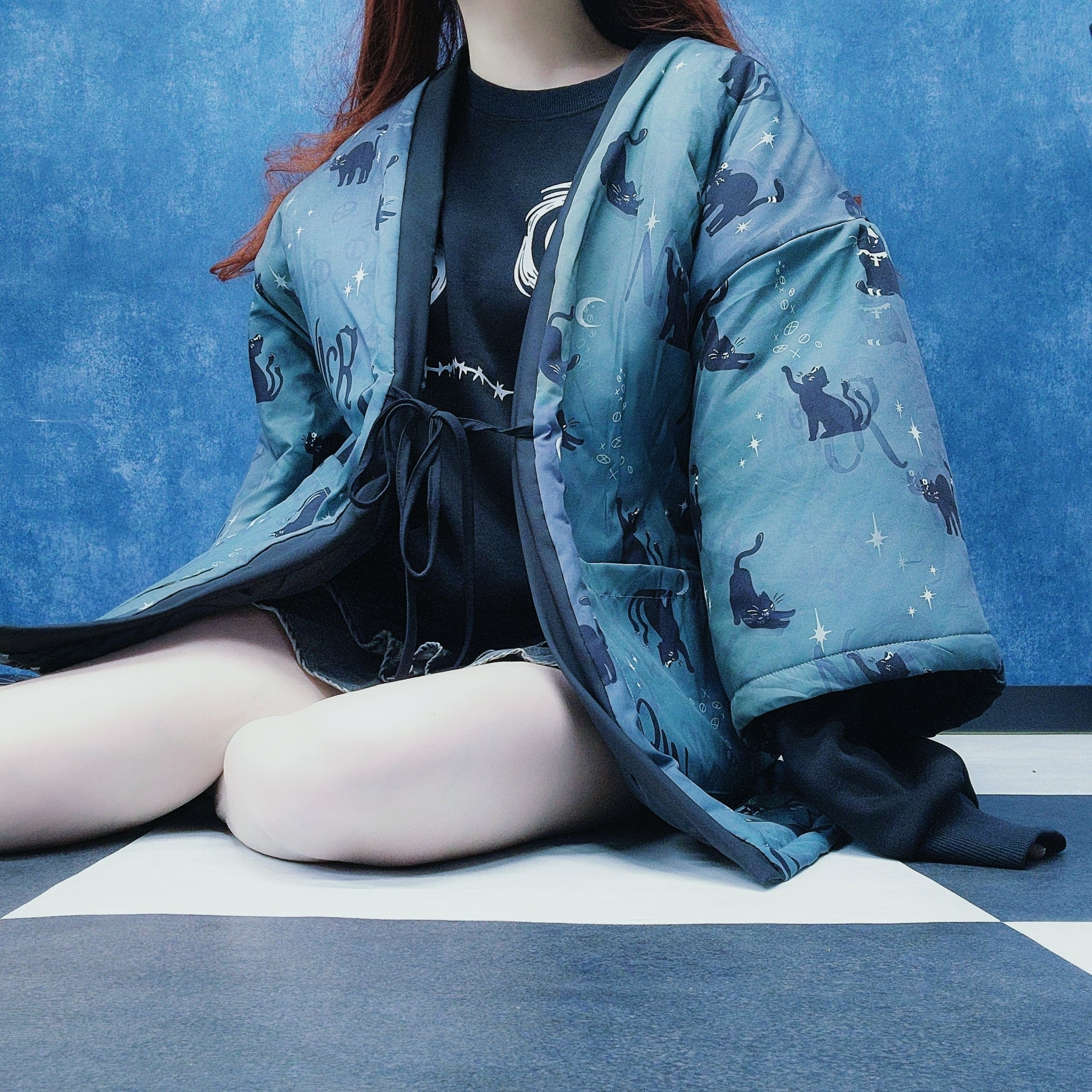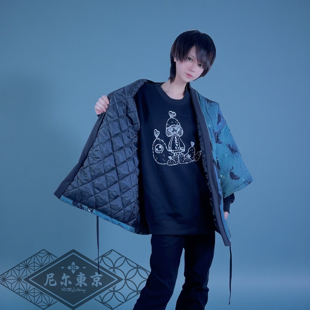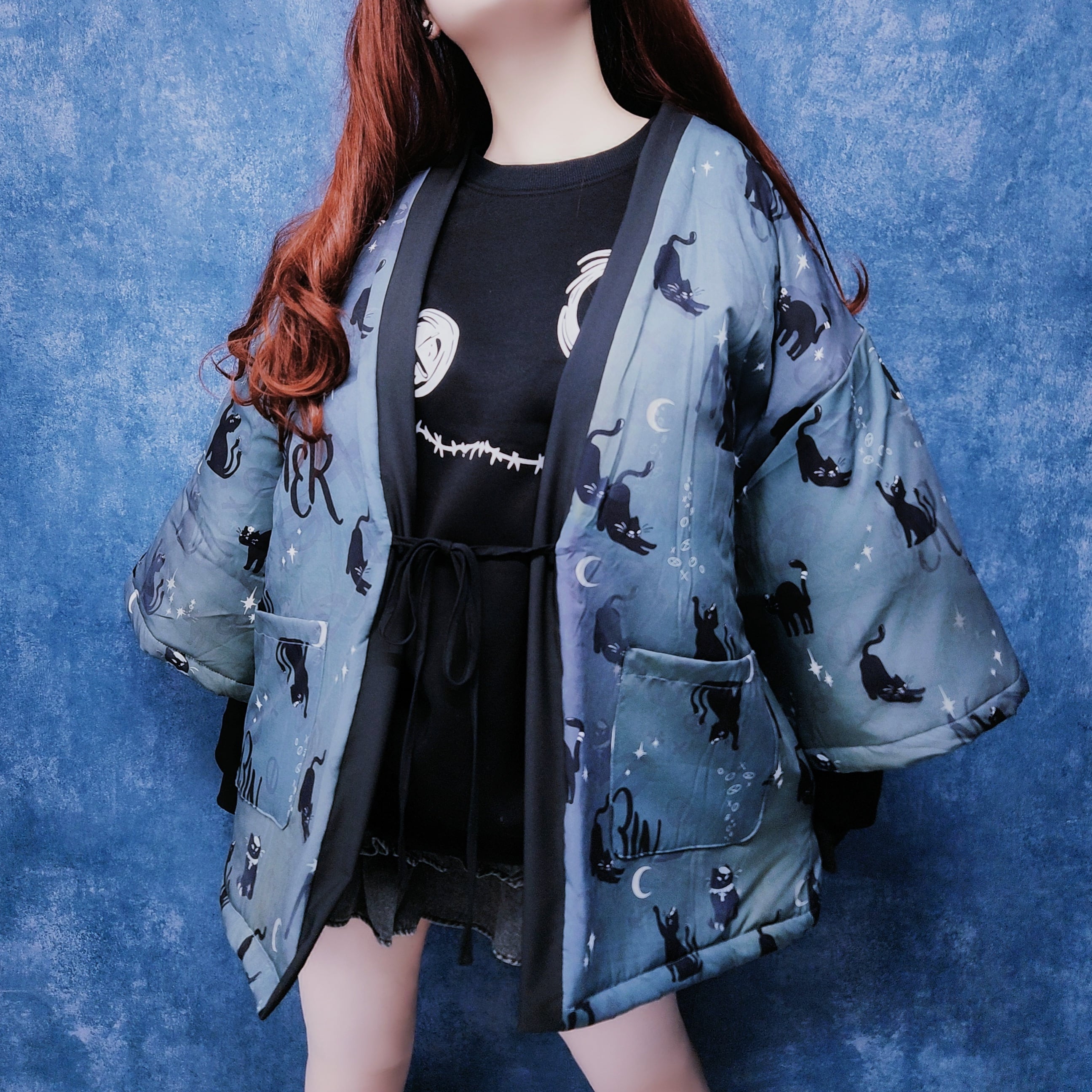 中綿入り黒猫半纏風OUTER