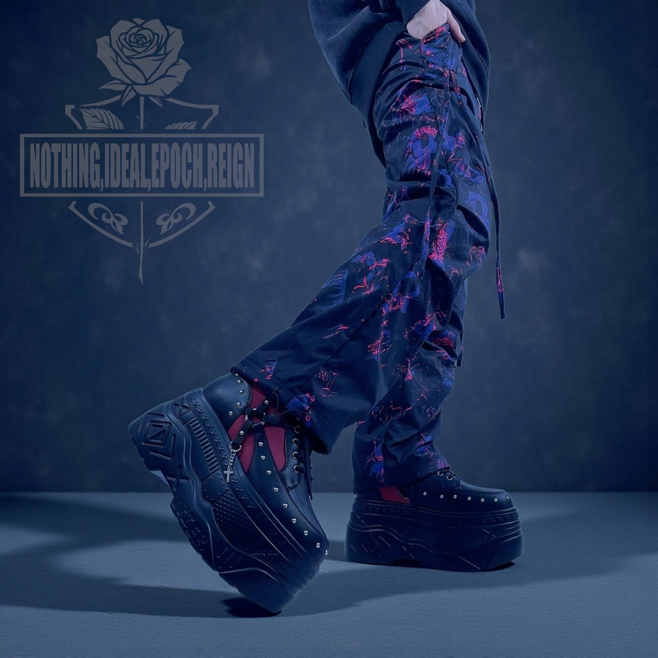 薔薇・ロゴ・シルエットを織り交ぜたアートデザインを全面に落とし込み、