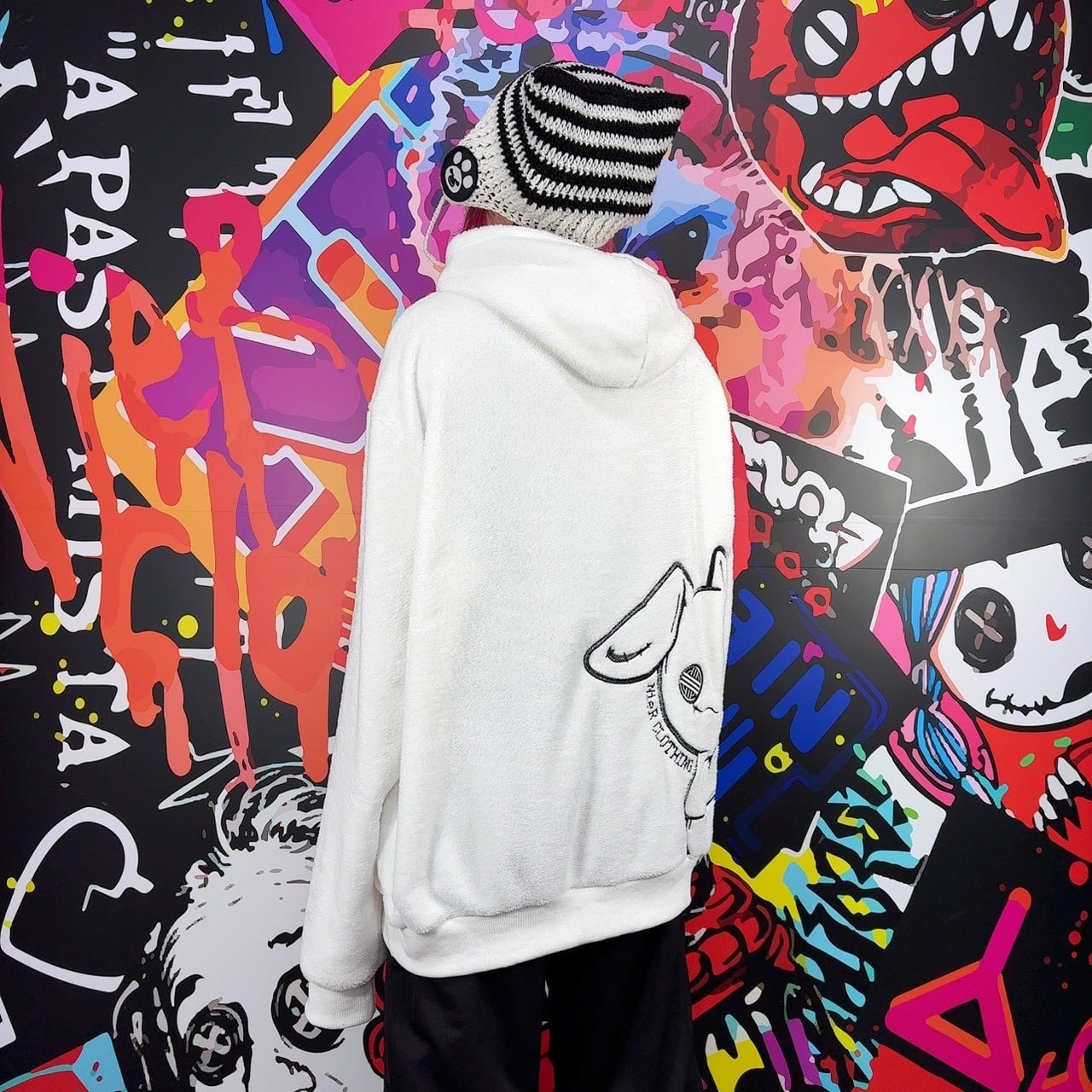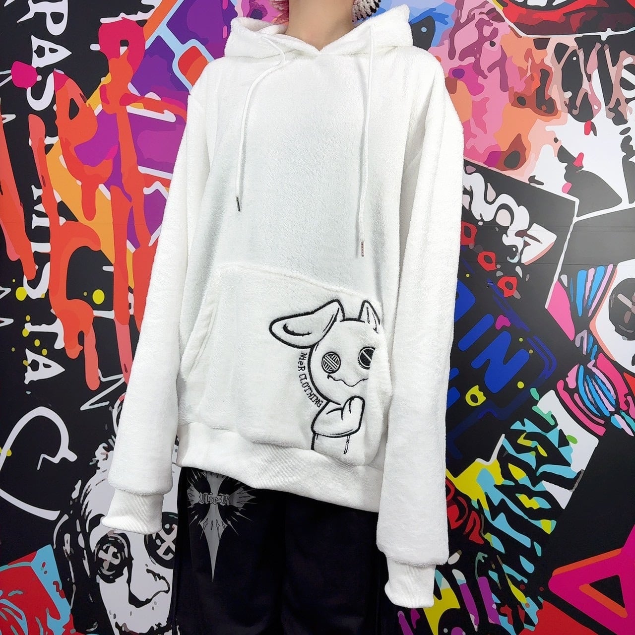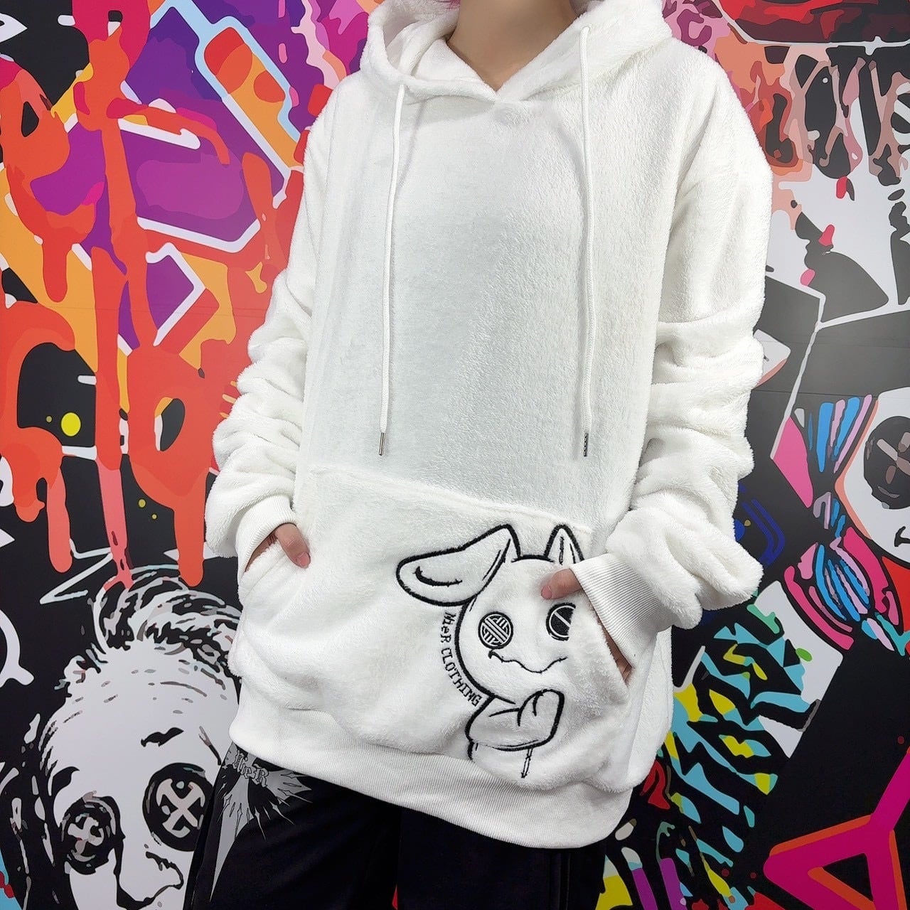 《月末新作赤字大特価プレゼント》高品質×全刺繍さらふわWHITEプルオーバーパーカー【ひょっこりNIER】