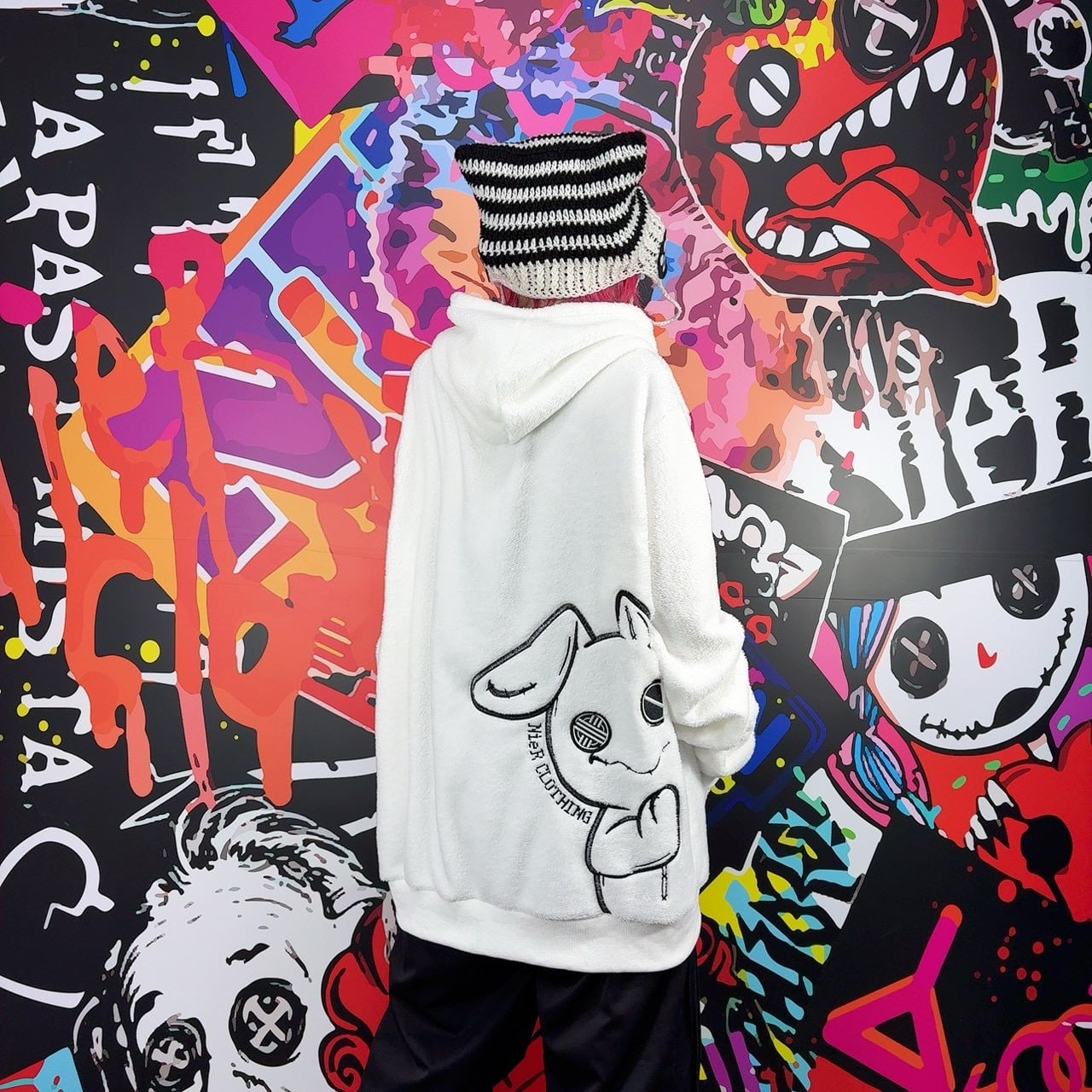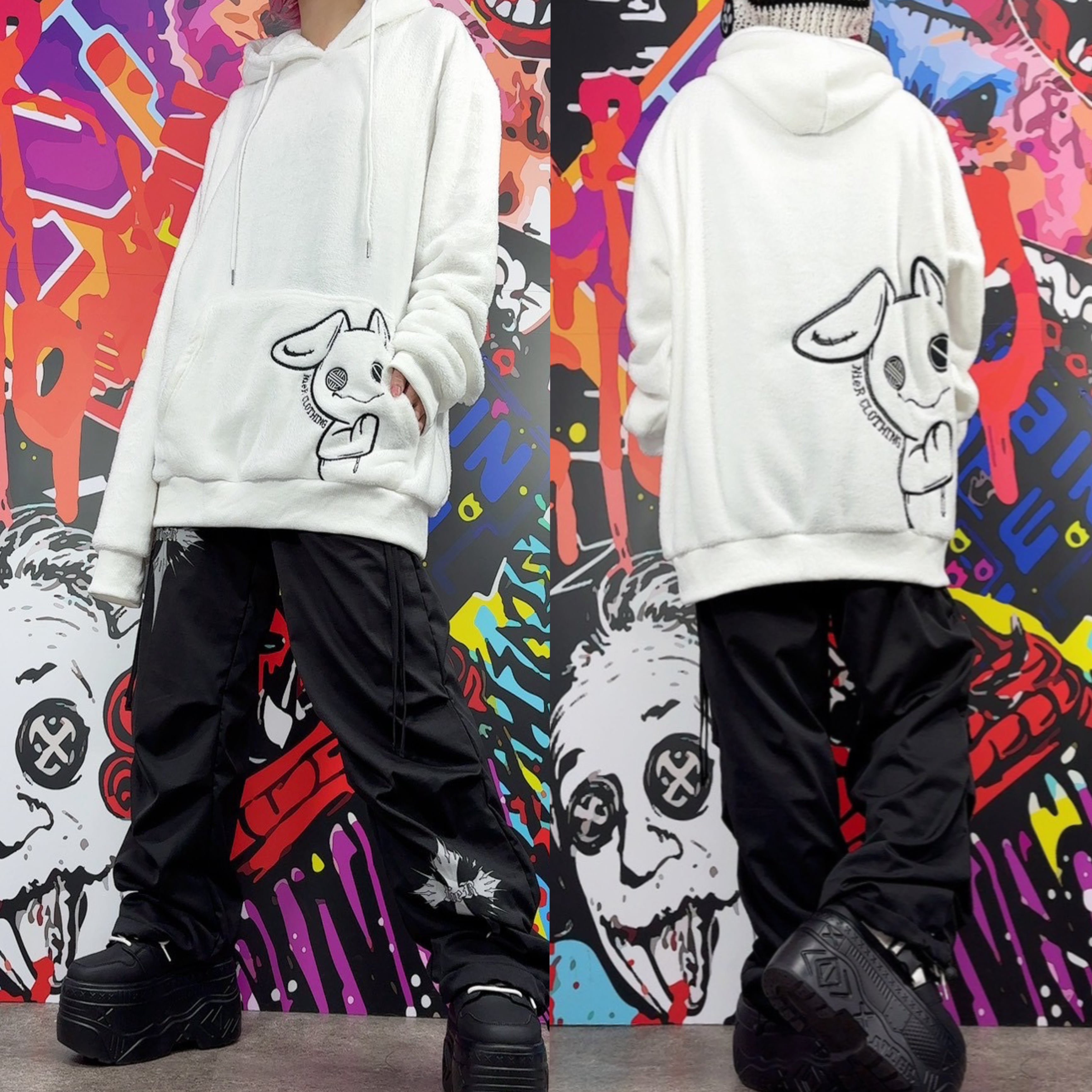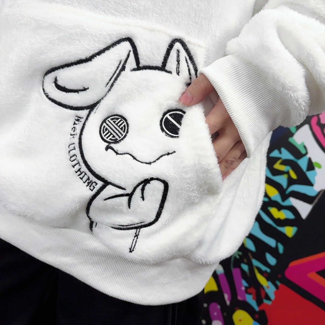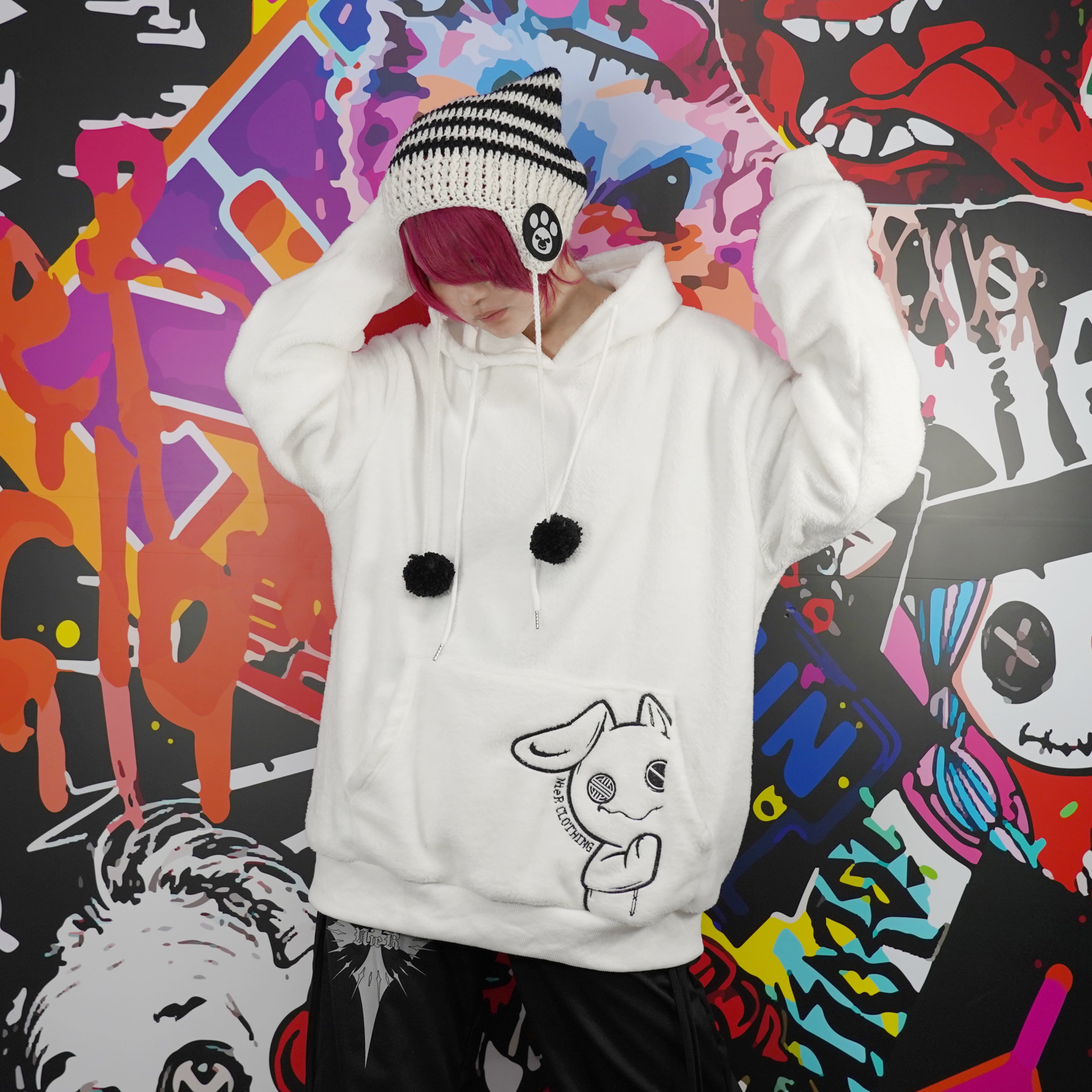 《月末新作赤字大特価プレゼント》高品質×全刺繍さらふわWHITEプルオーバーパーカー【ひょっこりNIER】