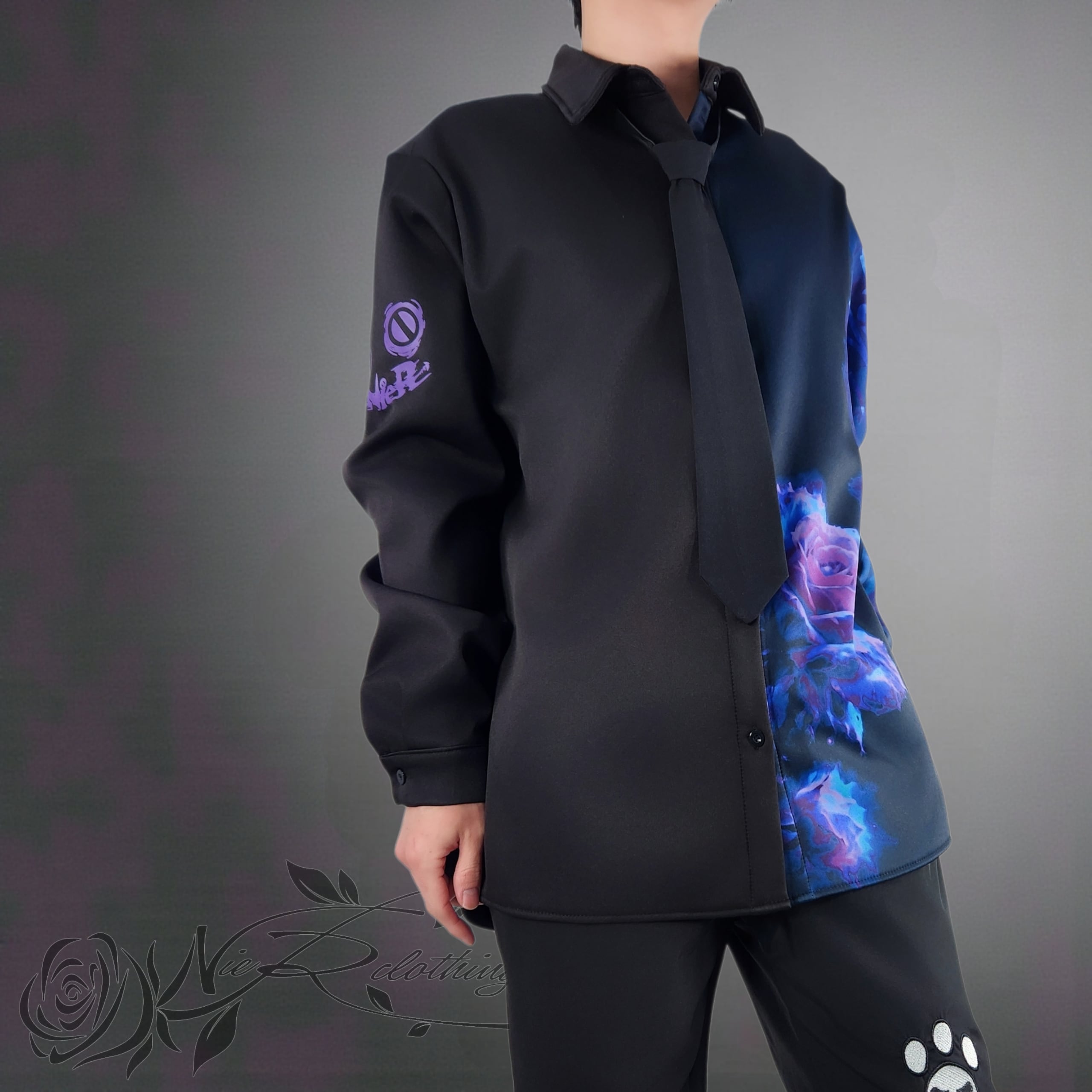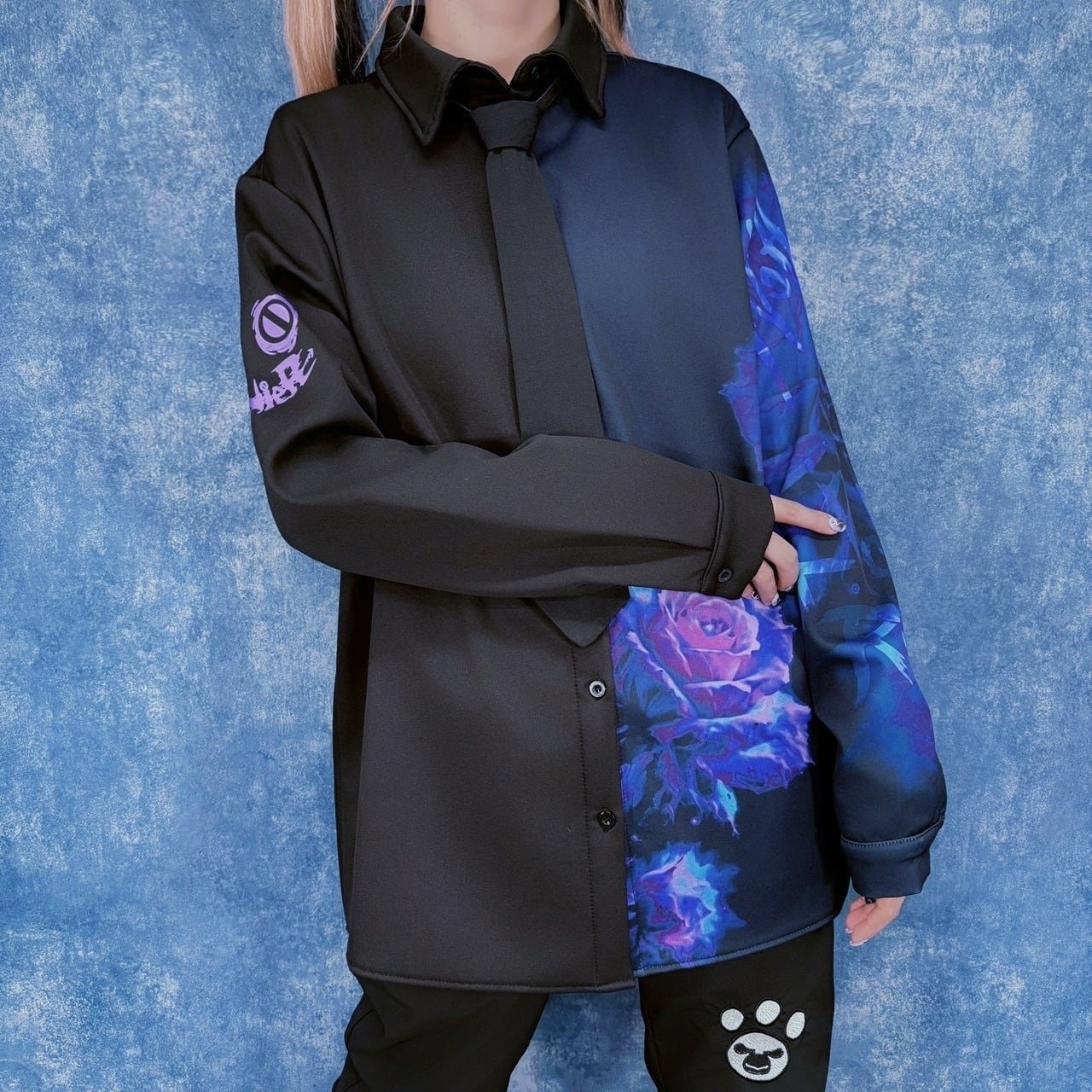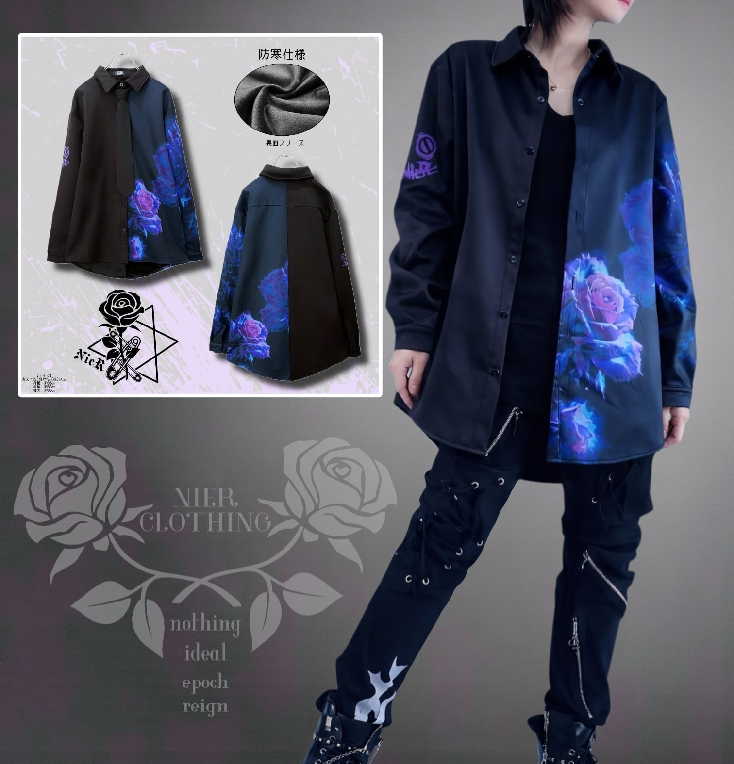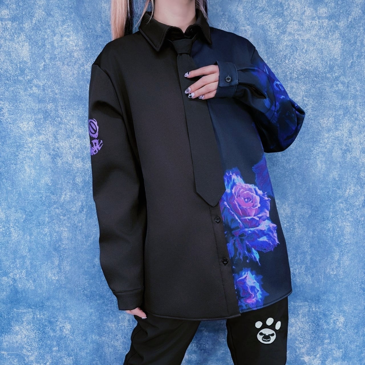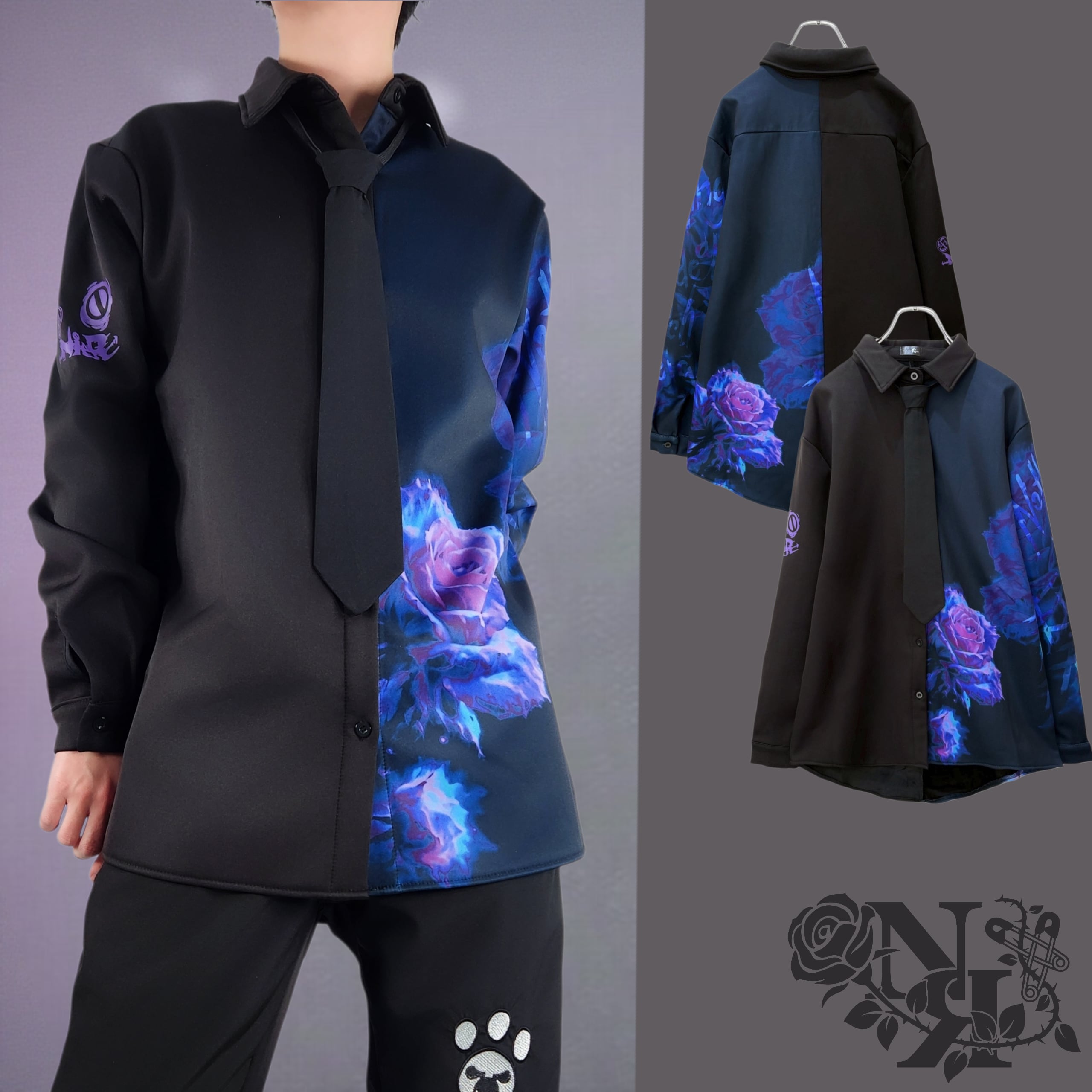 《先着77点限定赤字大特価プレゼント》‐BLUE ROSE‐内側フリースMEN'Sシャツ【ワンタッチネクタイ付き】