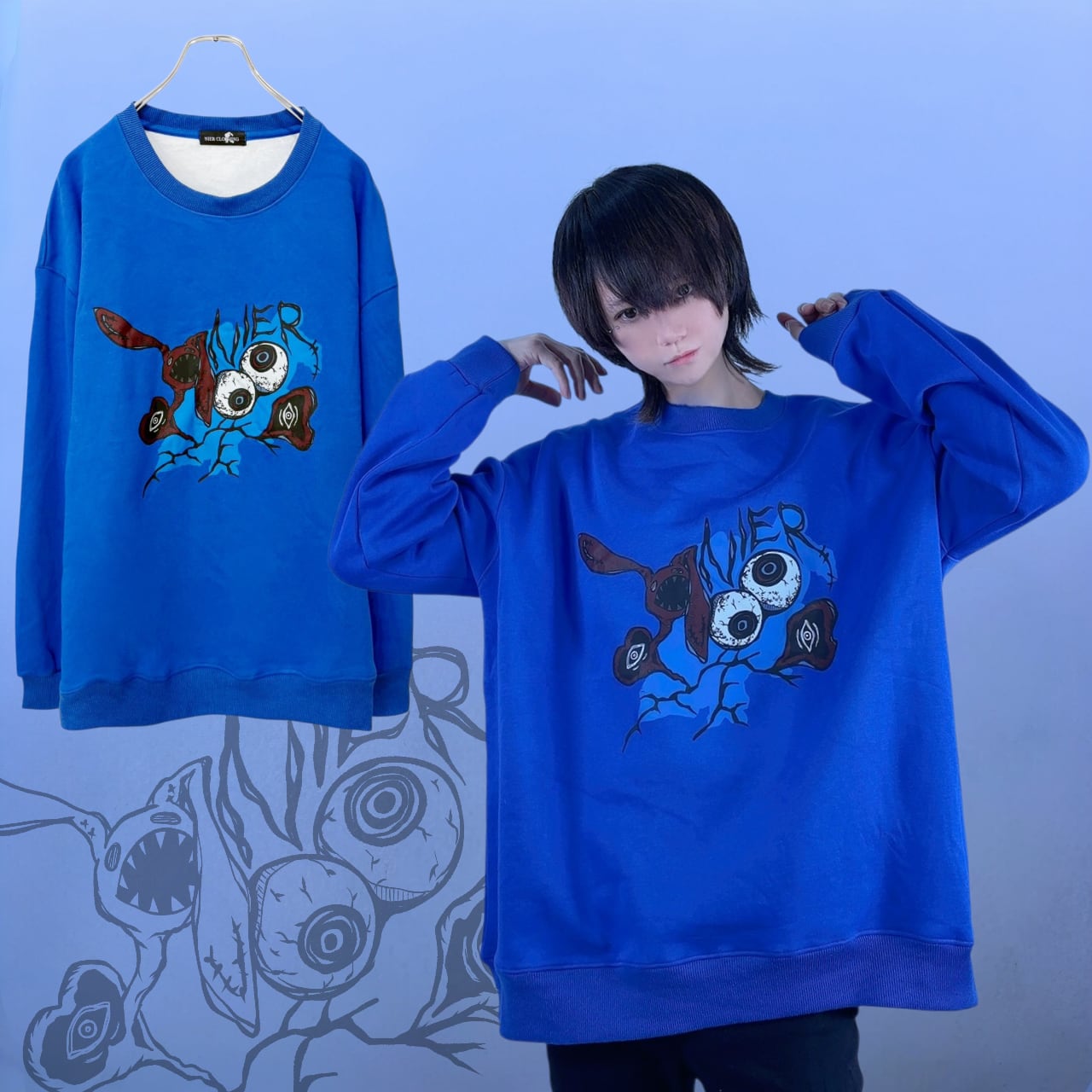NieR EYES 裏起毛BLUE SWEARTSHIRT