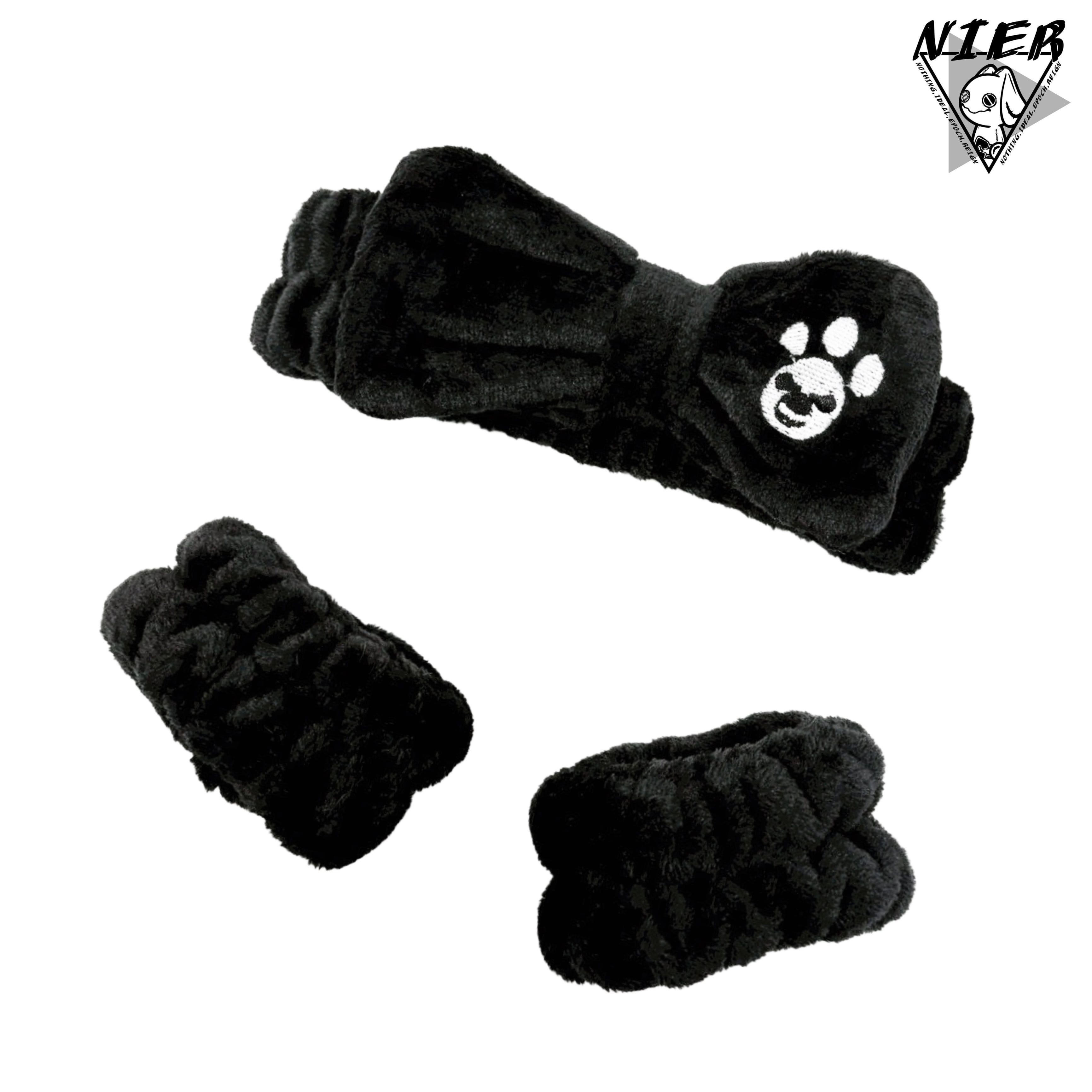 BASE総合ショップ1位記念祭‼︎RIBBONヘアバンド&リストバンド--計3点セット--【肉球刺繍入り】