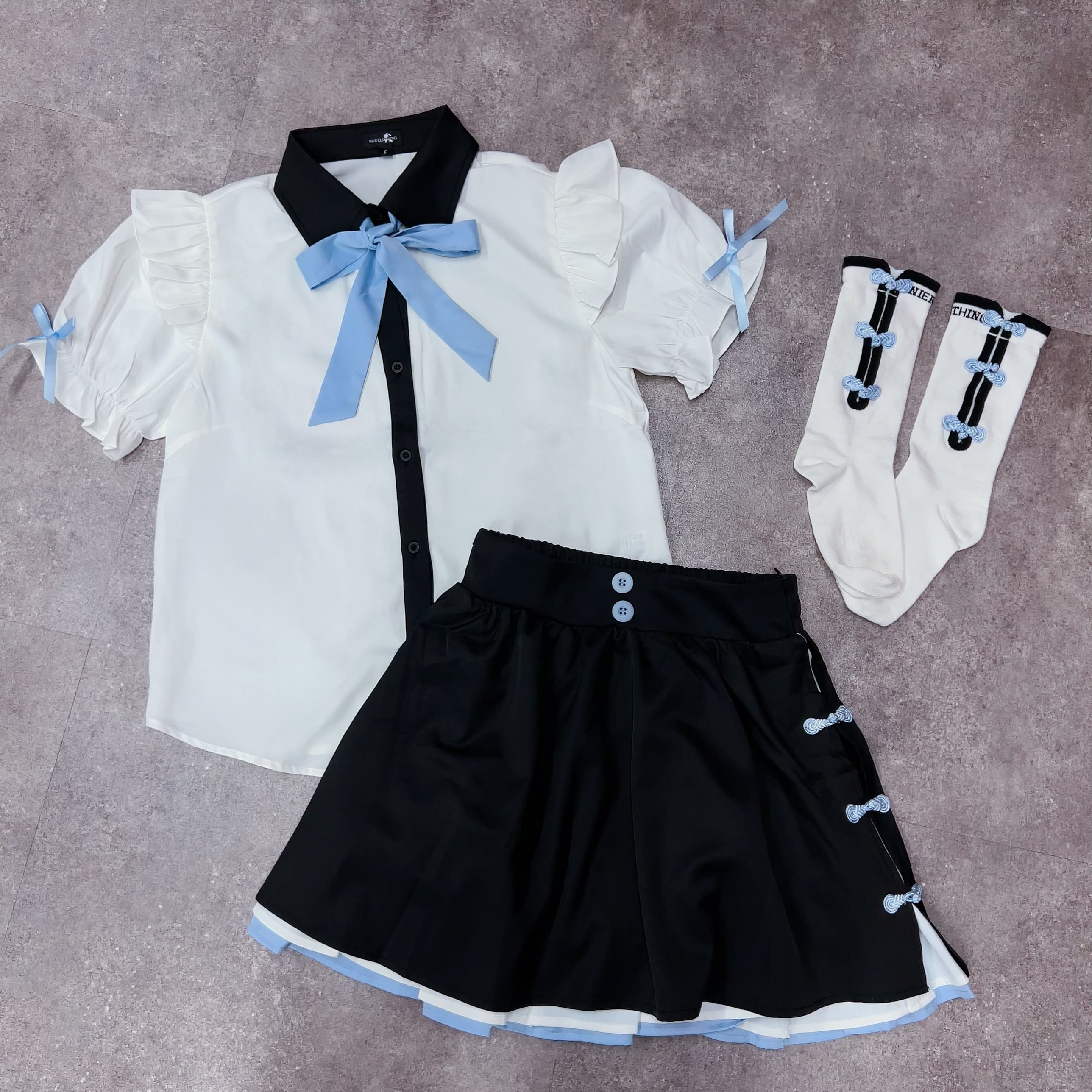 ブラウス、スカート、靴下、全てレディースアイテムになります。