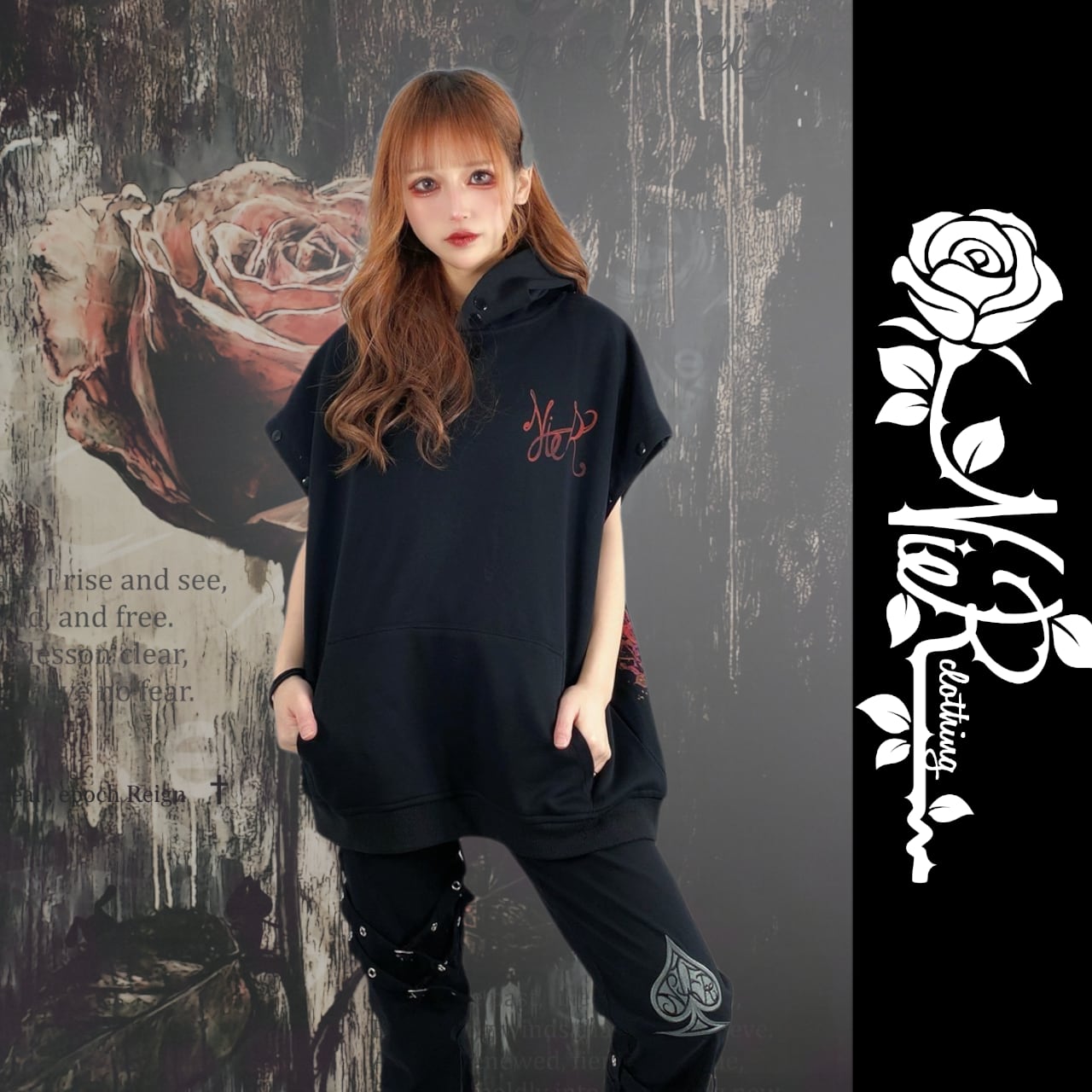 フロントロゴ×バック薔薇デザインのパーカーです。