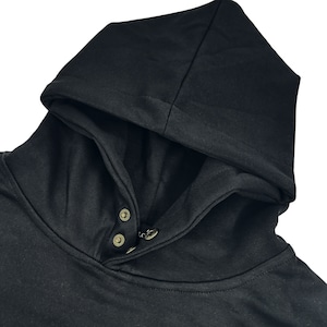 袖部分だけでなくフード部分にもスナップボタンを採用しております。