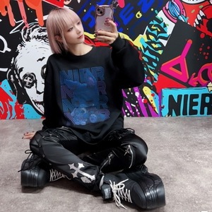 背面に重なるグラデーションのNIERロゴが組み合わさることで、