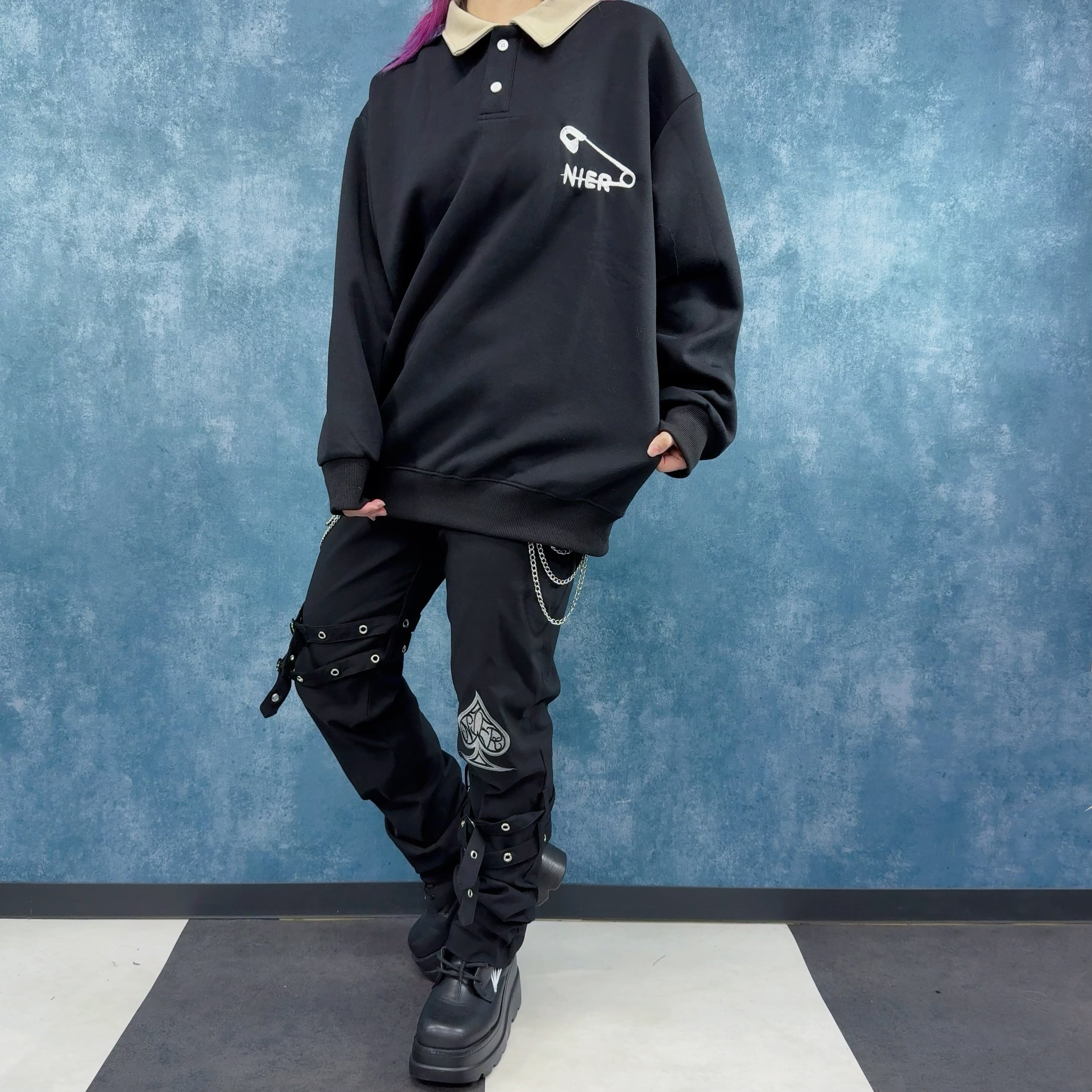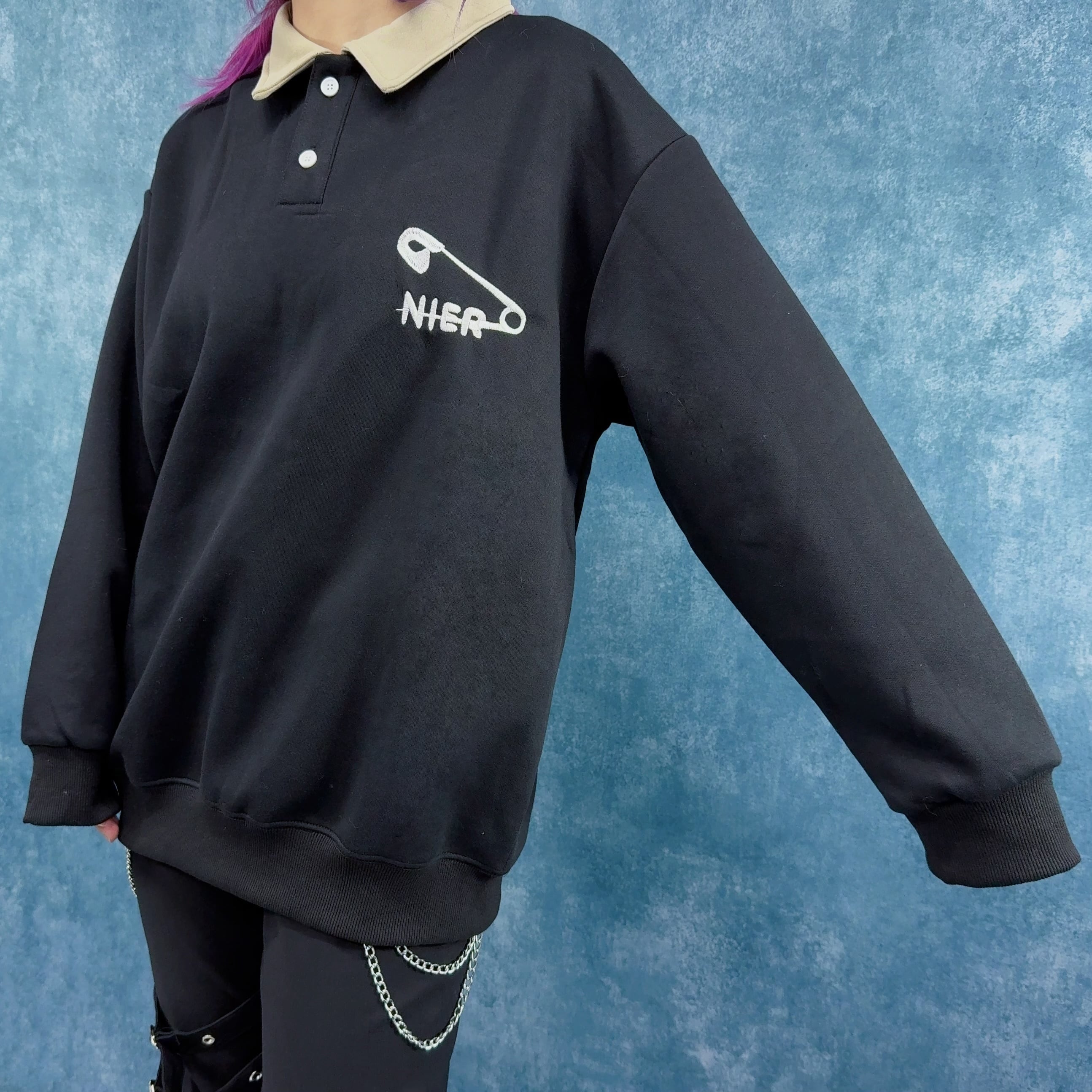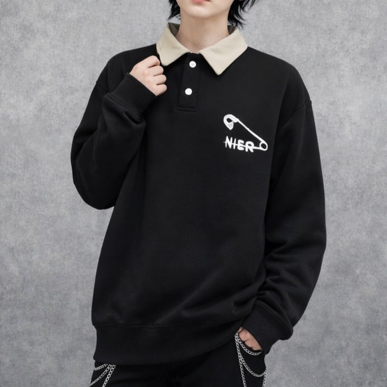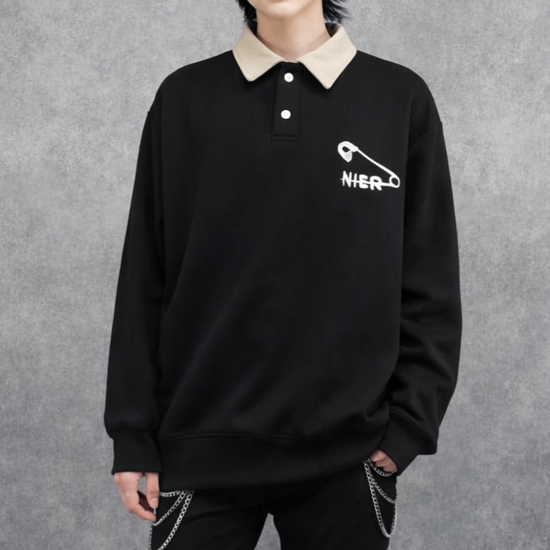 《先着55点限定✨先取り春物新作SALE》襟付きPOLO SWEAT TOPS【安全ピン刺繍】