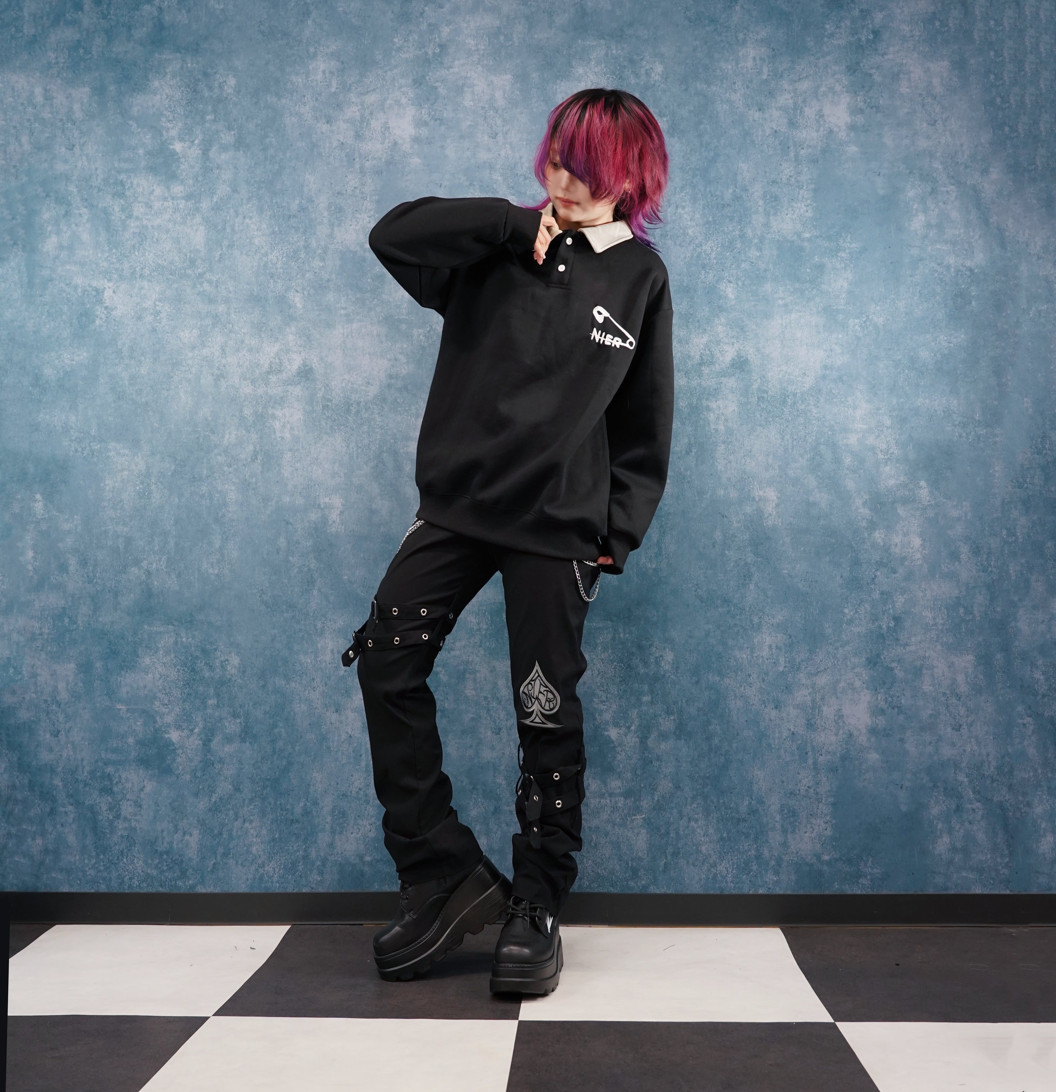 ・多連チェーン×ベルト装飾付きPUNK VISUAL PANTS【SPADE LOGO刺繍】