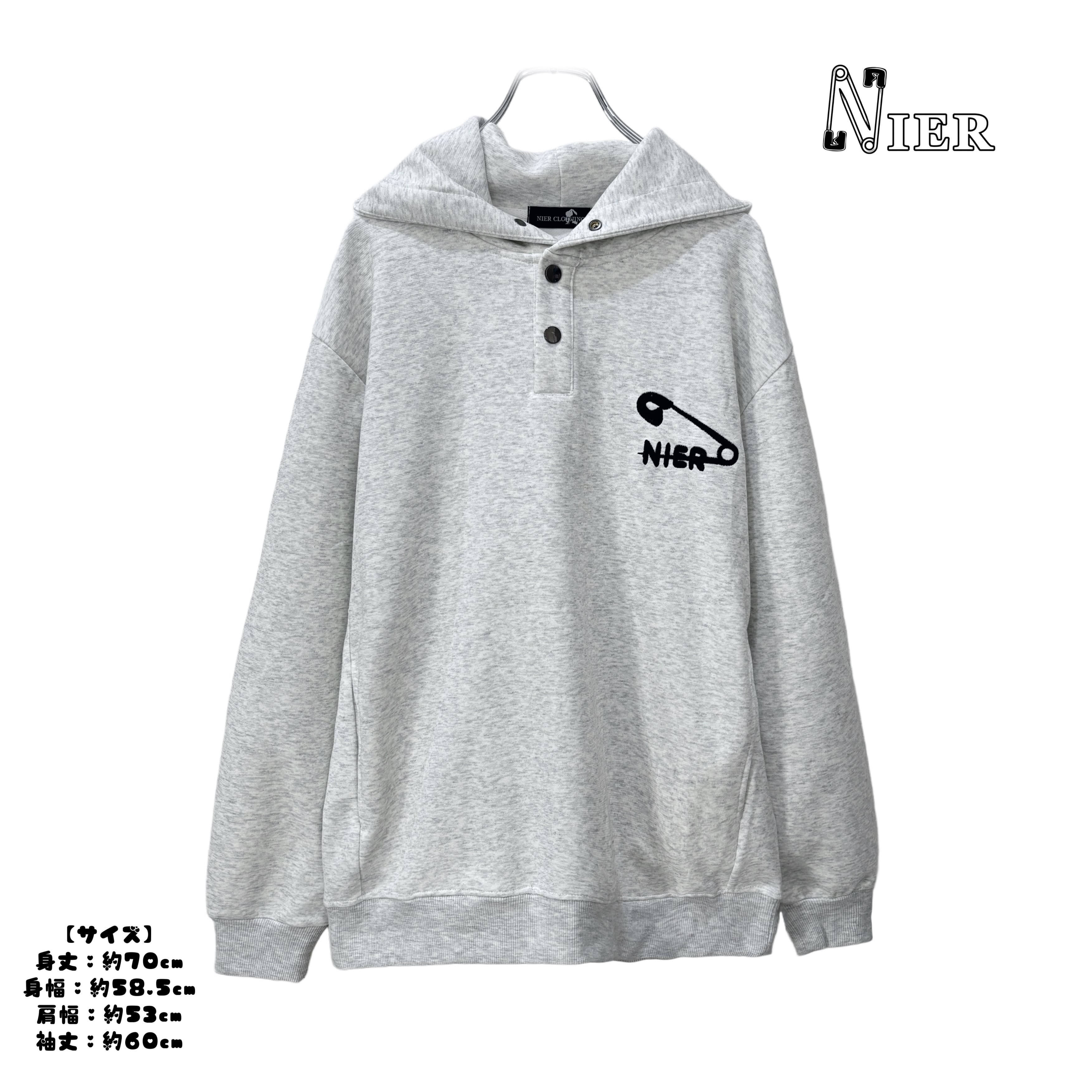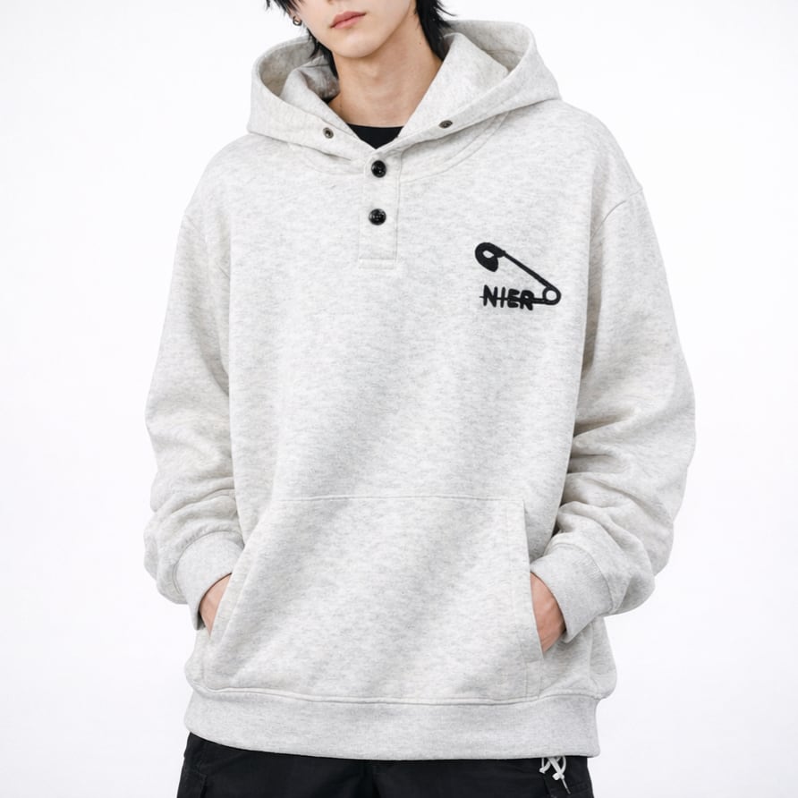 1st day SPECIAL SALE【SAFETY PIN LOGO】3BUTTON GRAY HOODIE