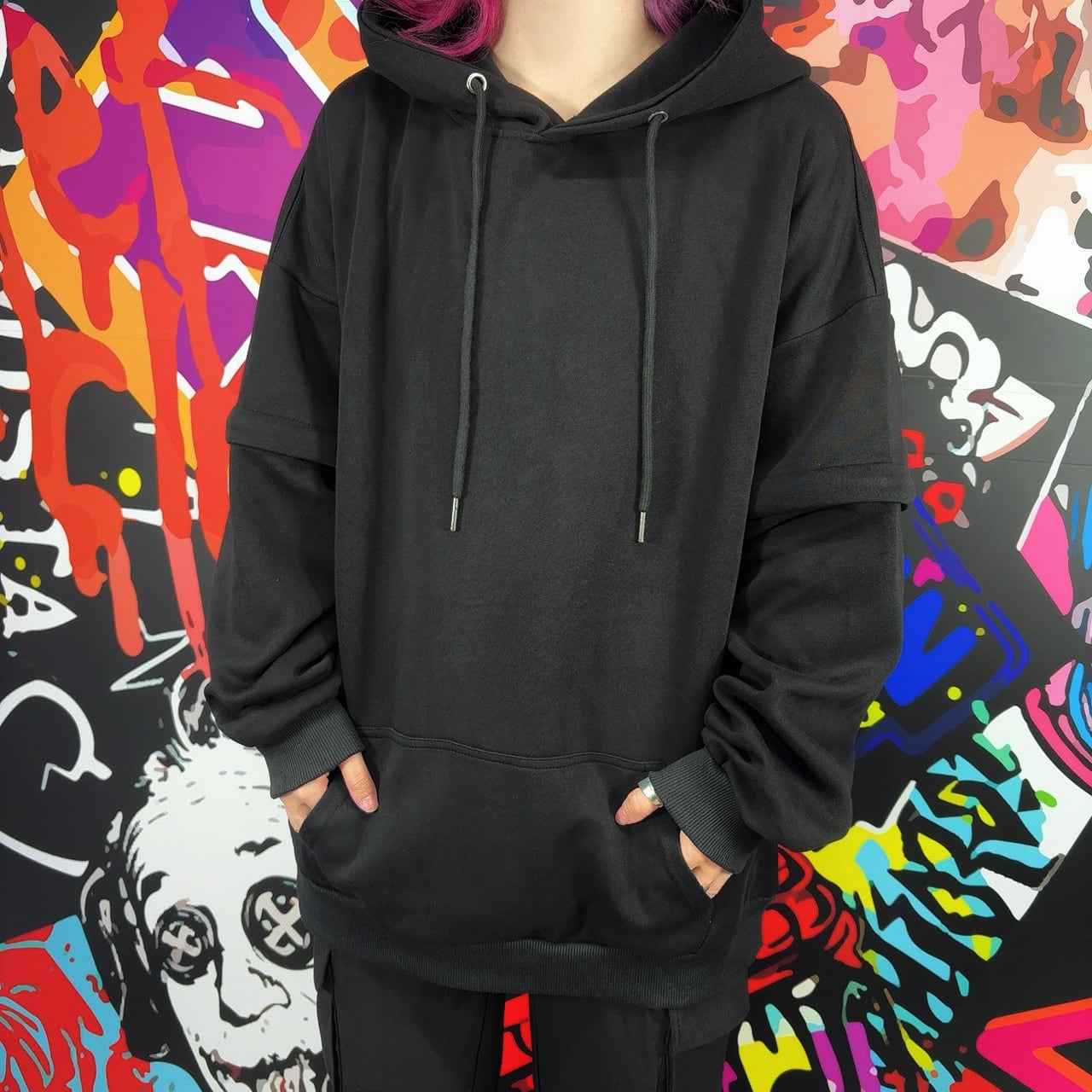 ✔ 袖のZIPを開けてレイヤード見せ