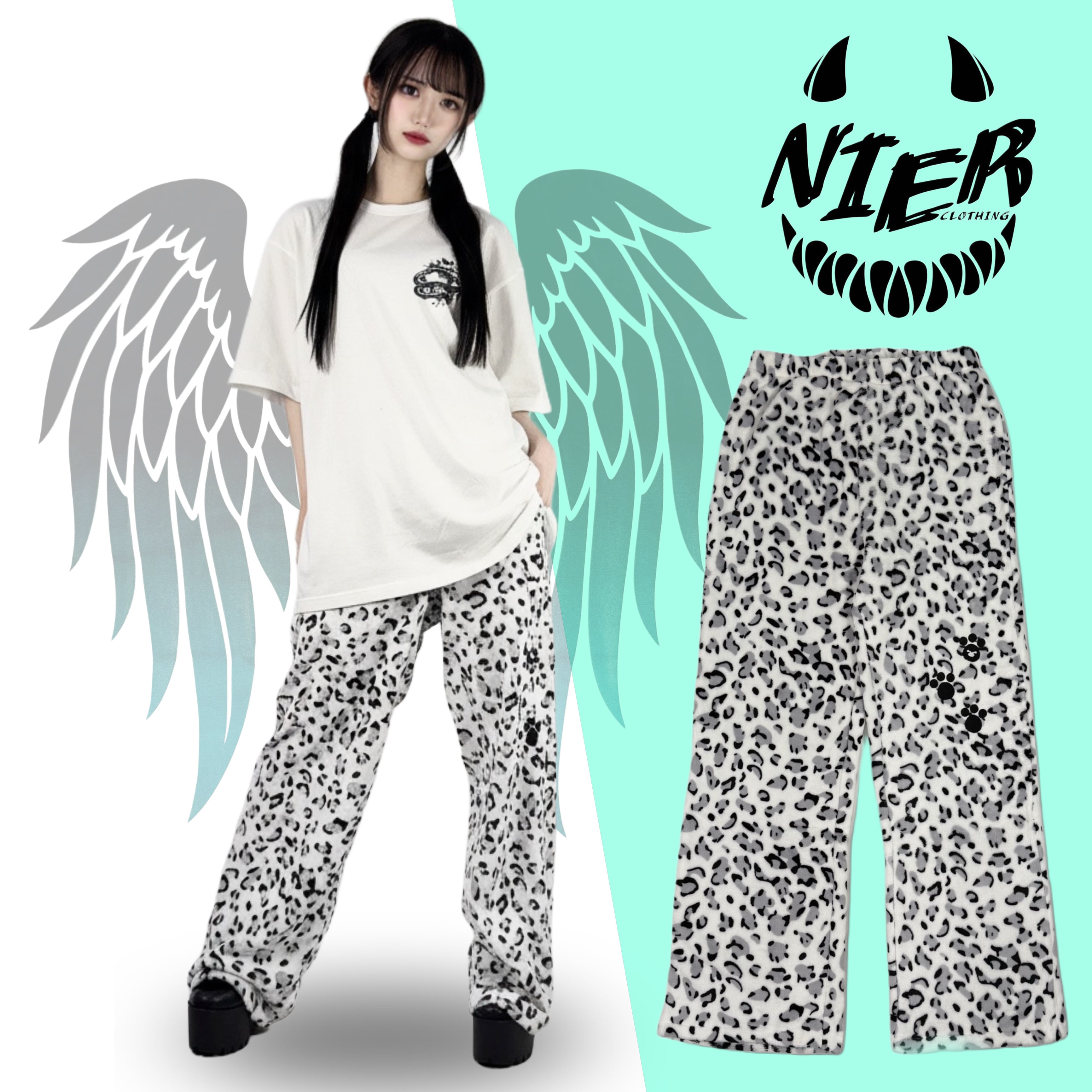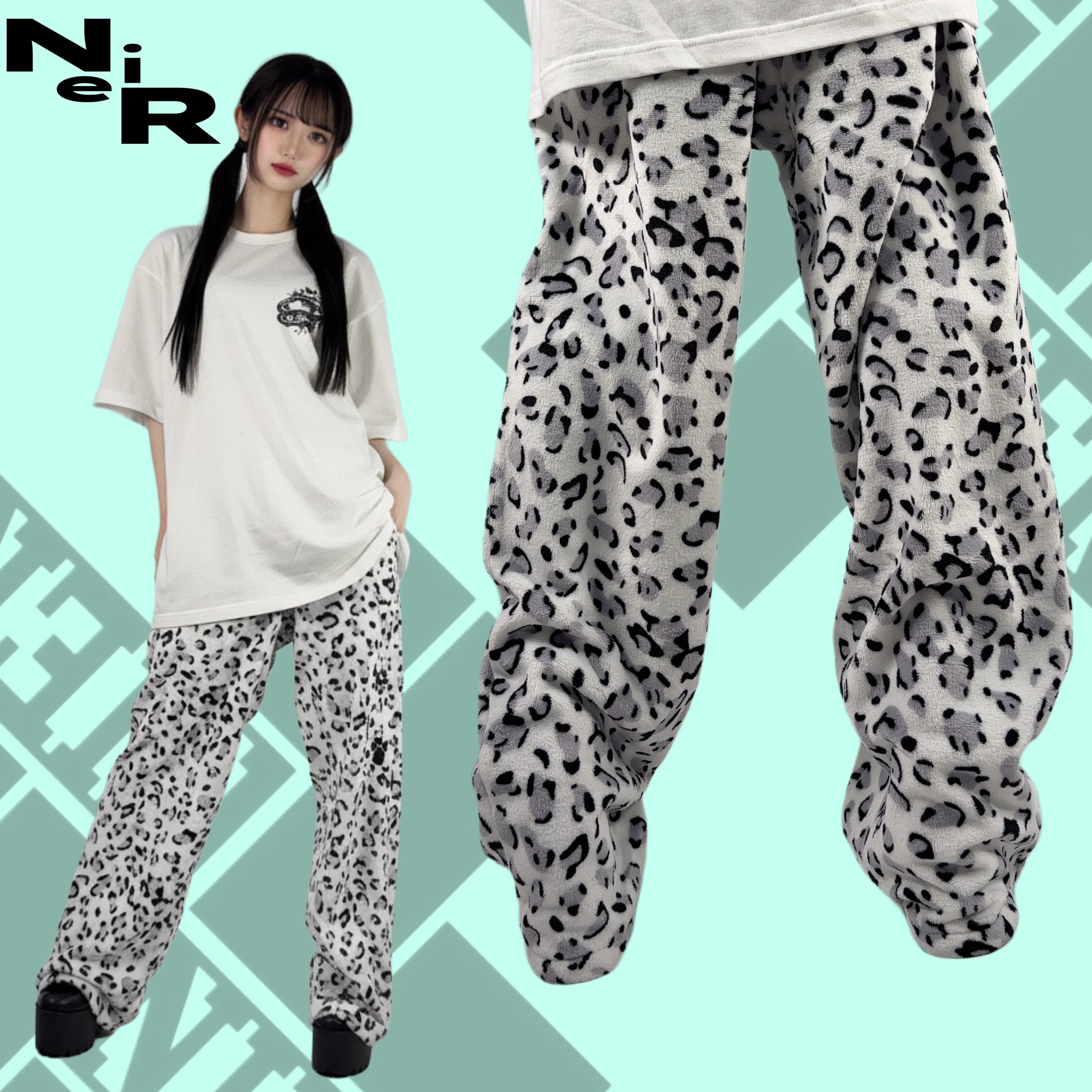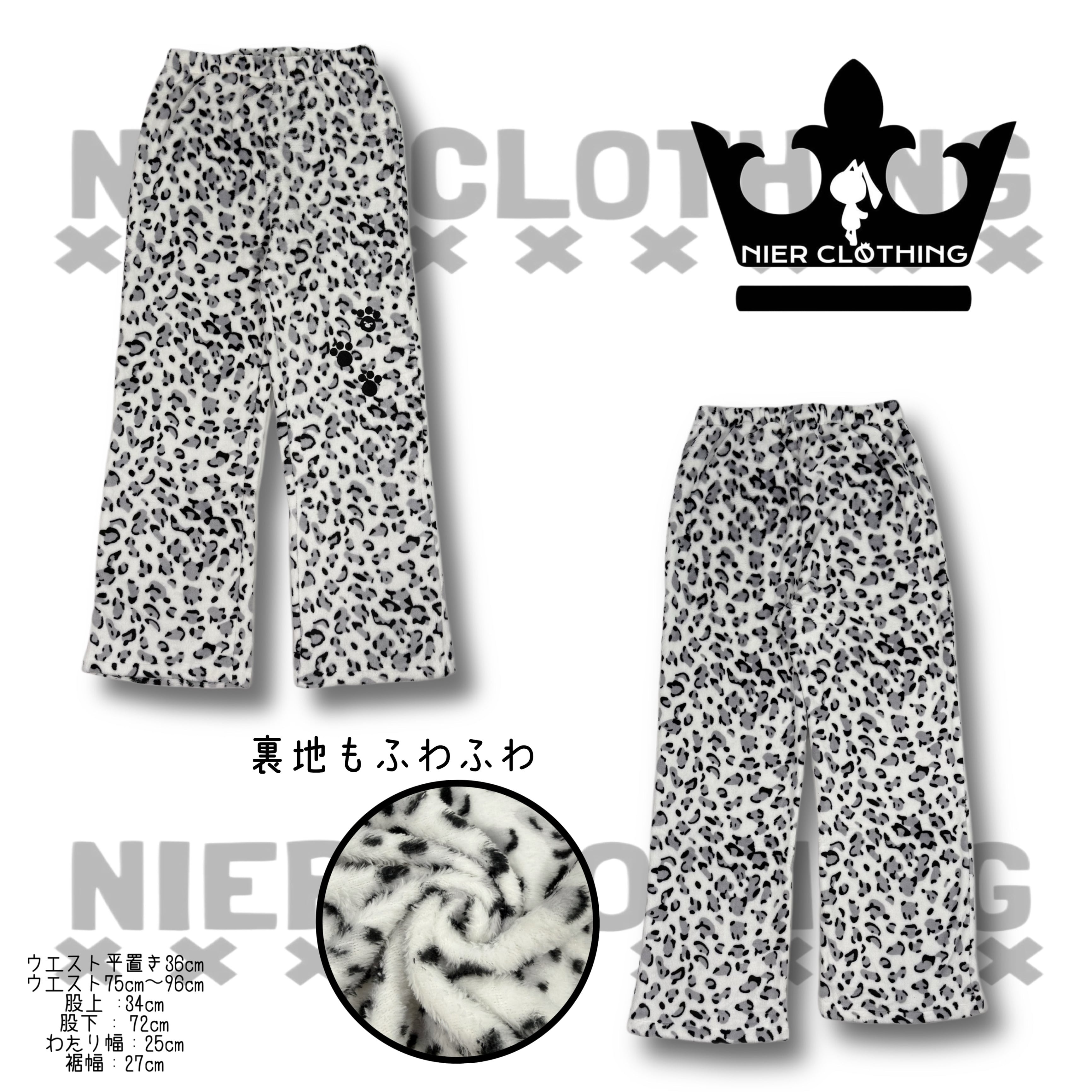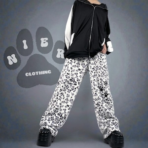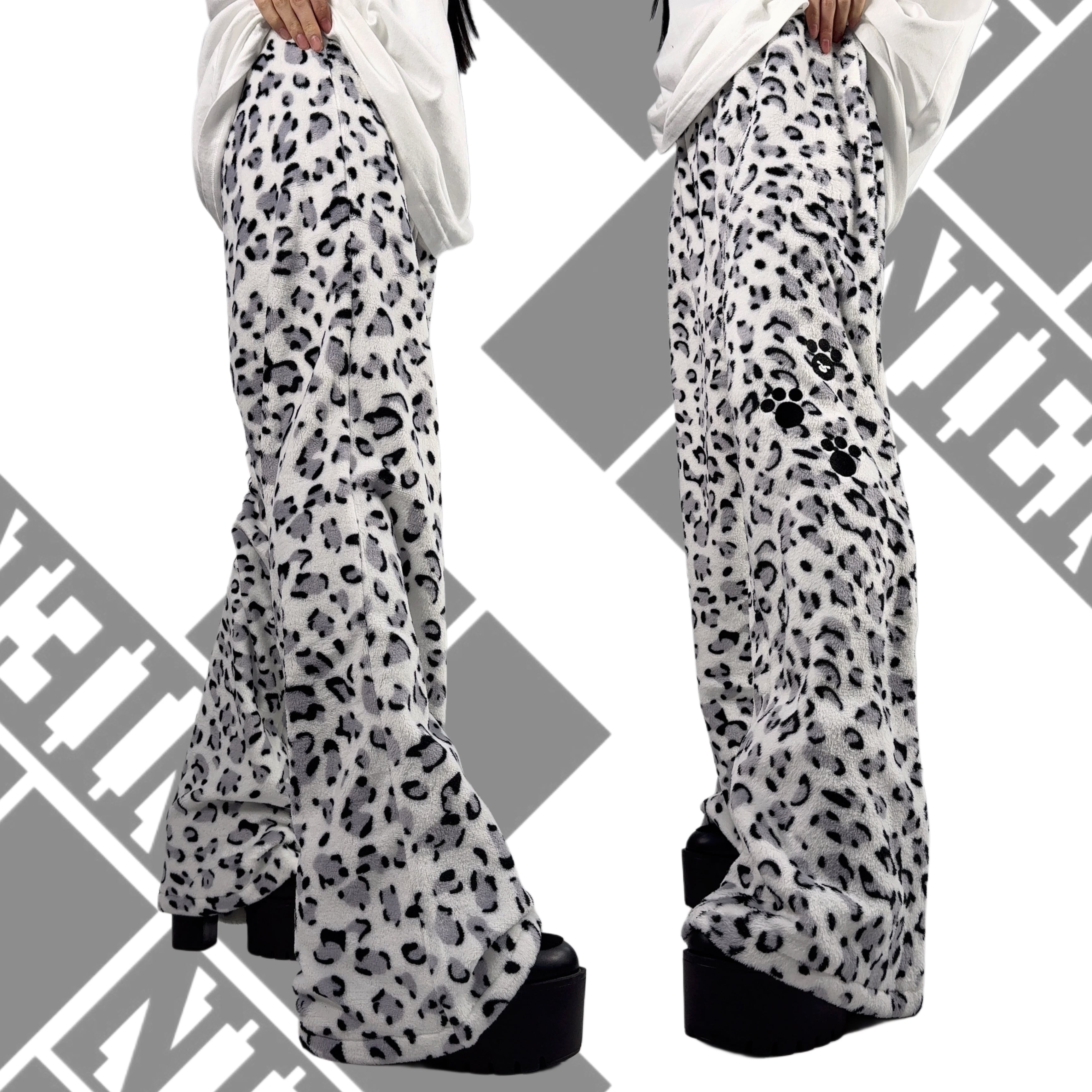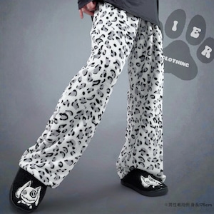 《ホワイトデー限定超大特価70%OFF》超軽量ふわもこホワイトレオパードワイドパンツ【足跡刺繍デザイン入り】