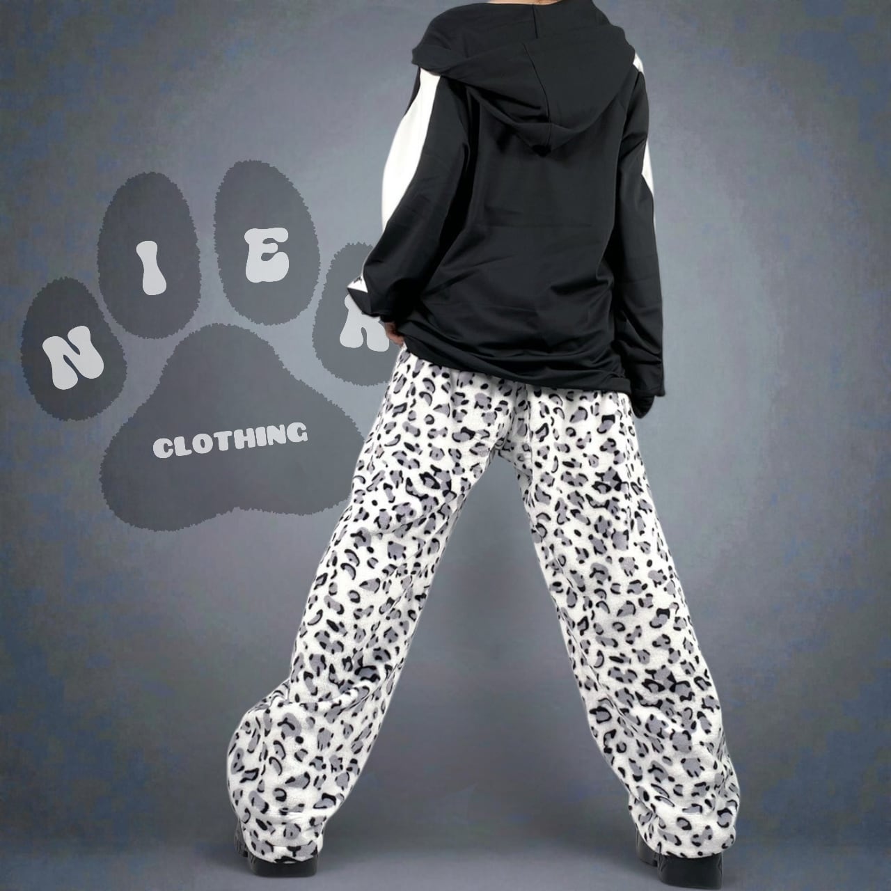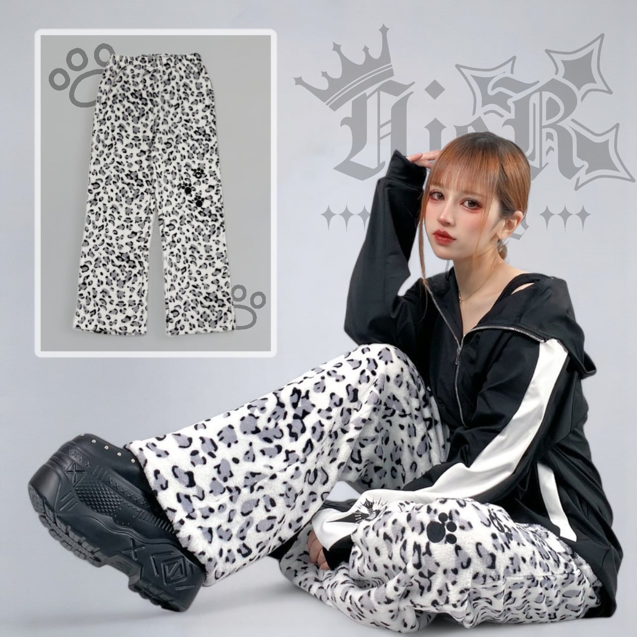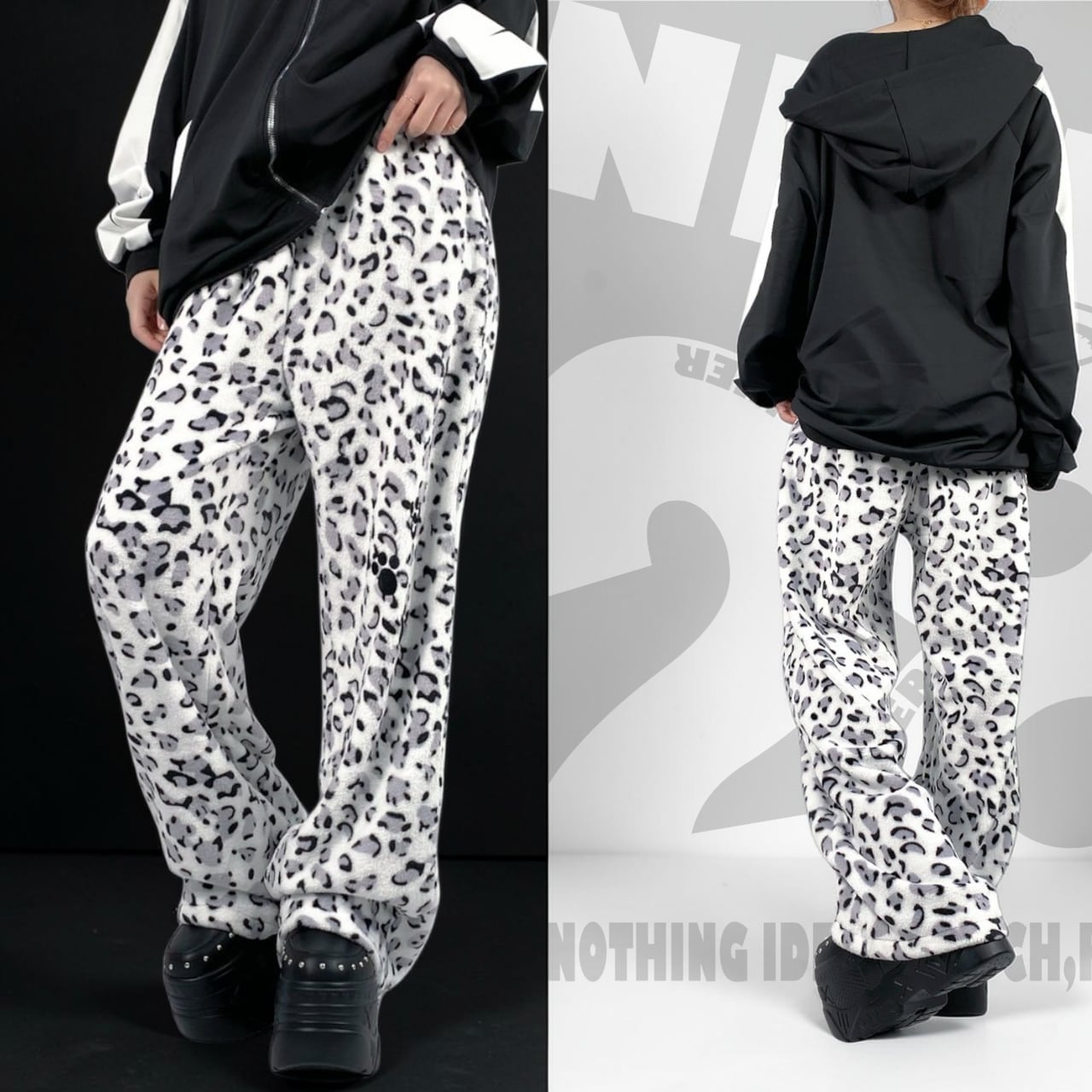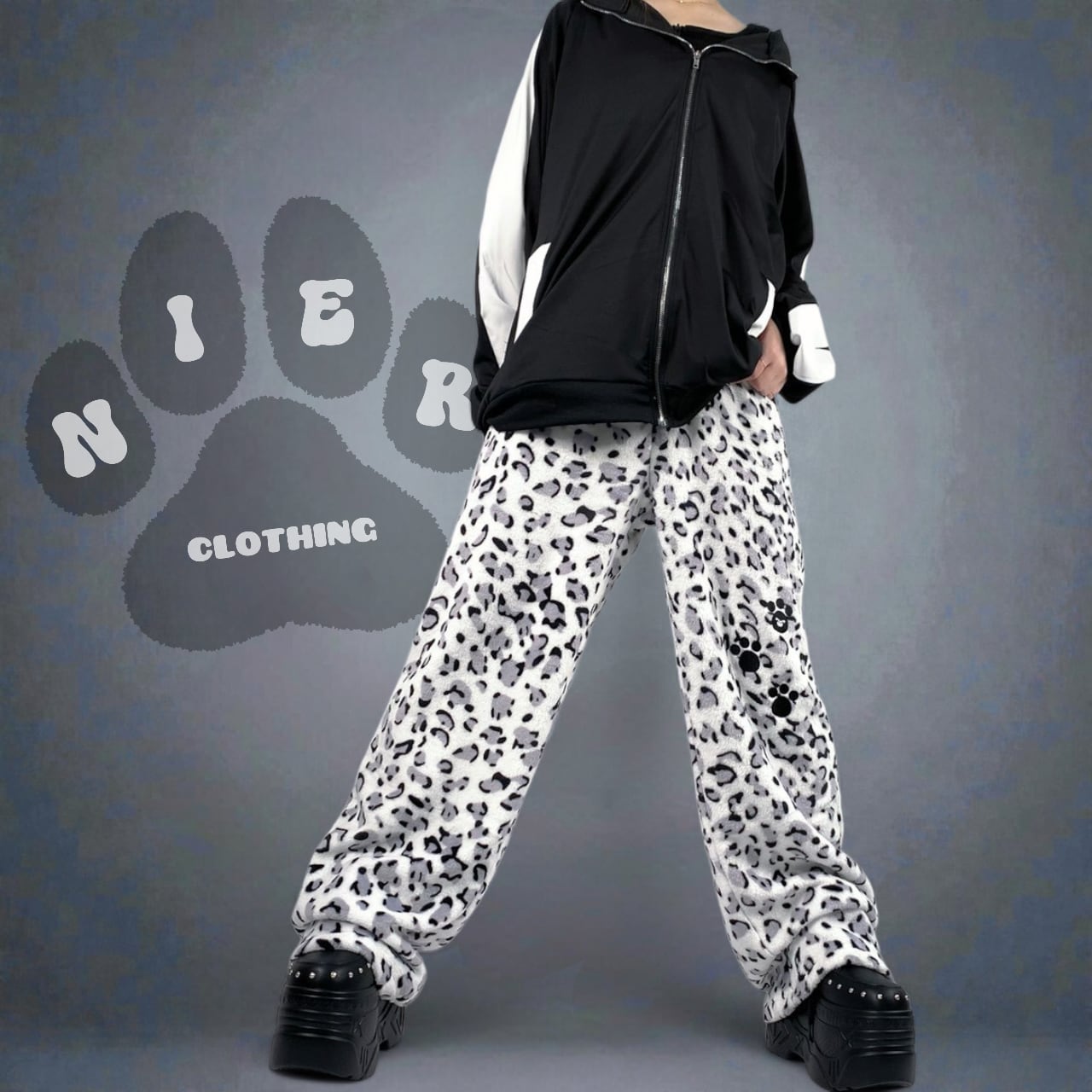 《ホワイトデー限定超大特価70%OFF》超軽量ふわもこホワイトレオパードワイドパンツ【足跡刺繍デザイン入り】