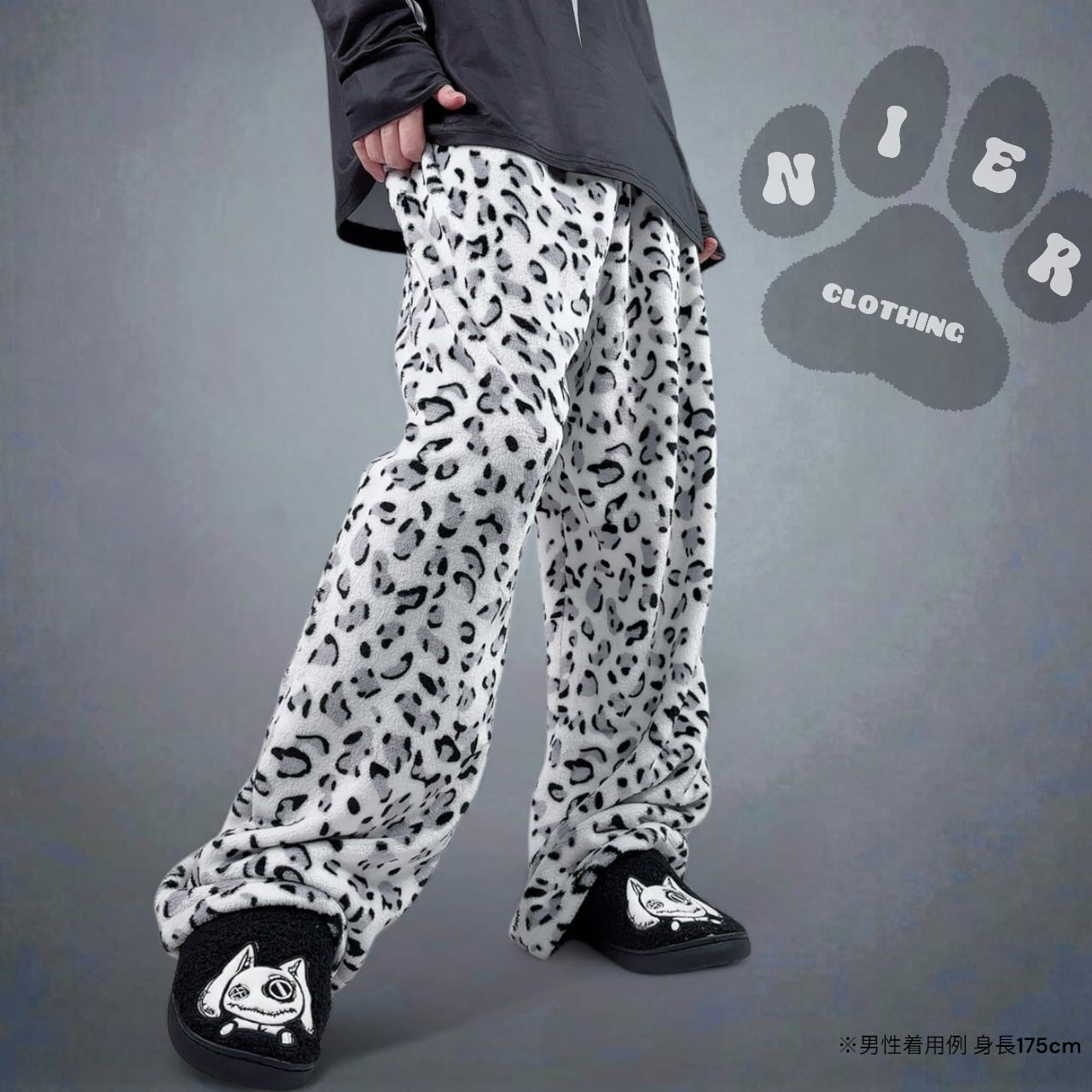 さりげなく散りばめられた肉球デザインがポイントのワイドパンツです。
