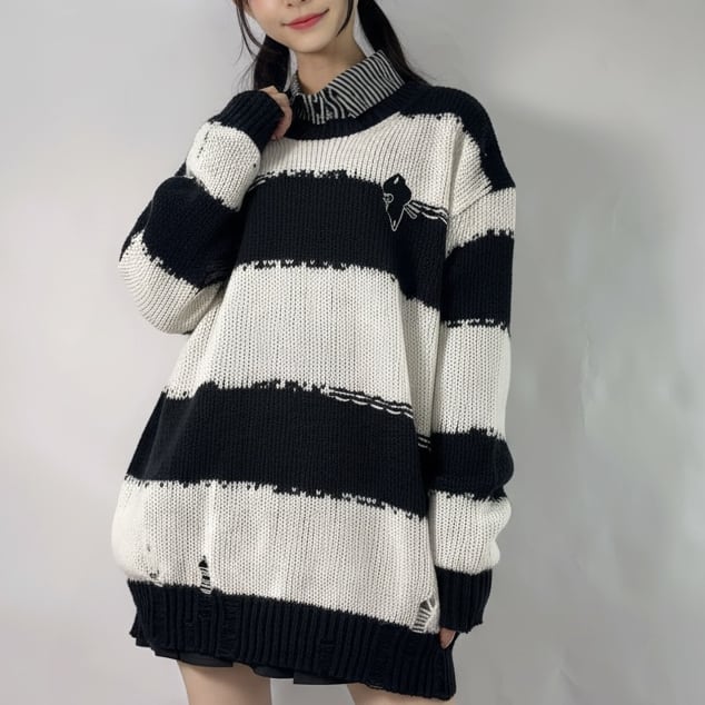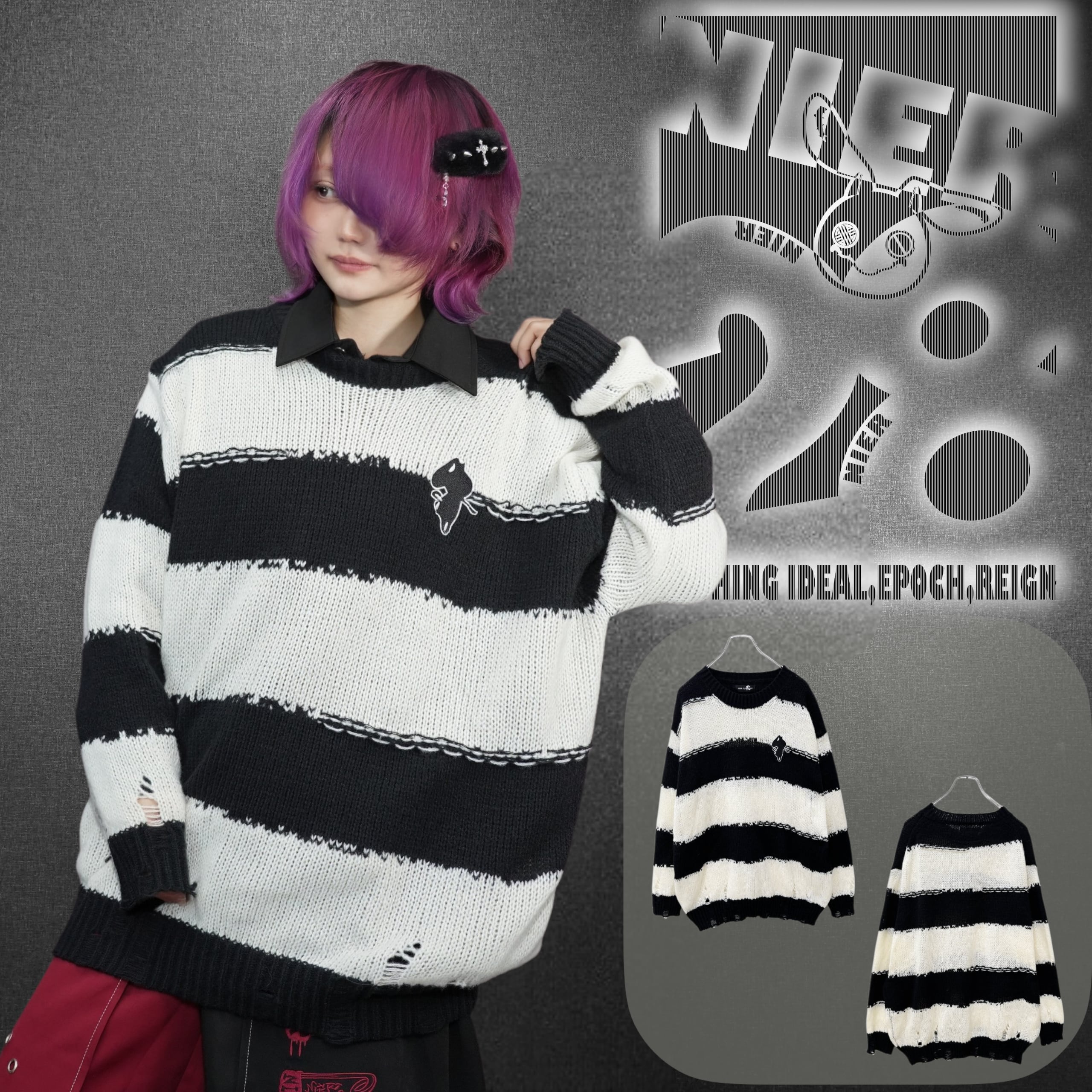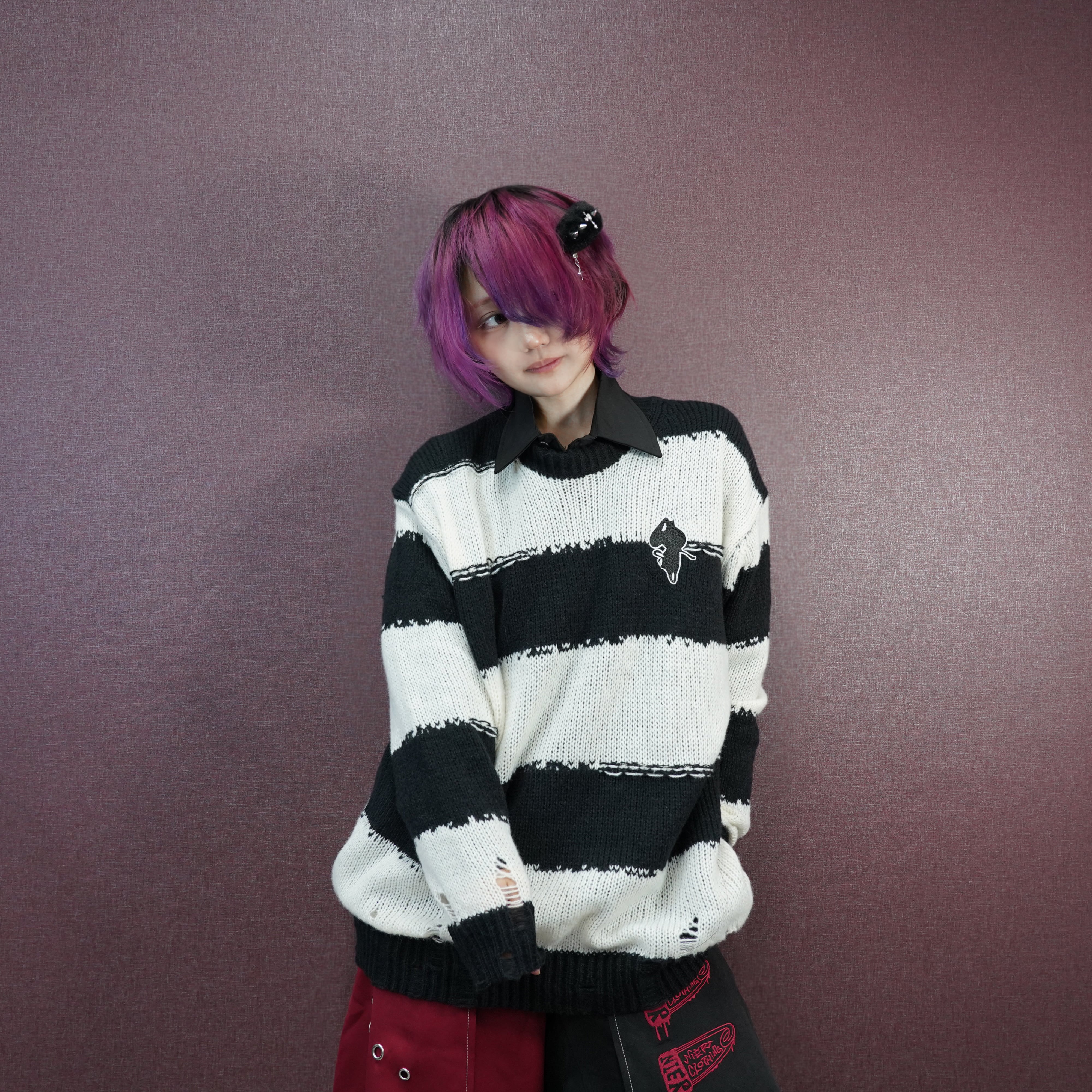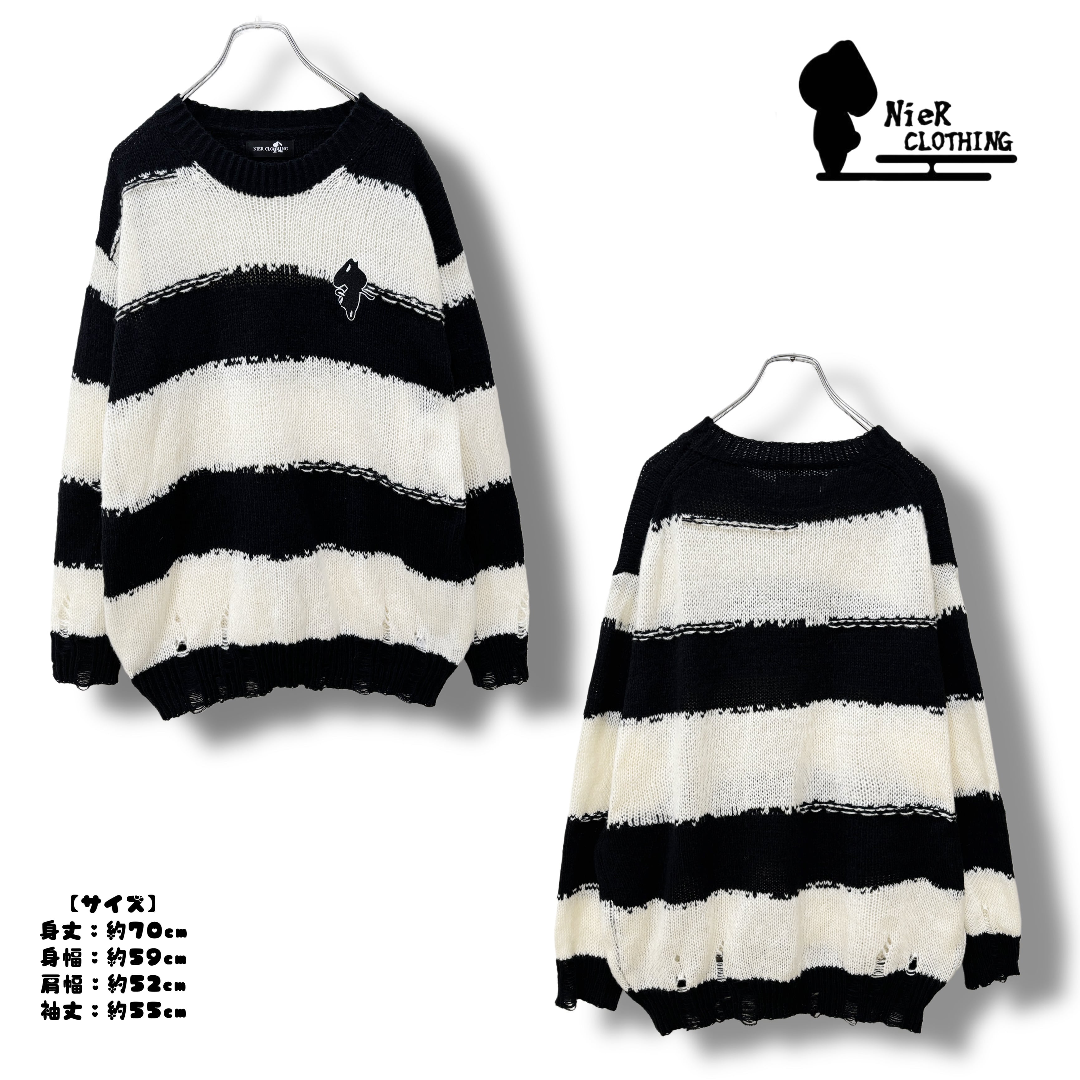 《先着39点限定赤字プレゼント66%OFF》BORDER DAMAGE KNIT