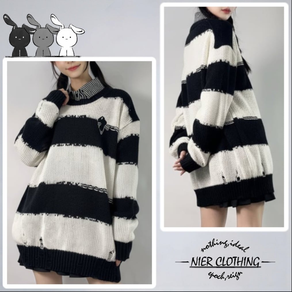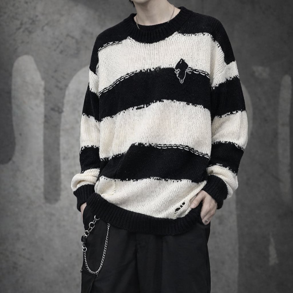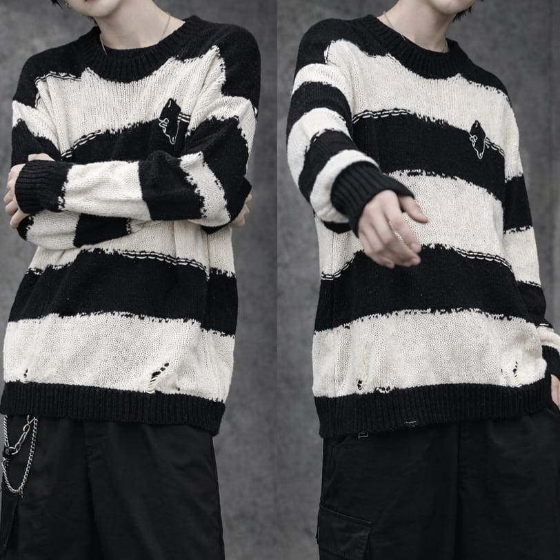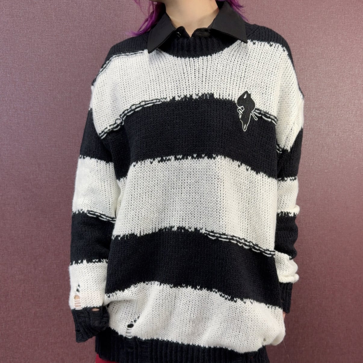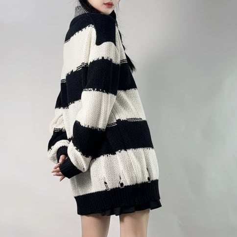《先着39点限定赤字プレゼント66%OFF》BORDER DAMAGE KNIT