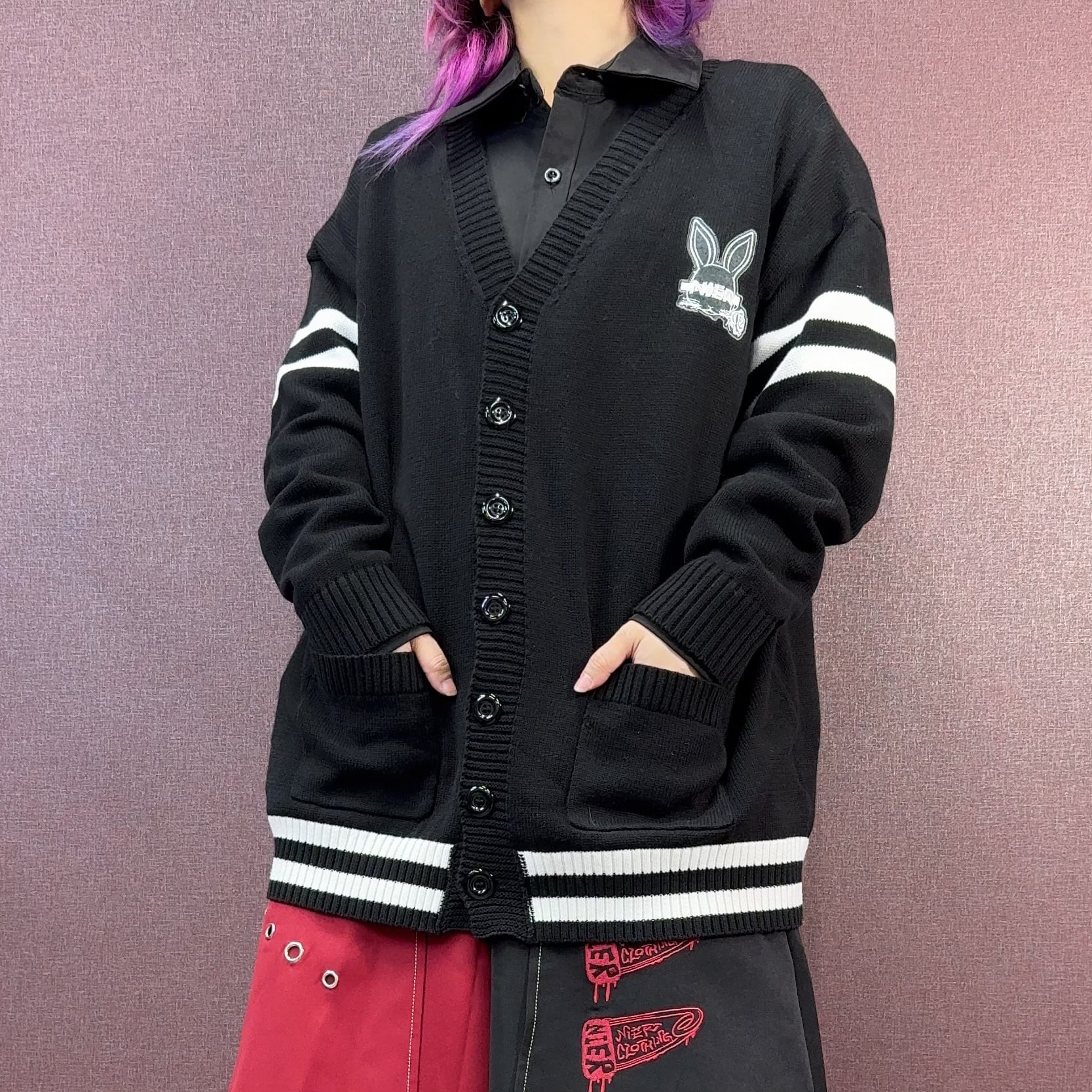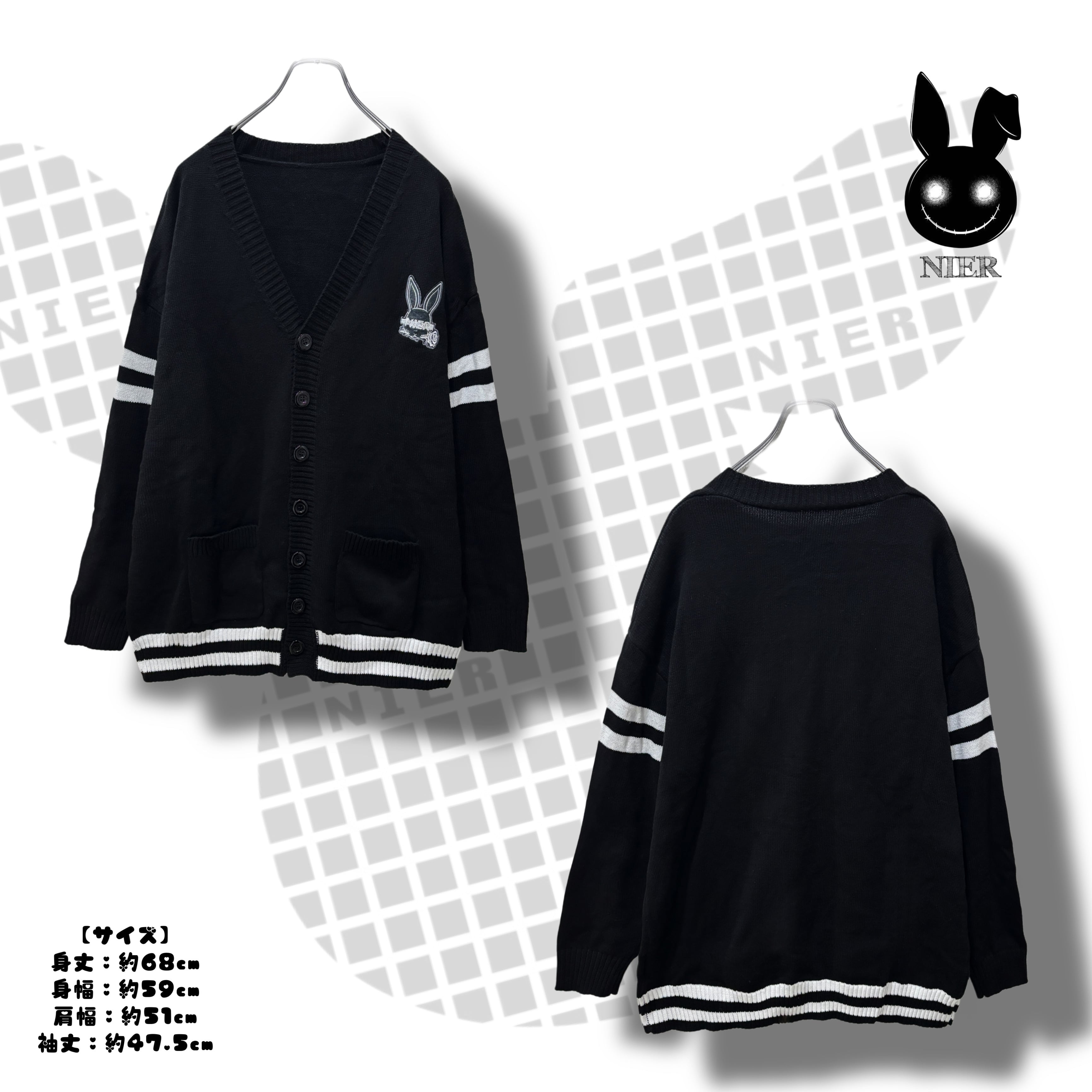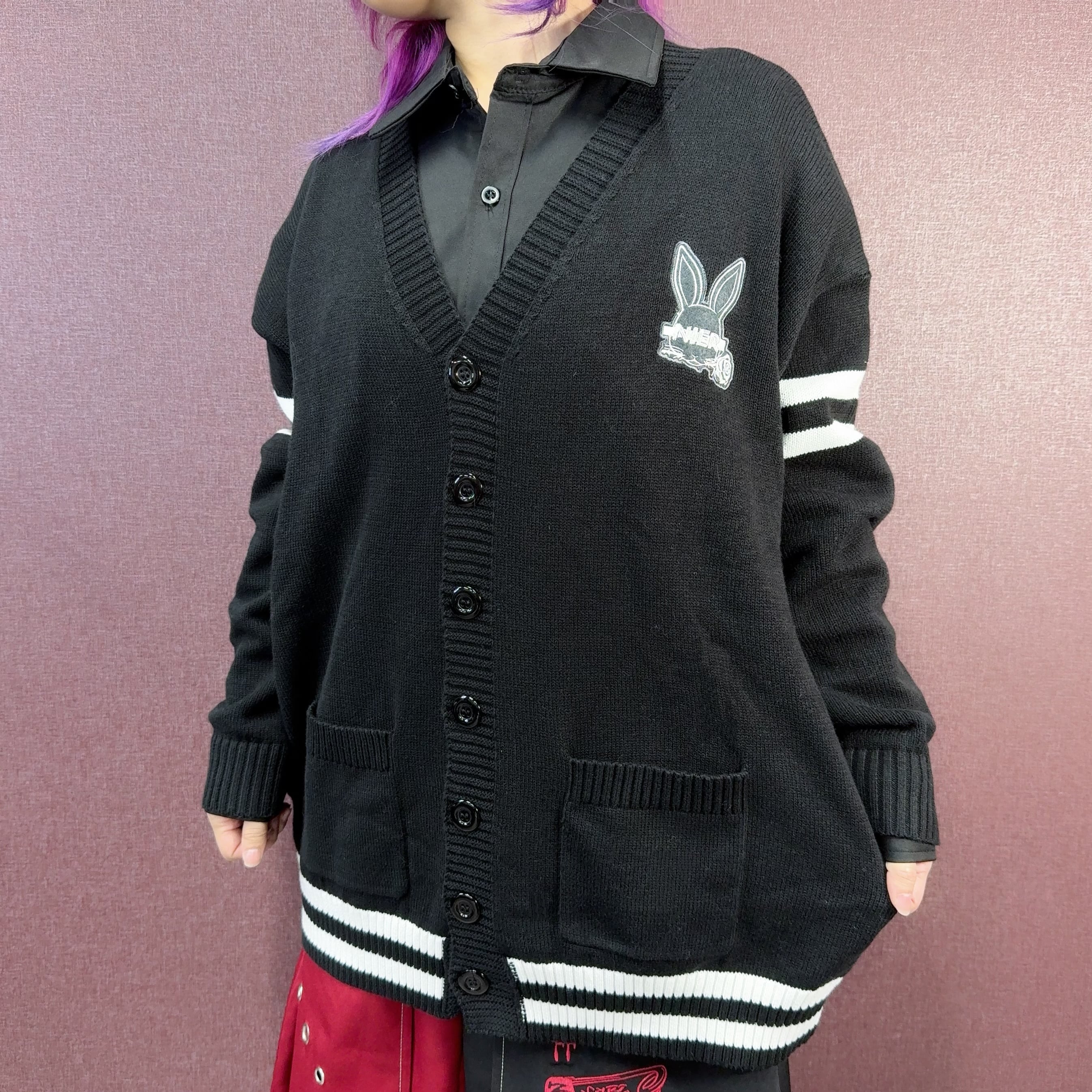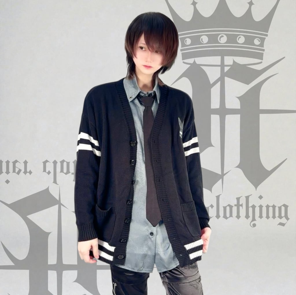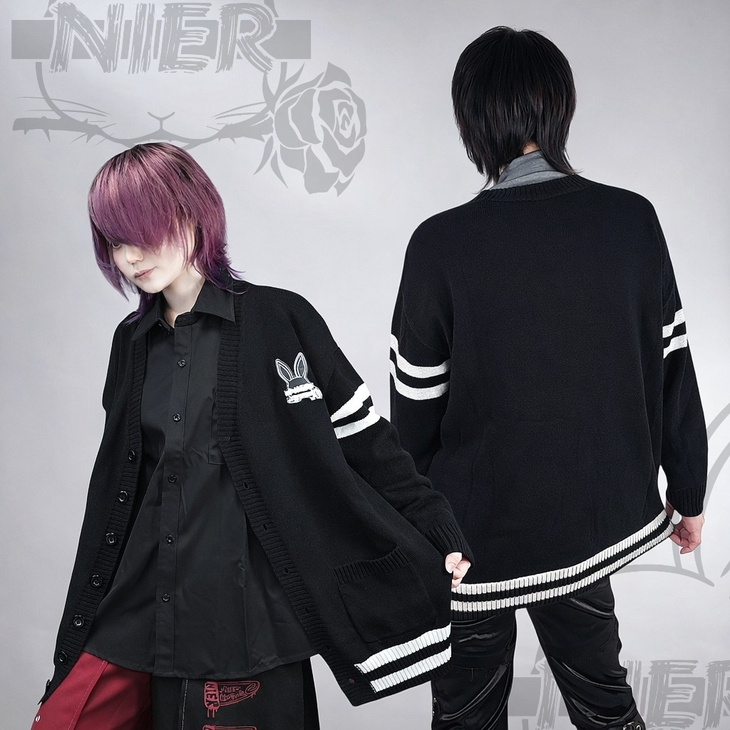 《シークレットプレゼント》BLACK KNIT CARDIGAN 【RABBIT LOGO刺繍入り】