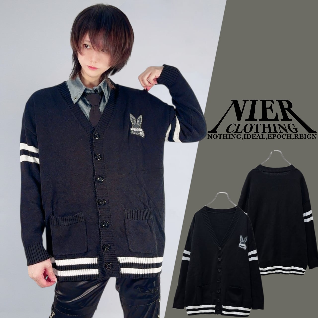 胸元に刺繍されたNIERオリジナルのラビットロゴが目を惹く、