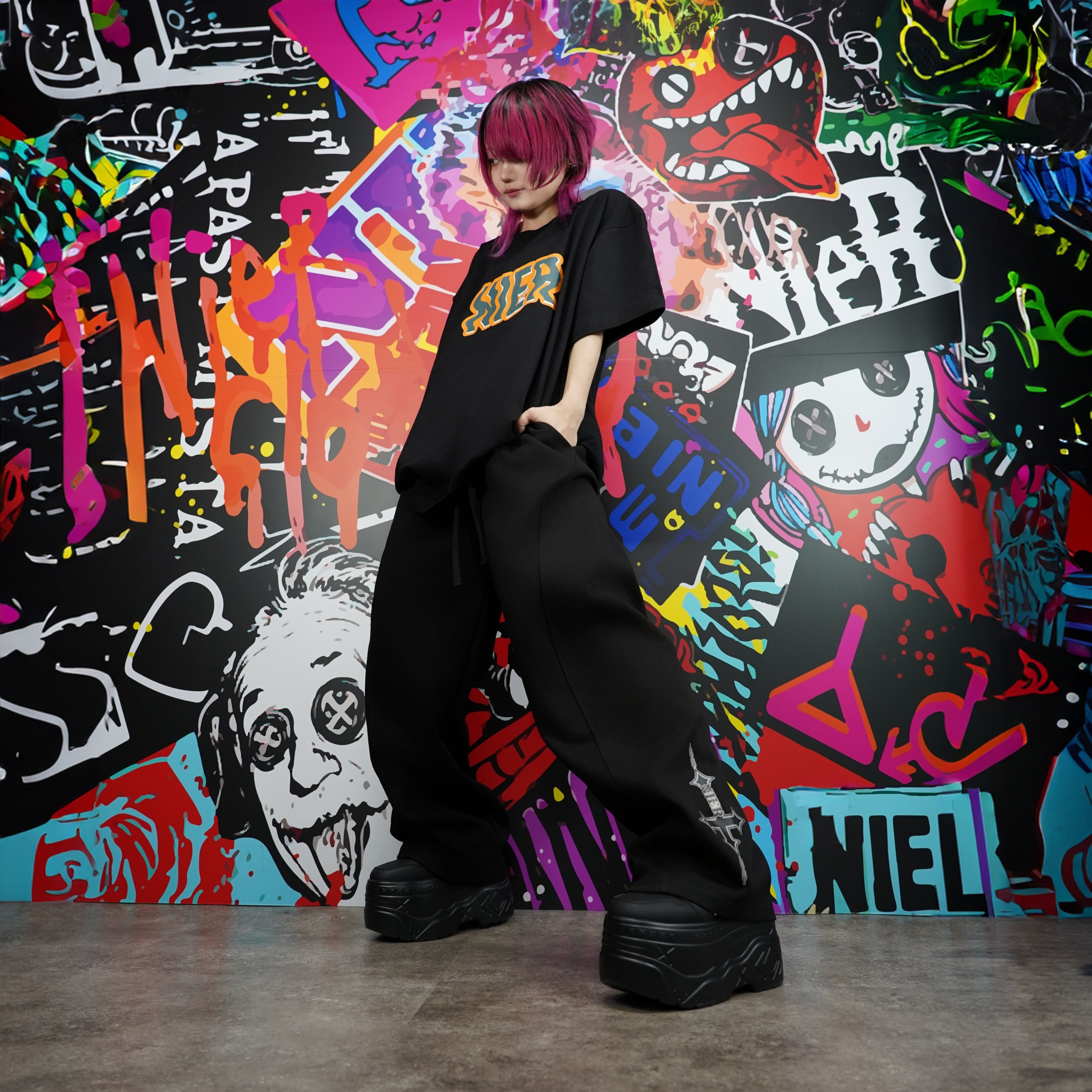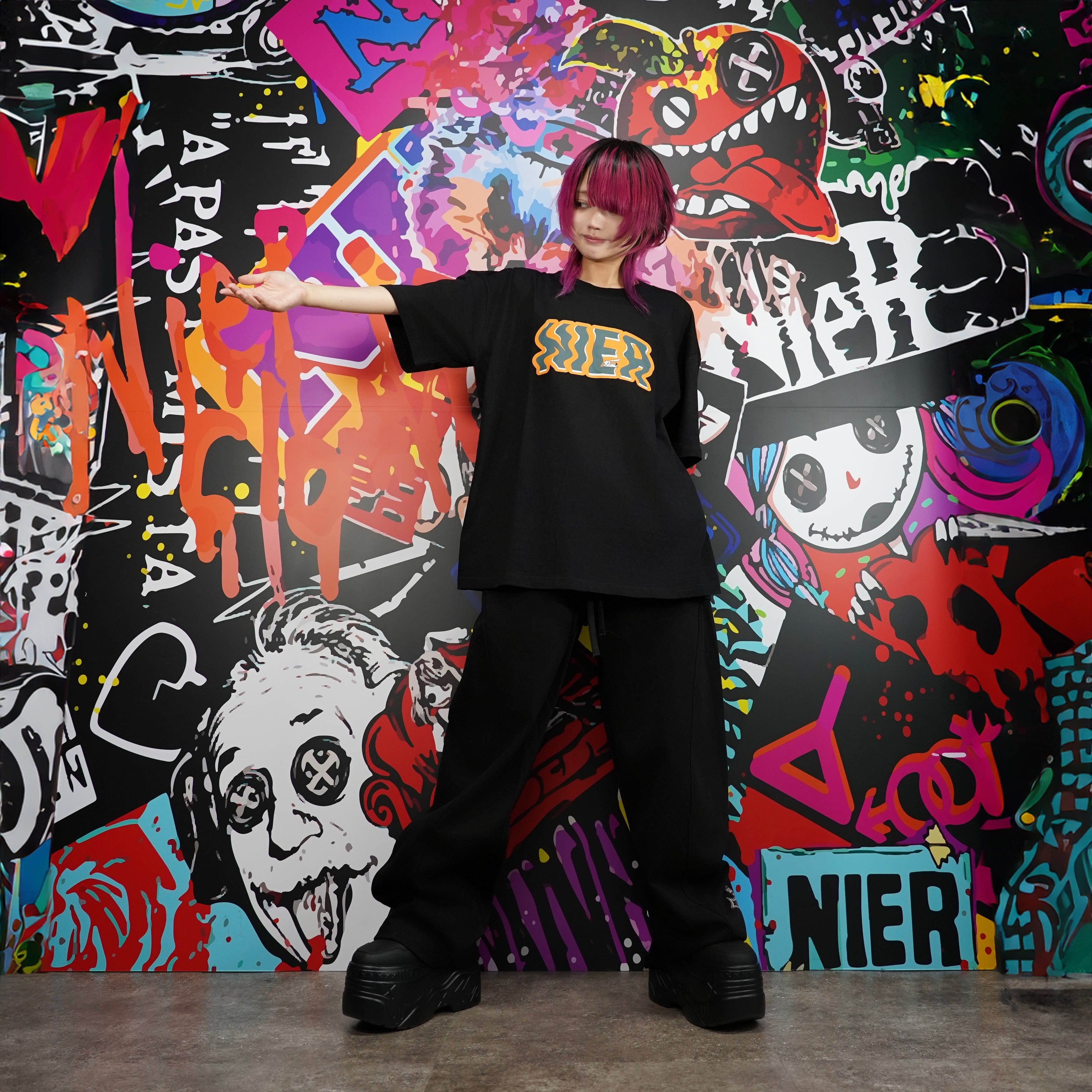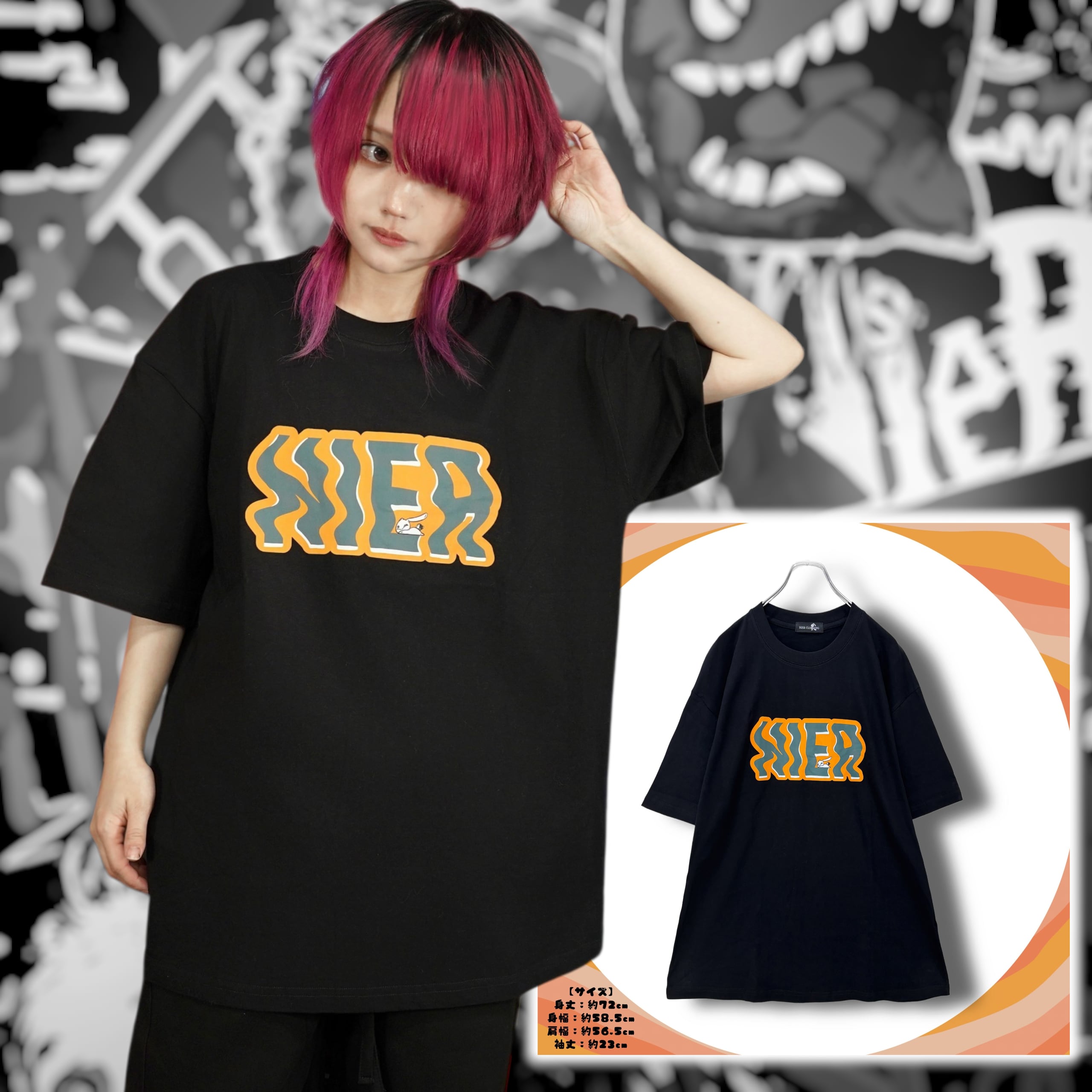 さりげなく乗ったNIERちゃんがアクセントになった遊び心溢れるBIG Tシャツ。