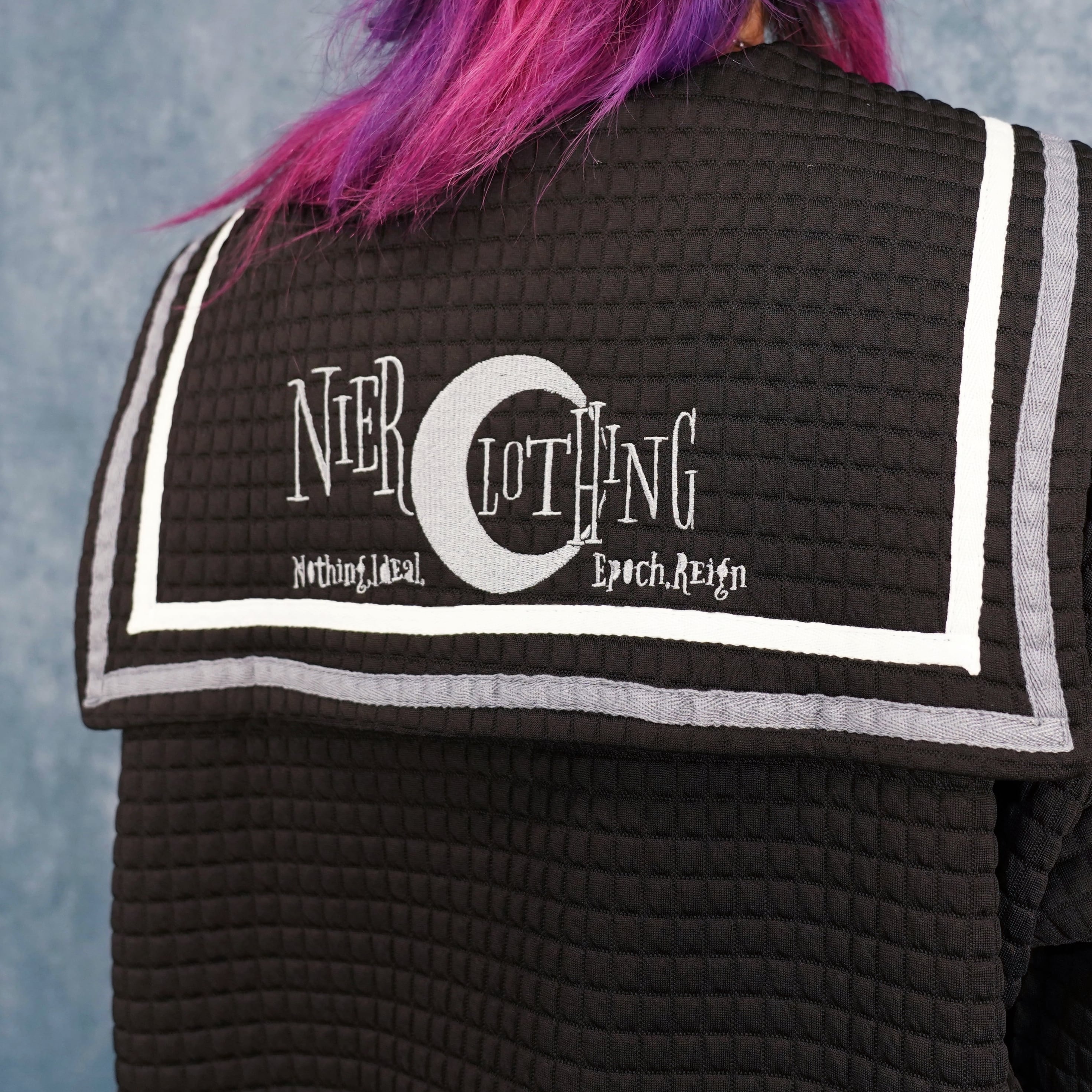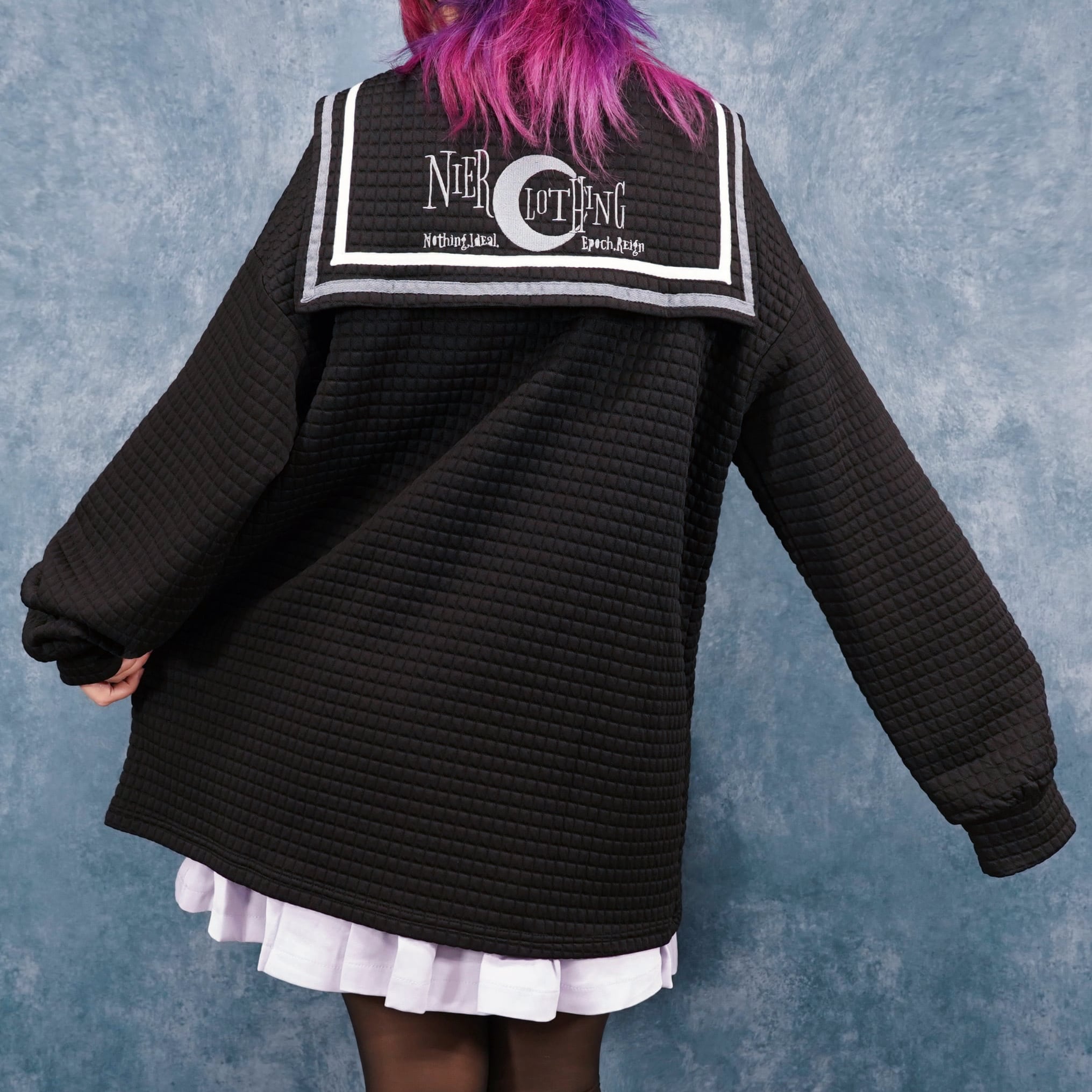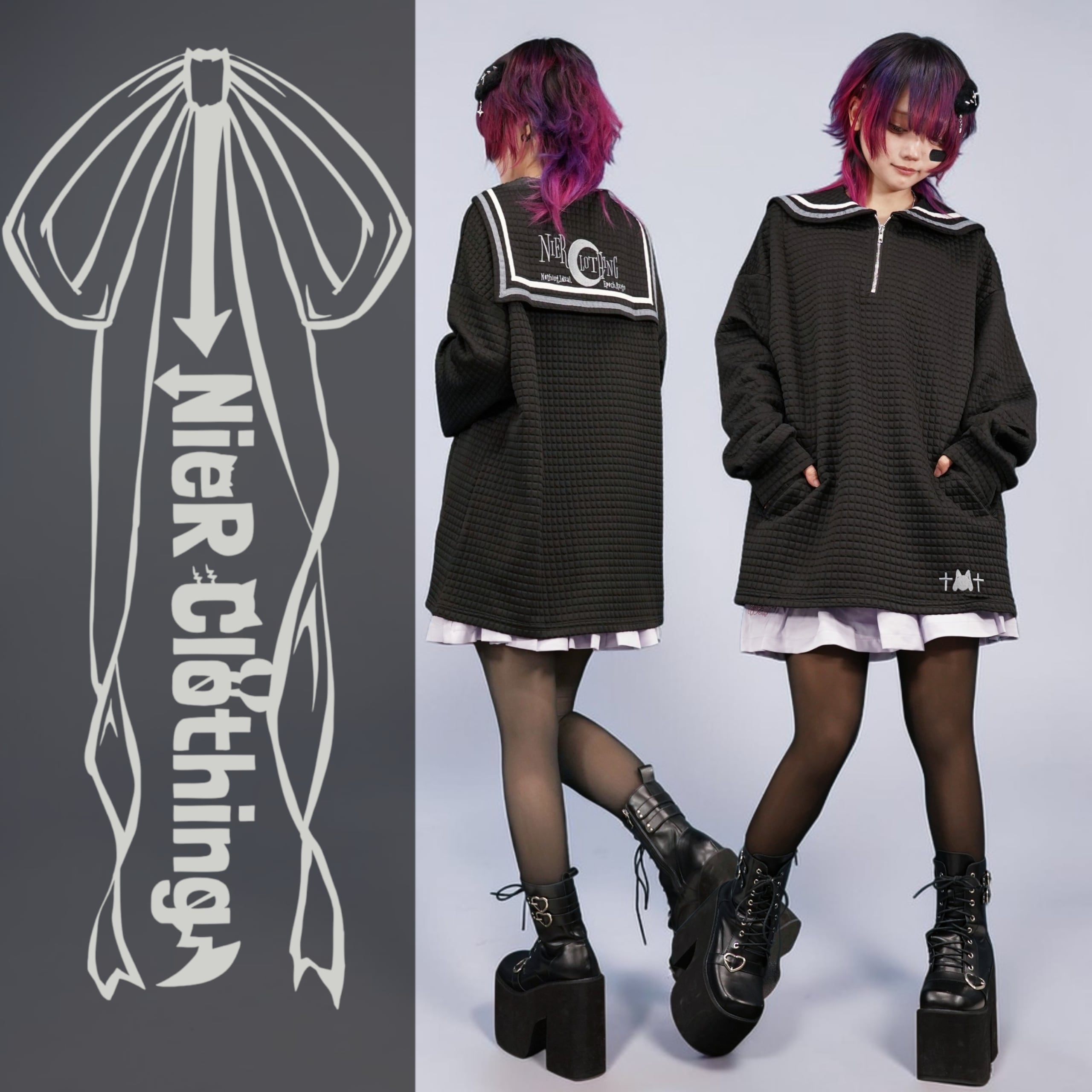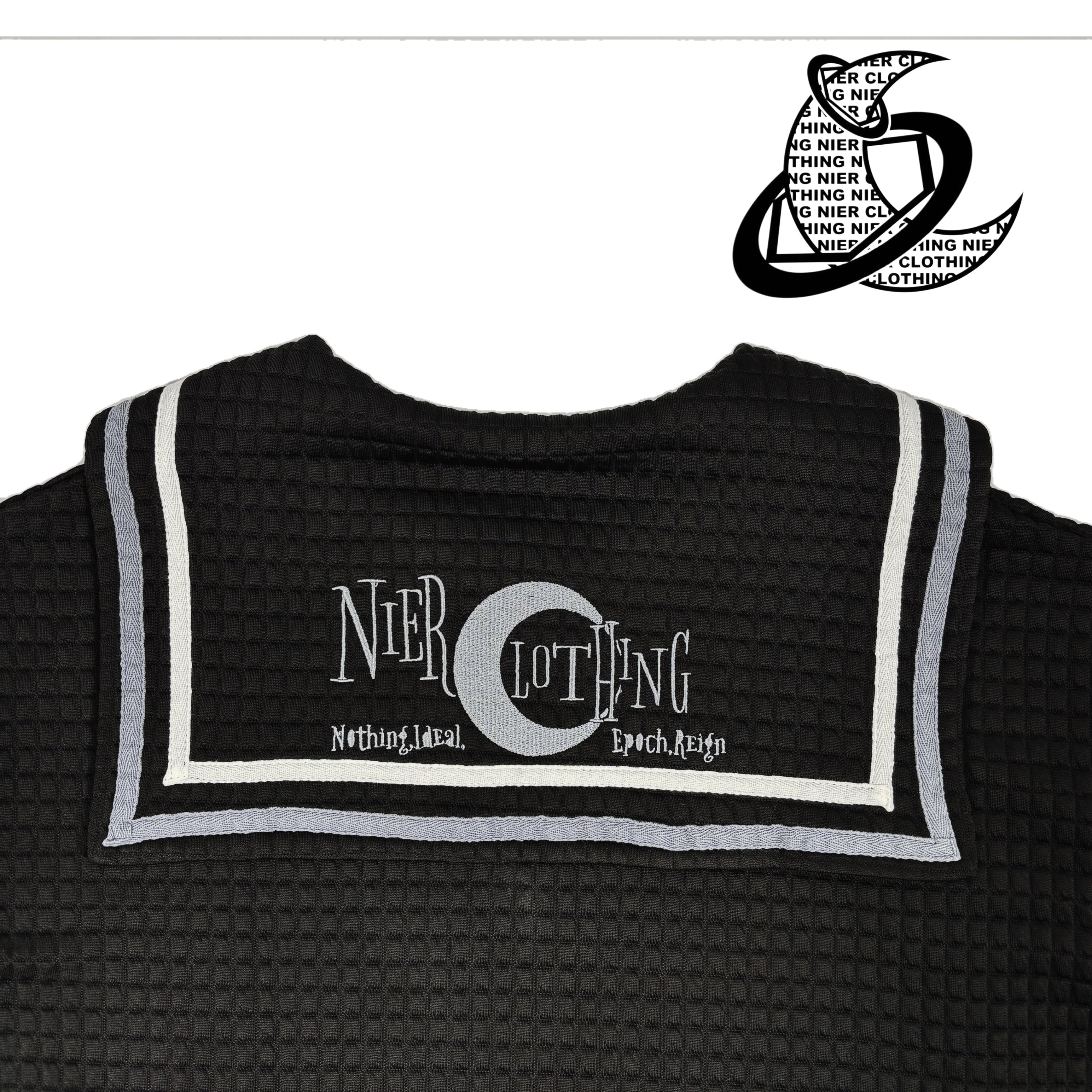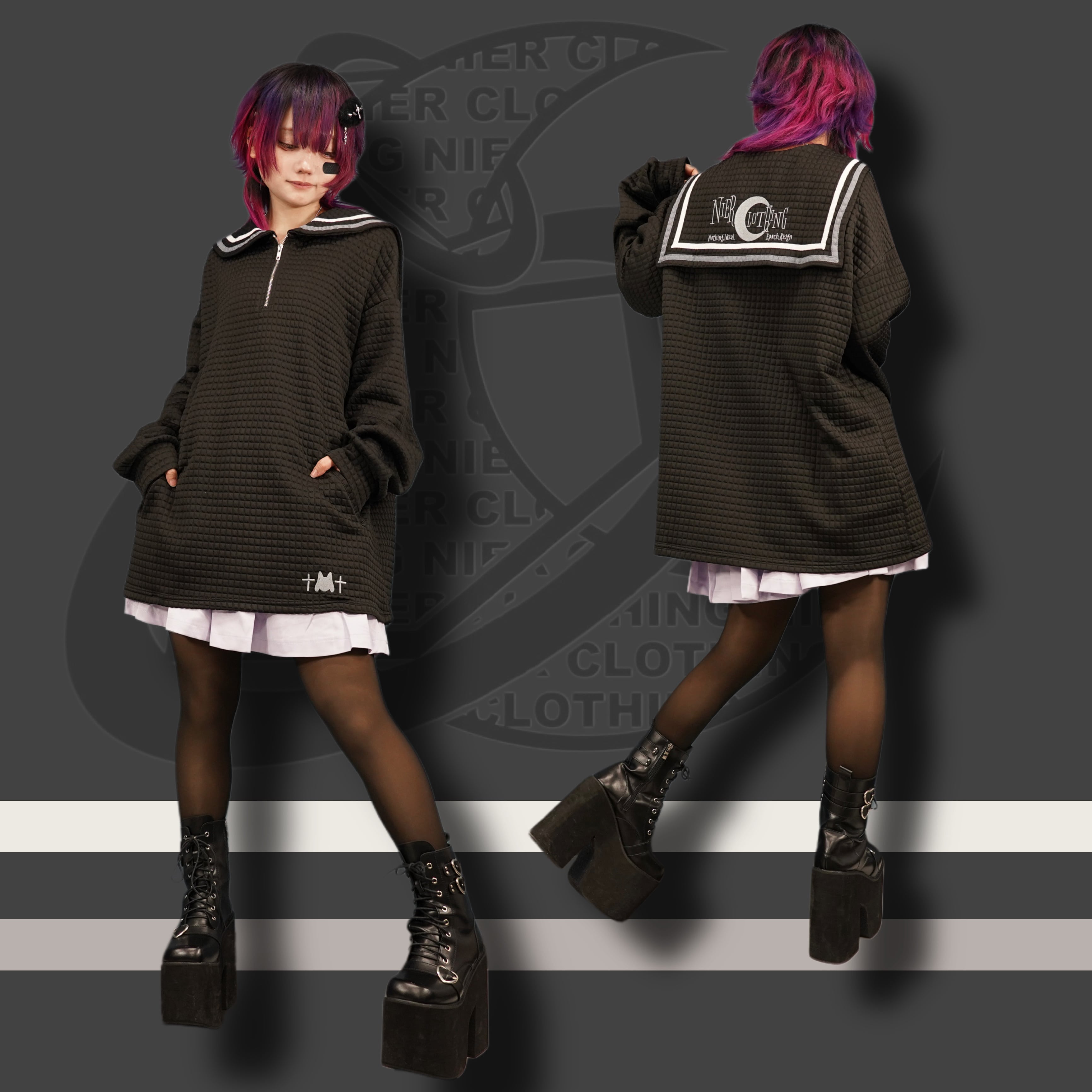 《先着50点限定66%OFFプレゼント》UNISEXセーラー襟ハーフZIPワッフルトップス【BLACK】