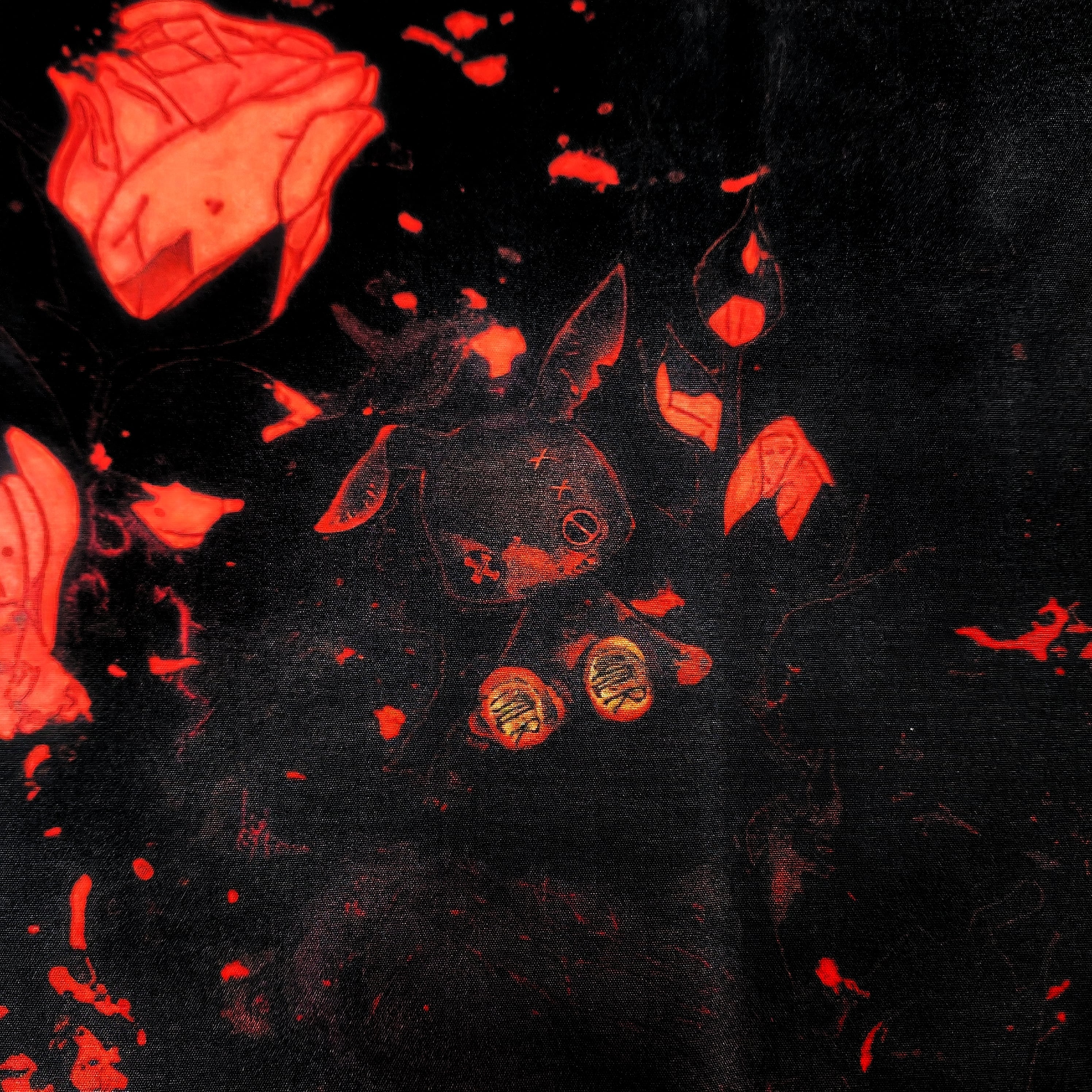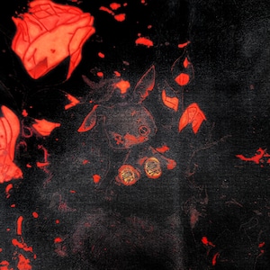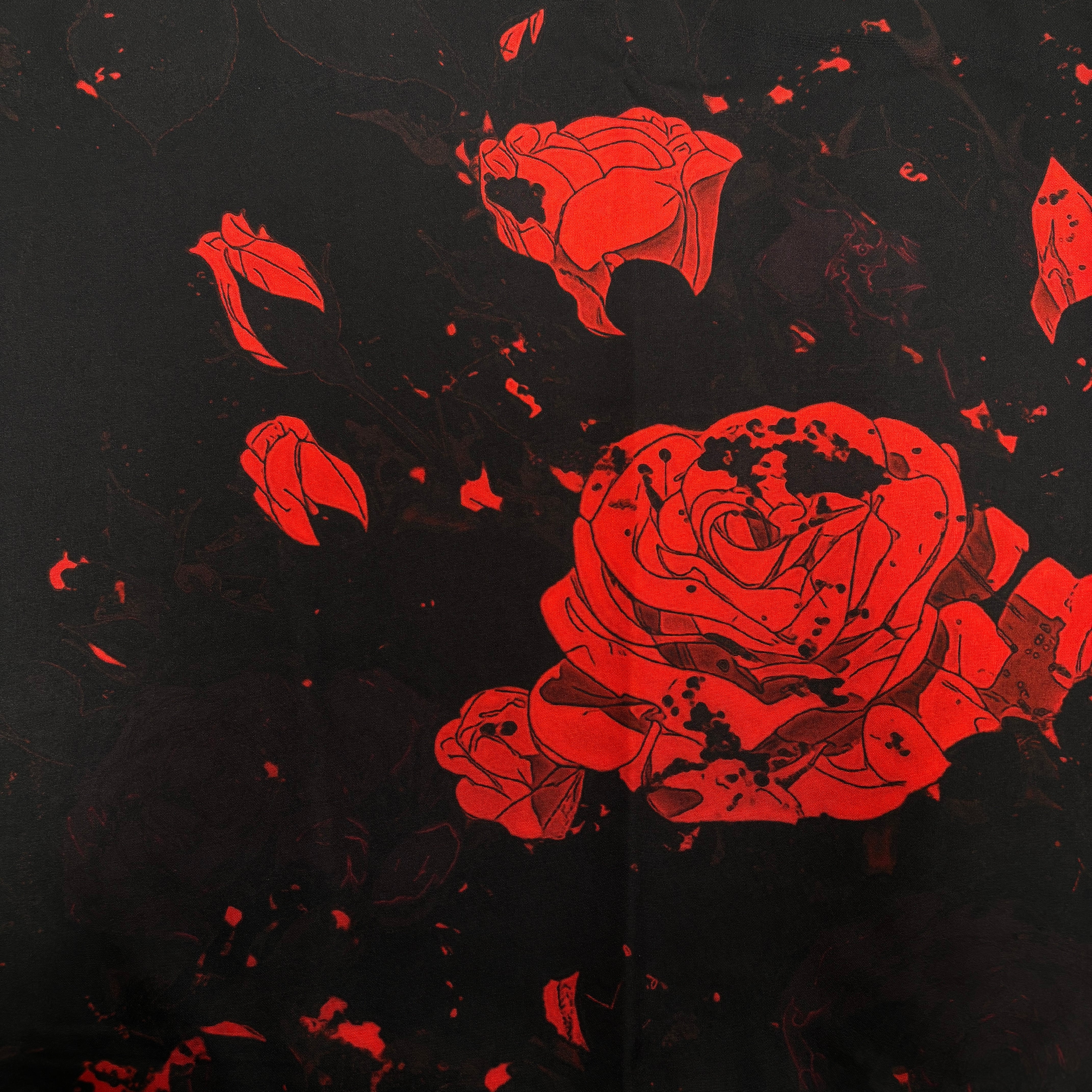 滲むように広がるスプラッシュ表現と薔薇のモチーフが重なり合い、