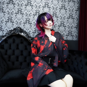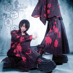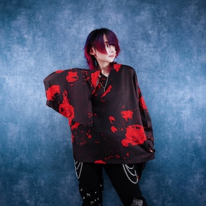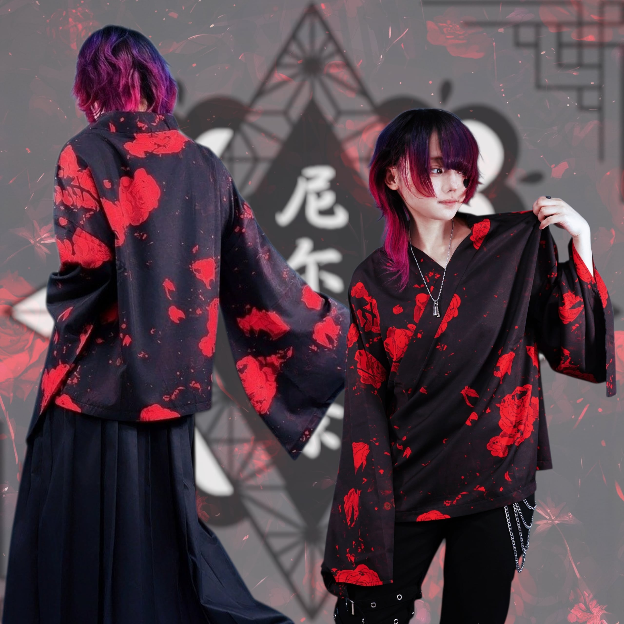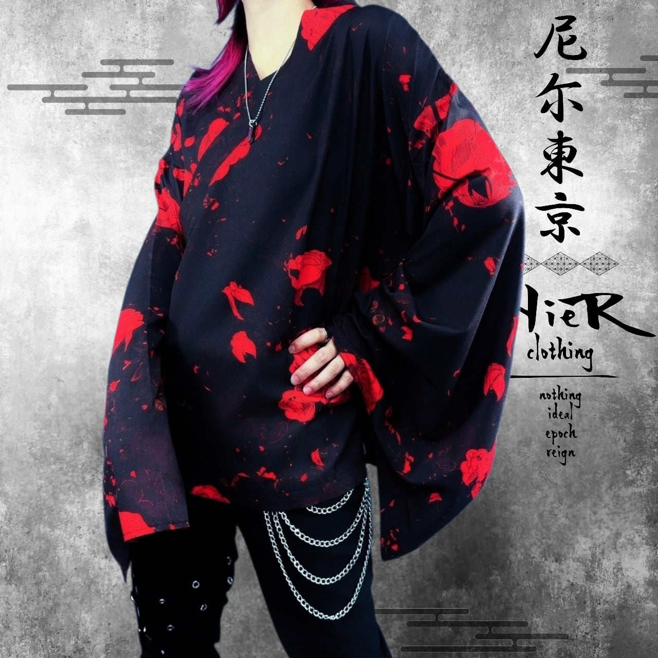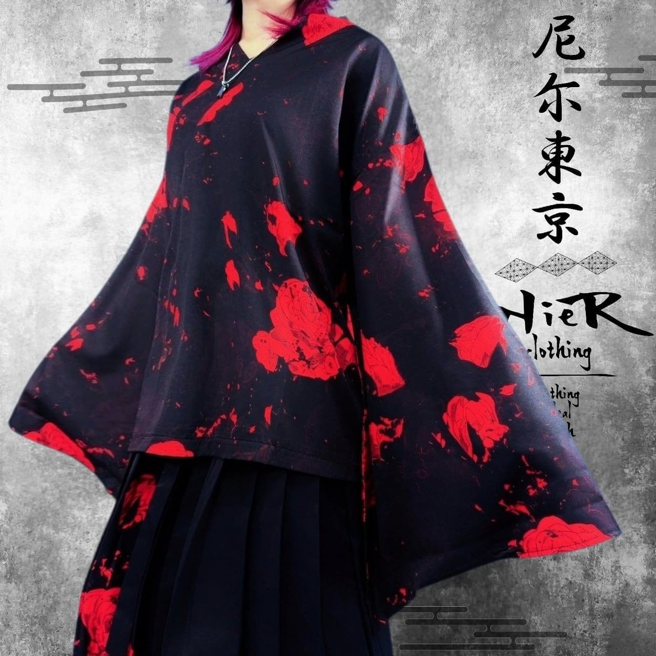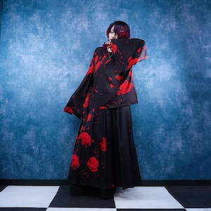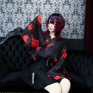 軽量着物袖UNISEXプルオーバー【紅和柄薔薇】
