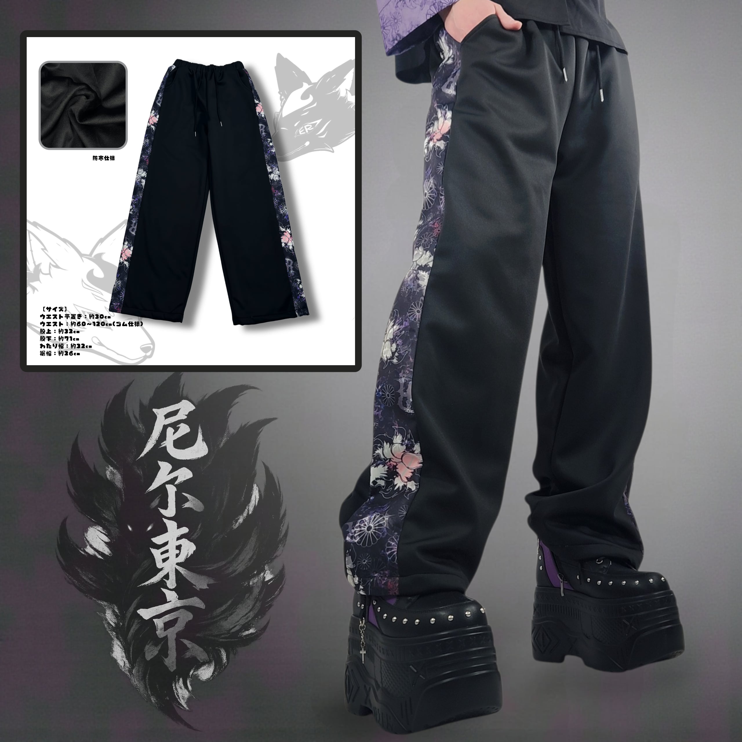 【和柄九尾】のサイドラインが印象的なフリースパンツです。