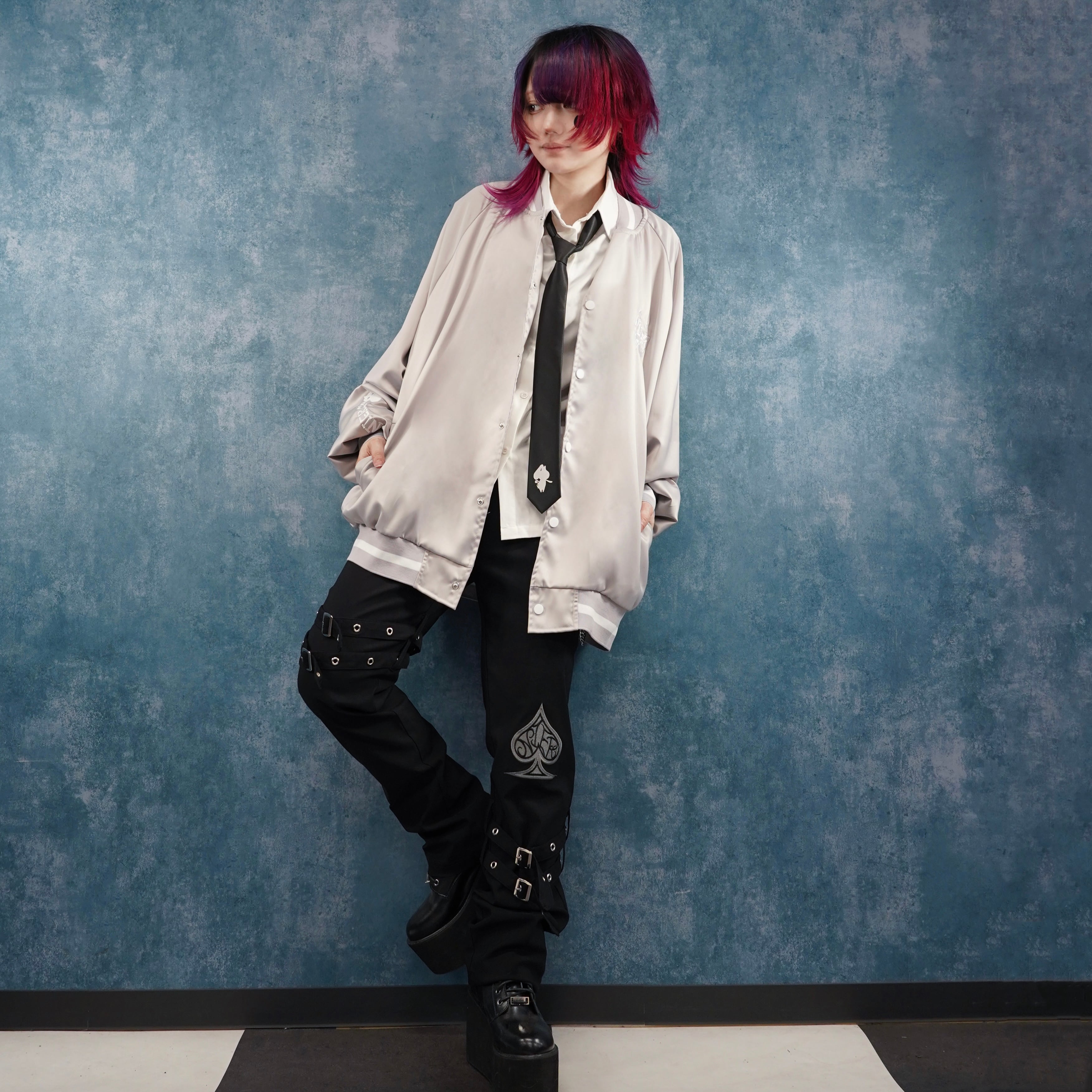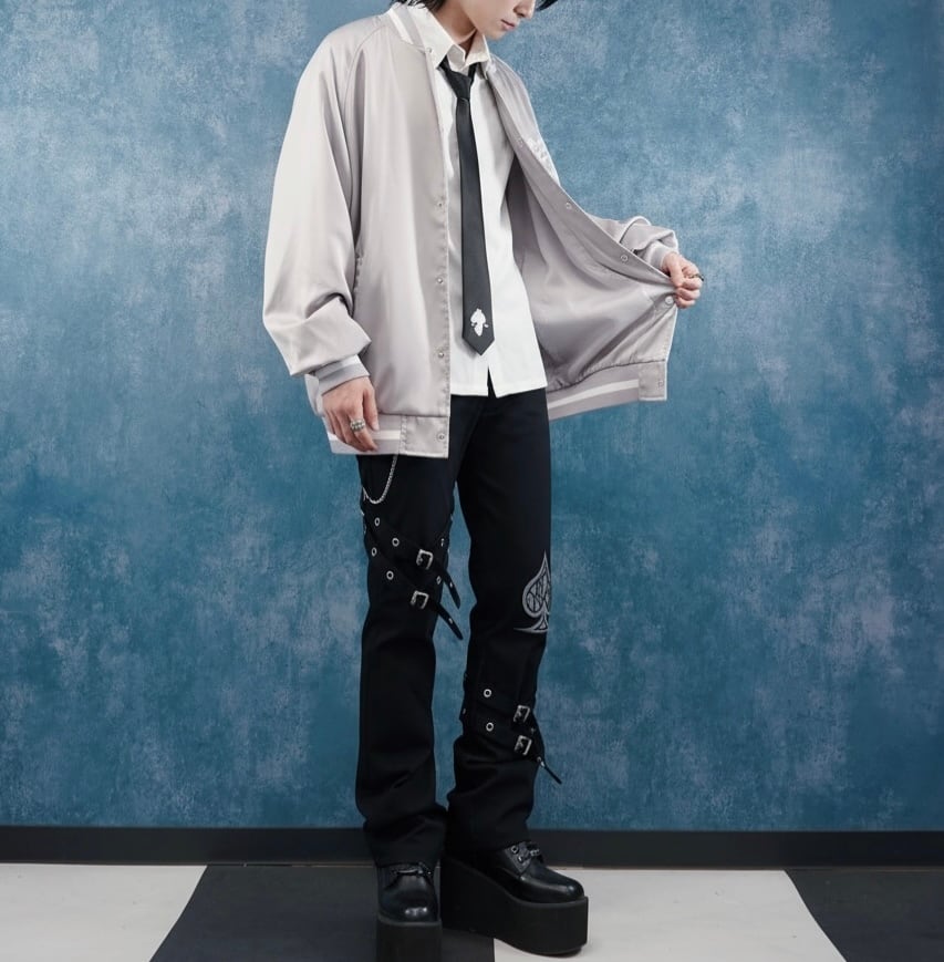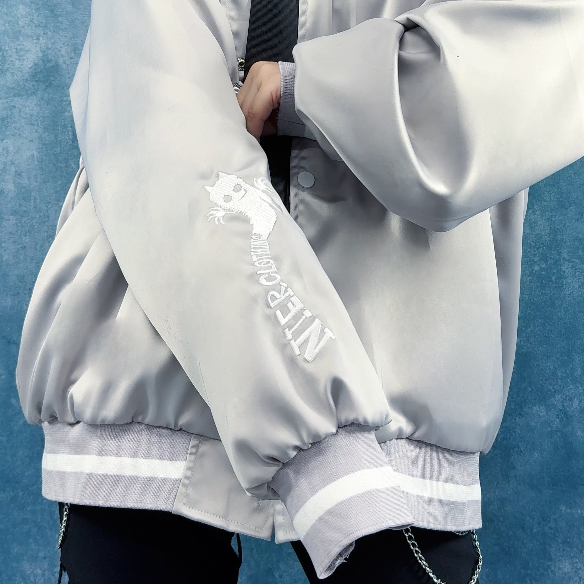 《3/30.31日限定半額プレゼント》刺繍デザインSATIN LIKE LIGHT BLOUSON【DEVIL】