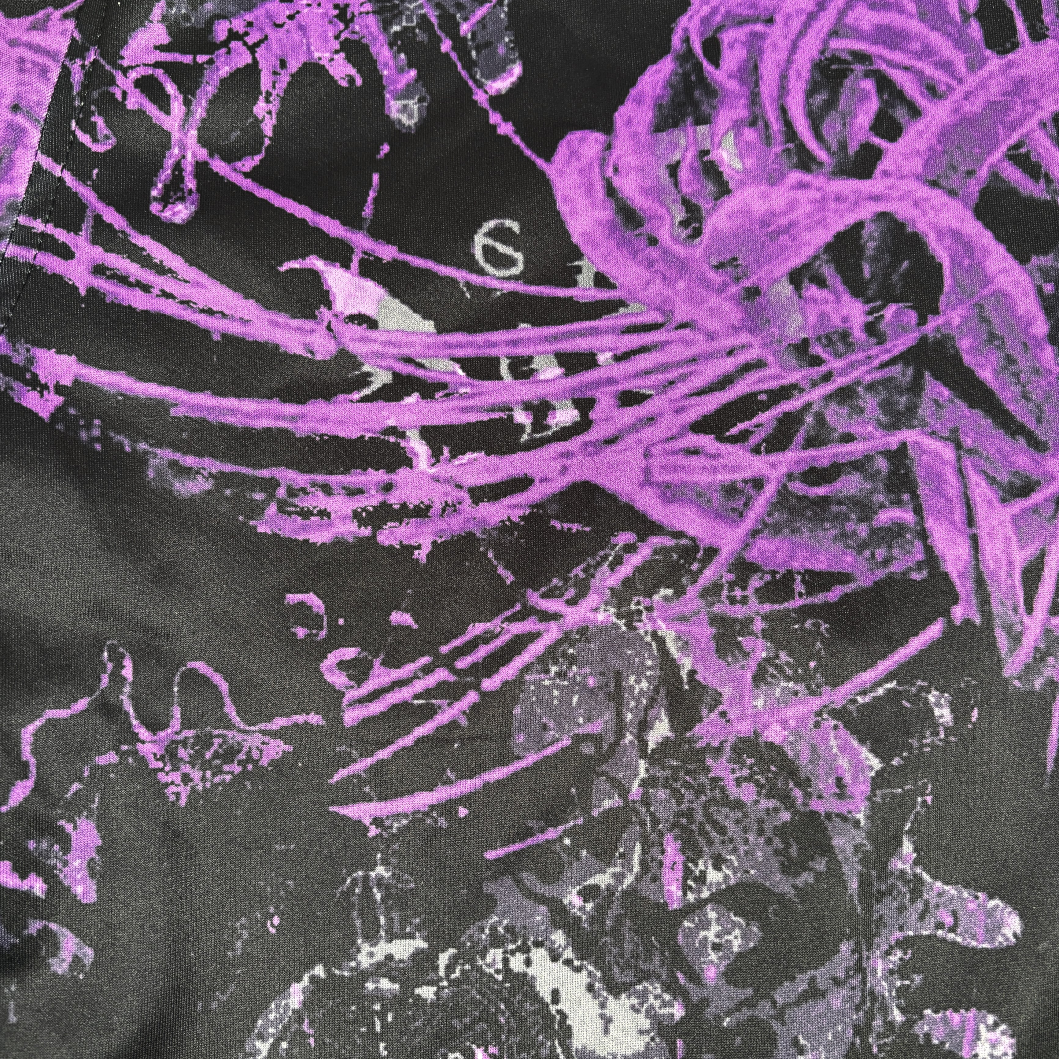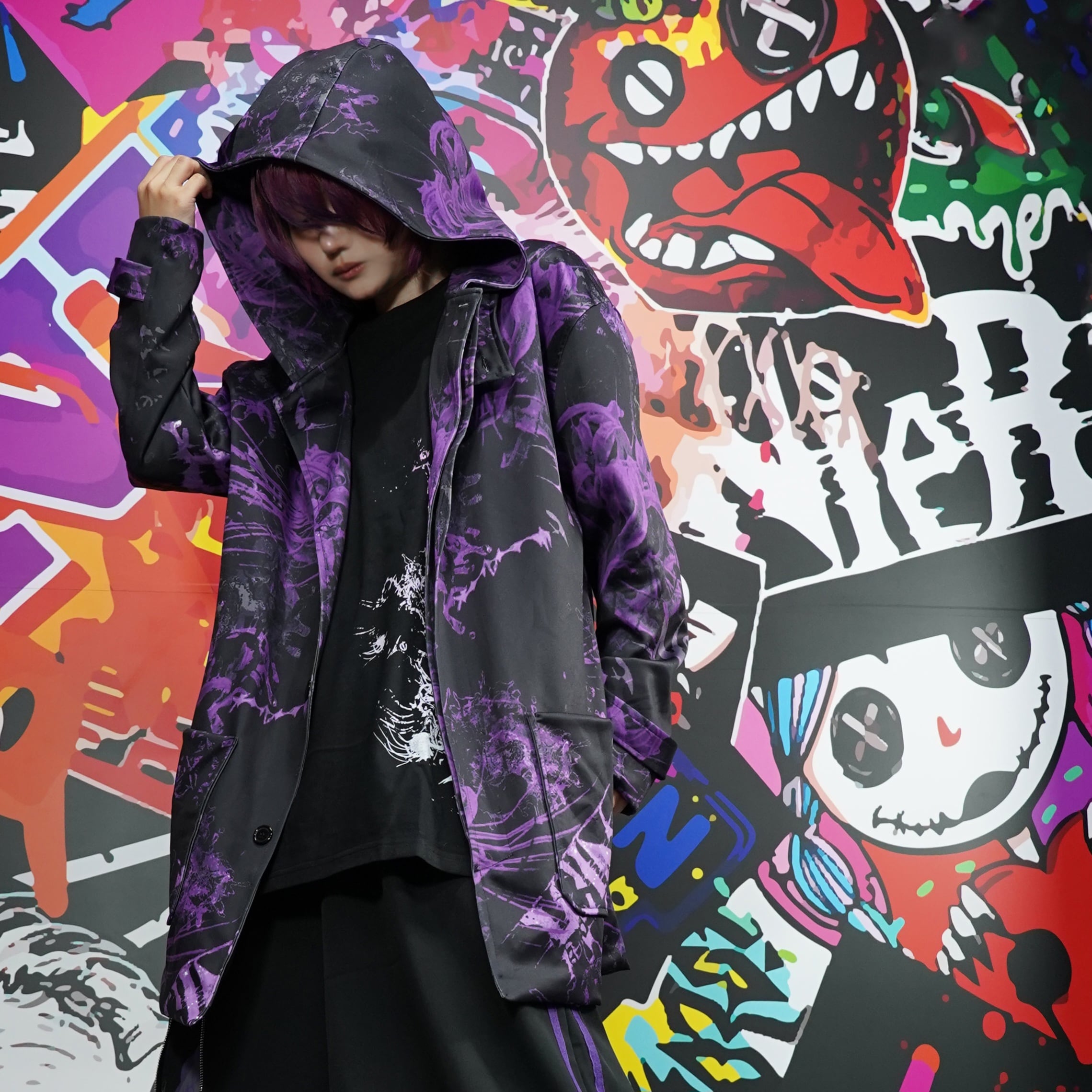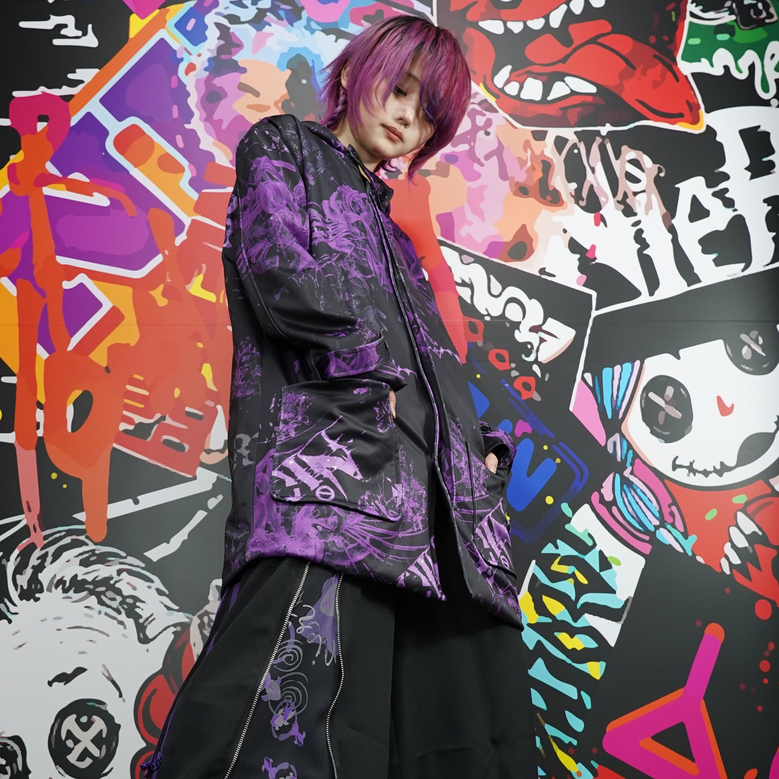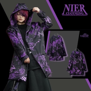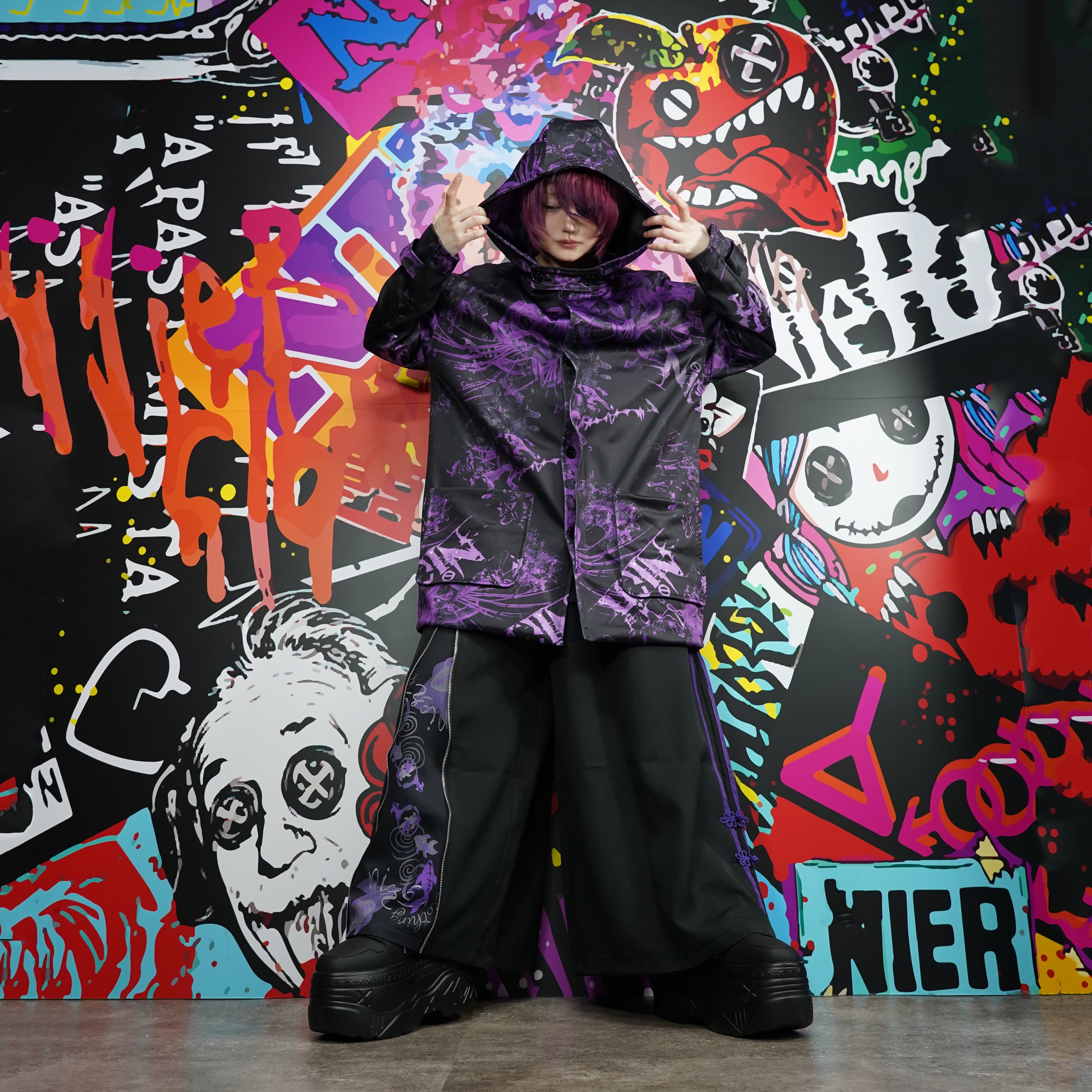 ブラックをベースに、鮮やかなパープルの彼岸花を全面に落とし込んだNIERらしいダークでアート感のあるデザイン。