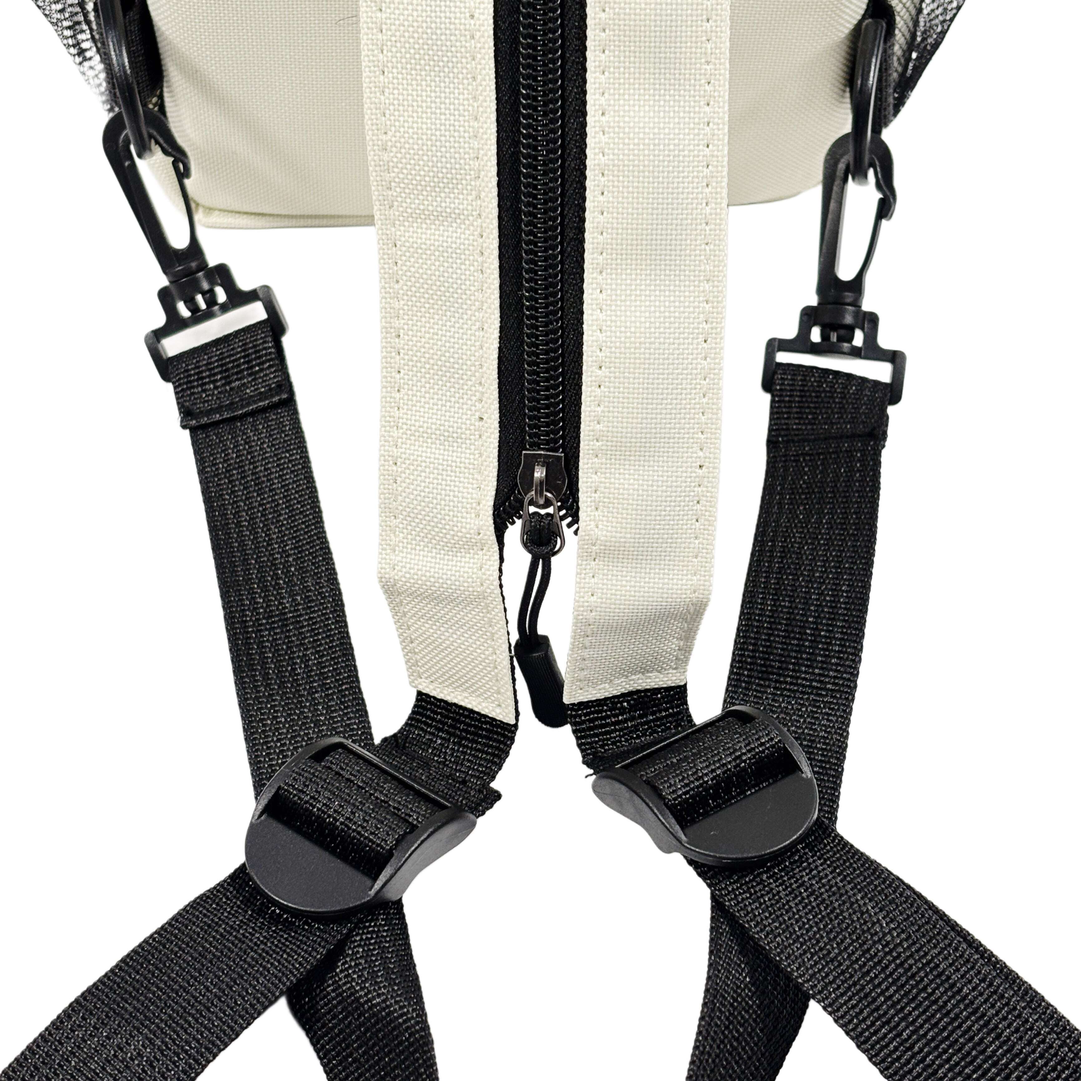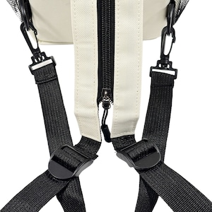 ショルダーベルト部分がチャックで開閉可能な仕様。
