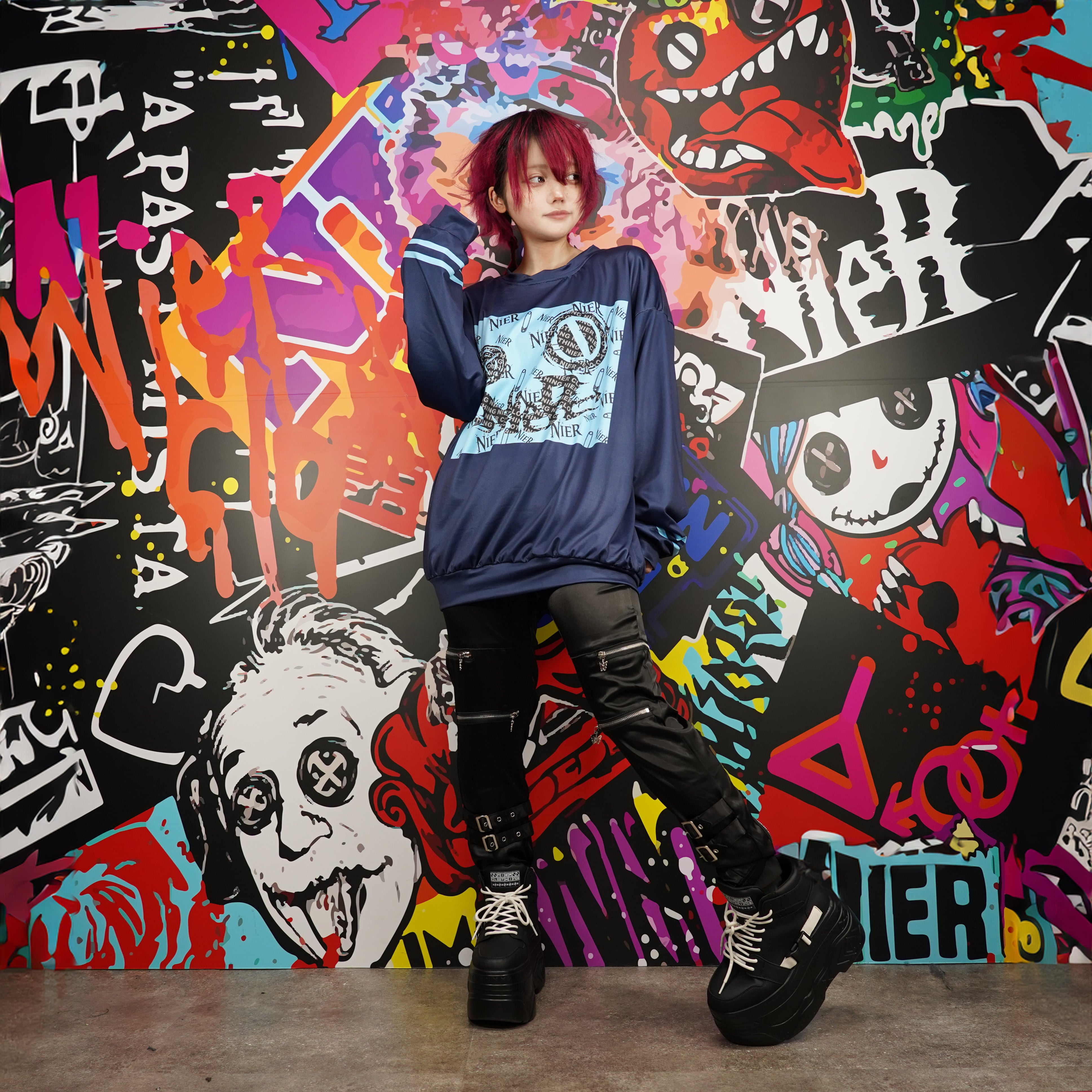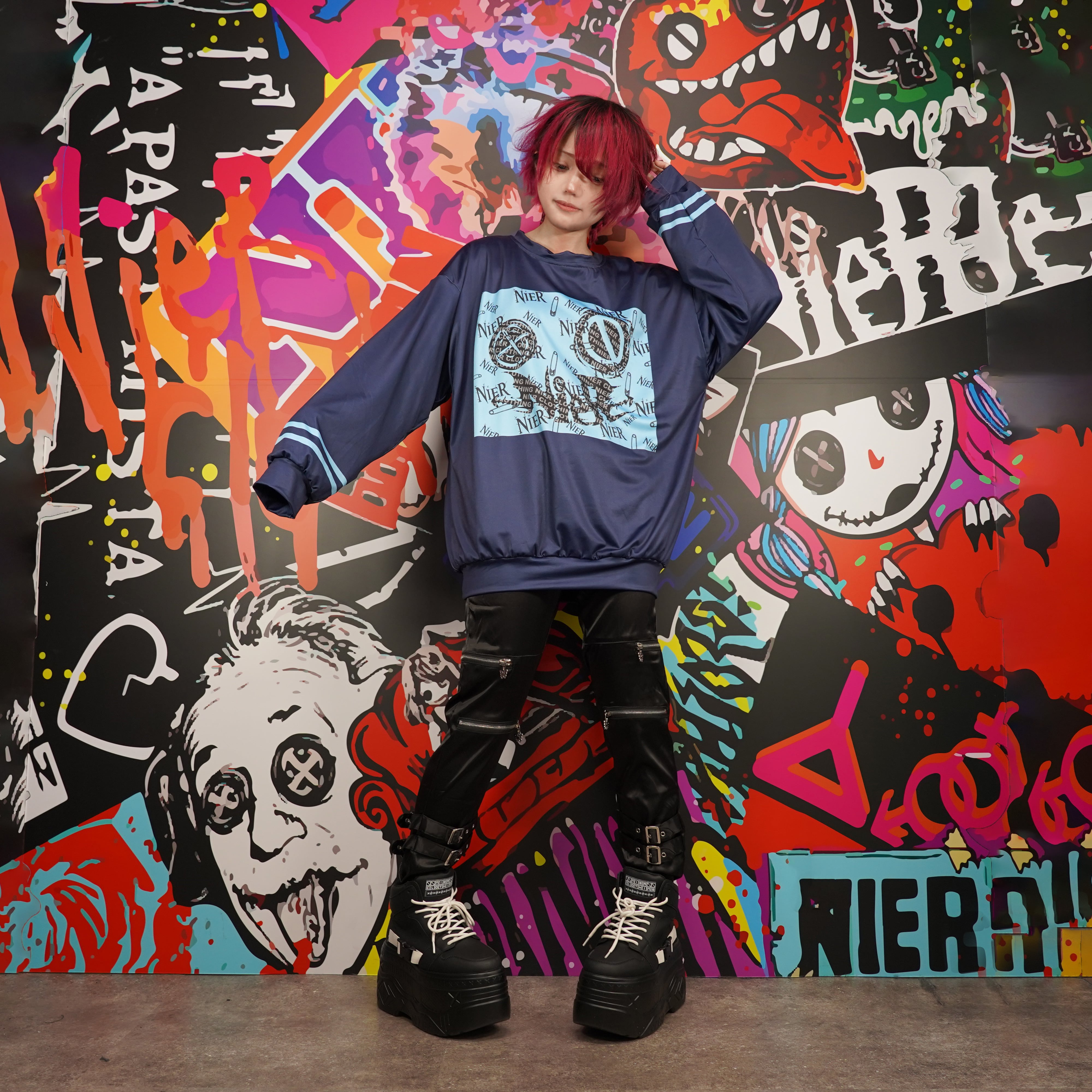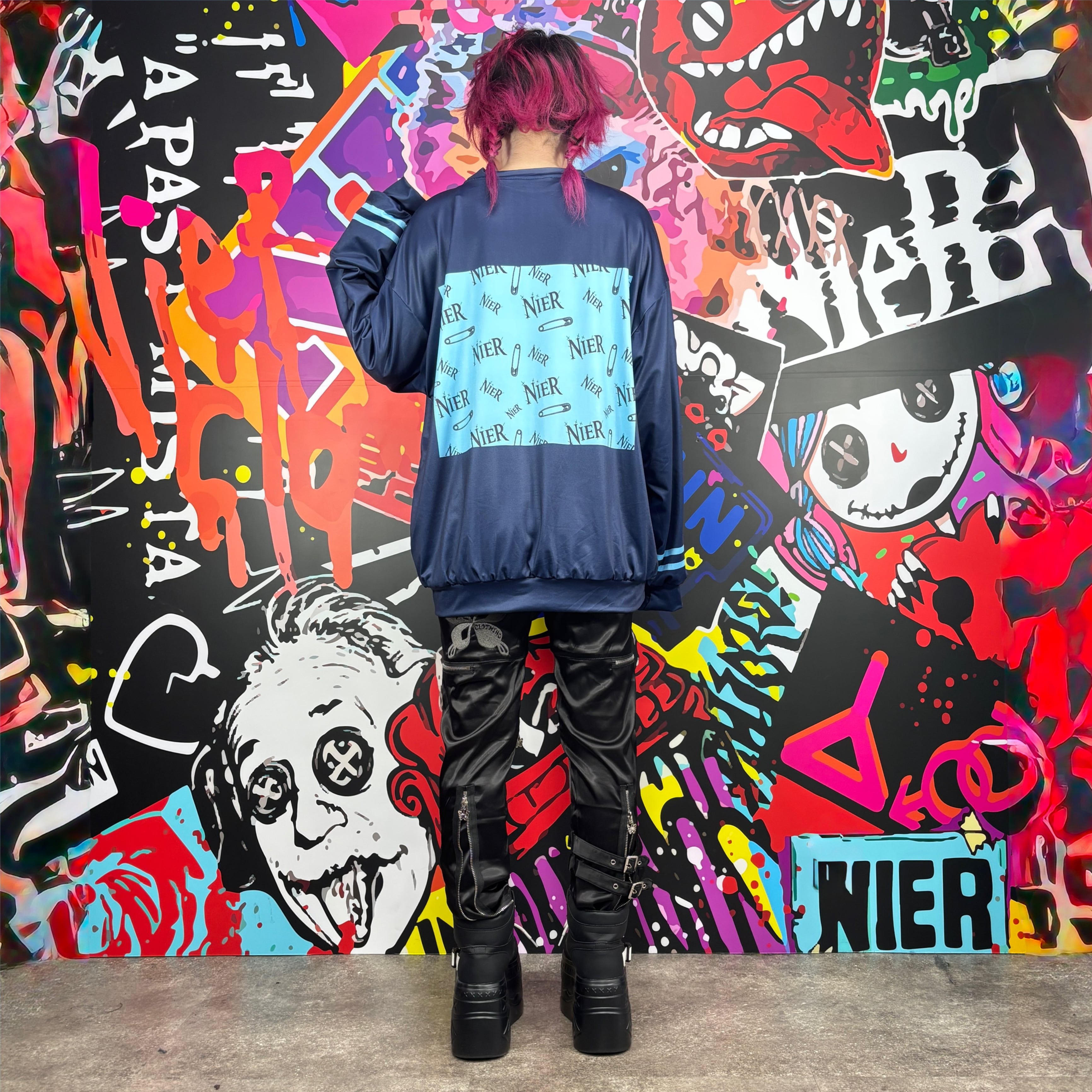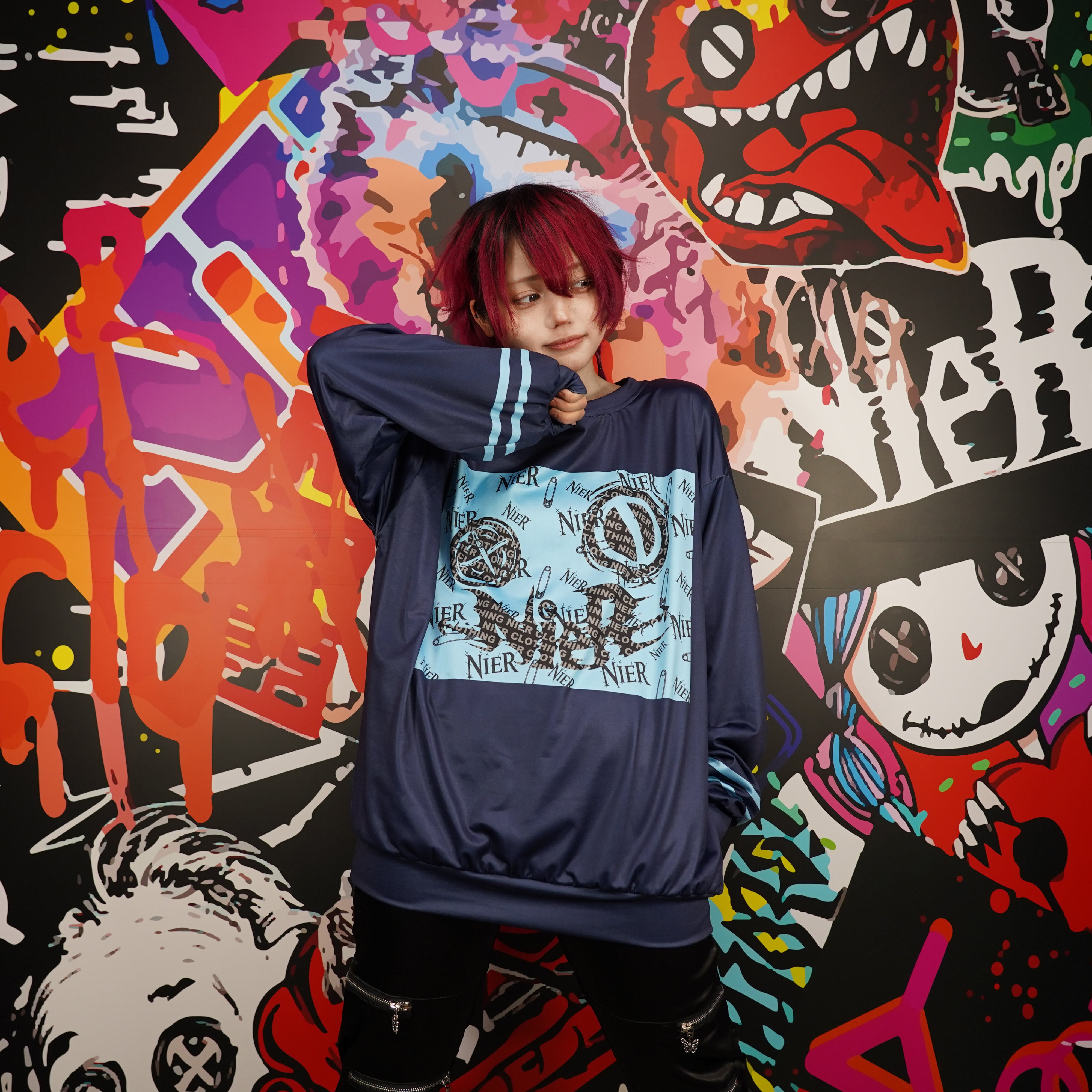 安全ピンやロゴを組み合わせたNIERらしい総柄デザインがコーデの主役になってくれる1着✨