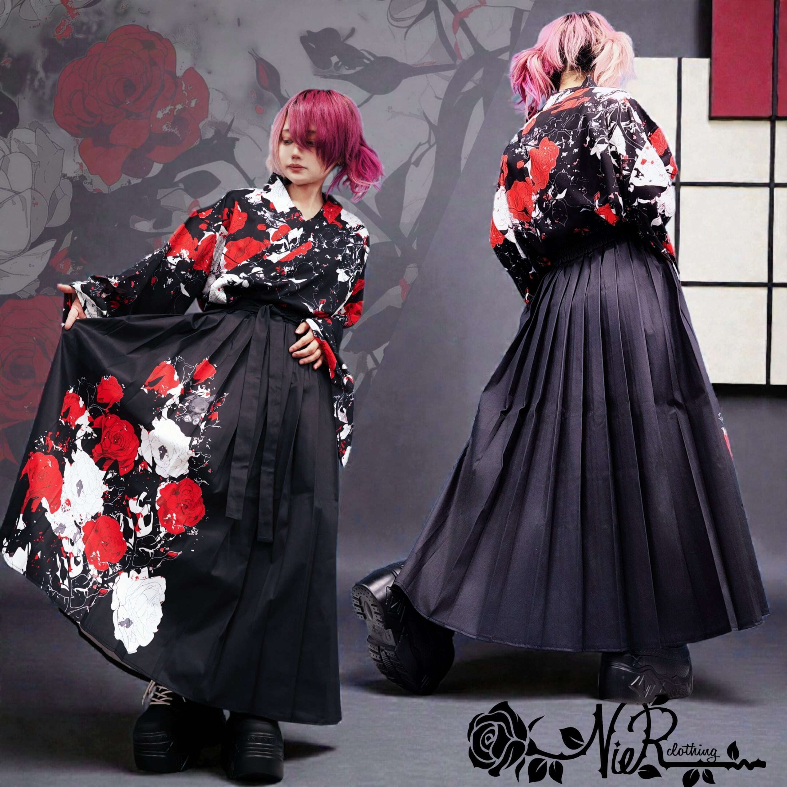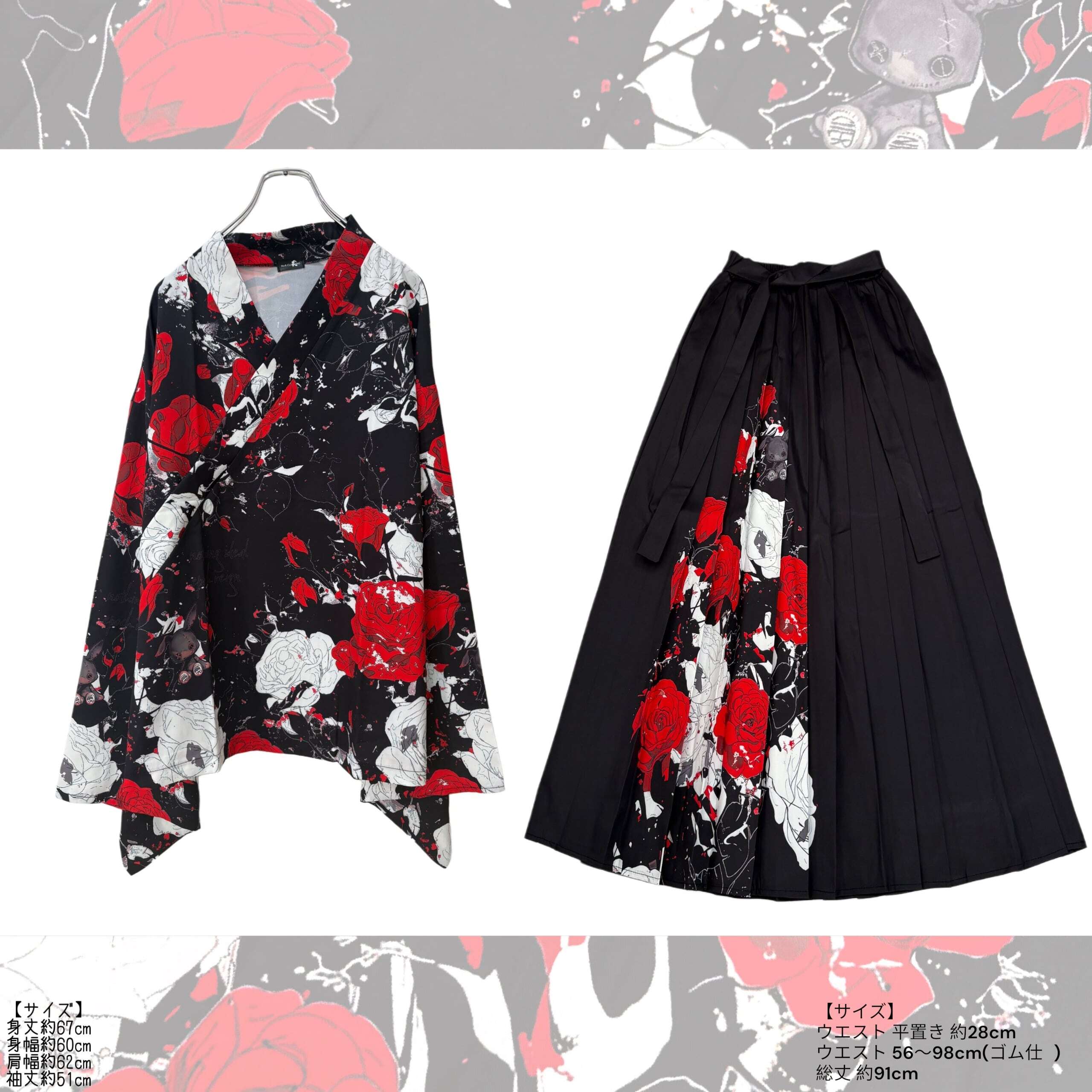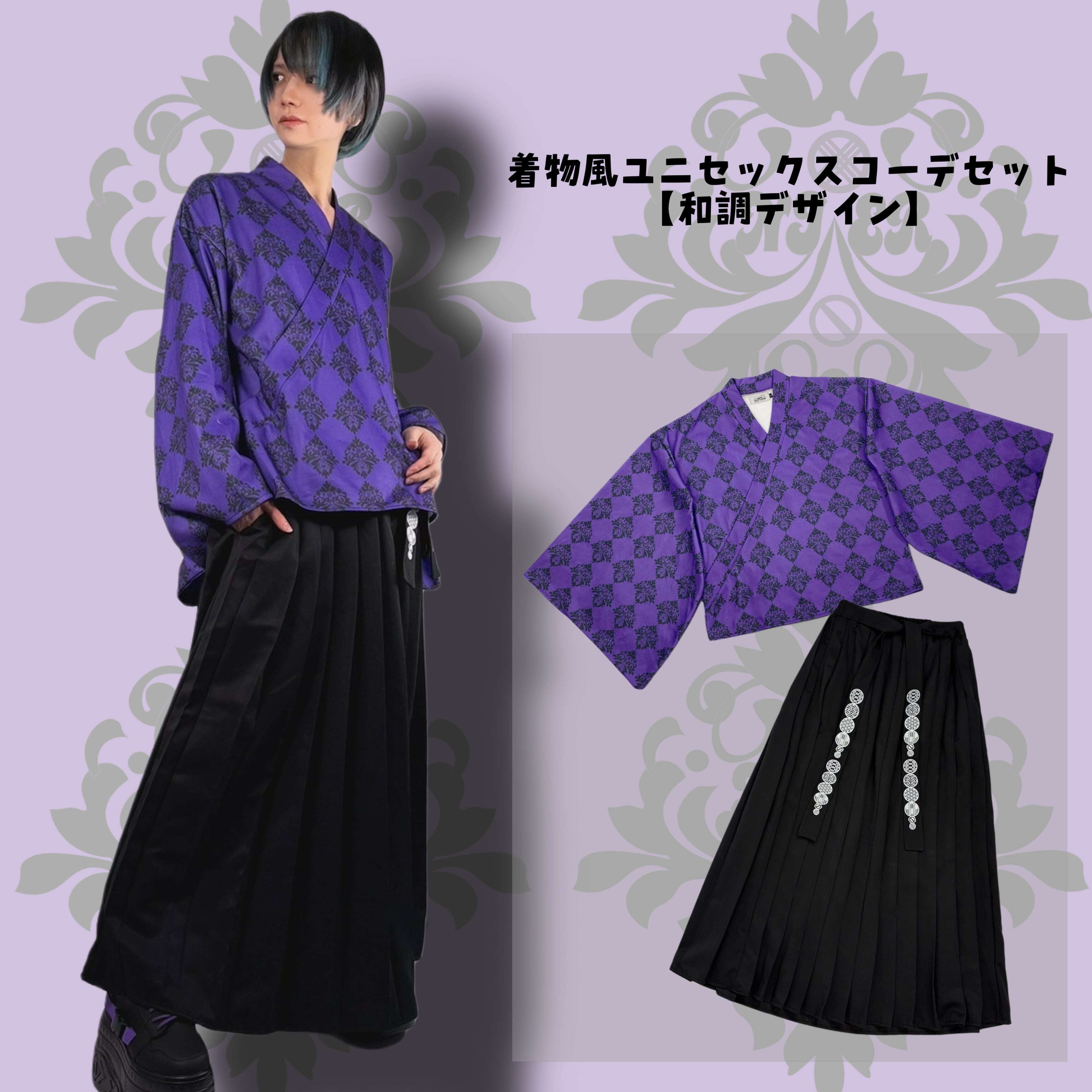 ・UNISEX着物風コーデセット【ELEGANT ROSE】