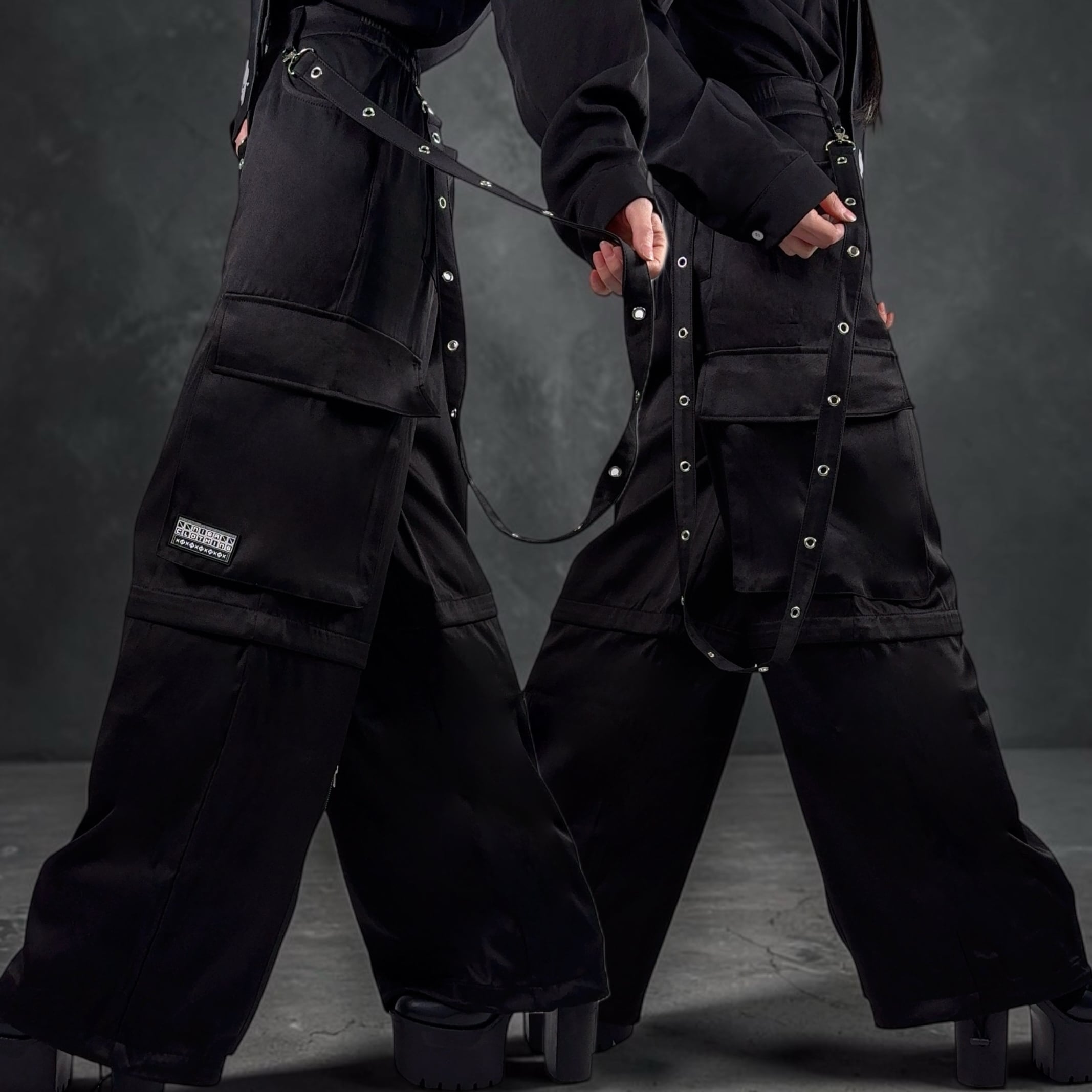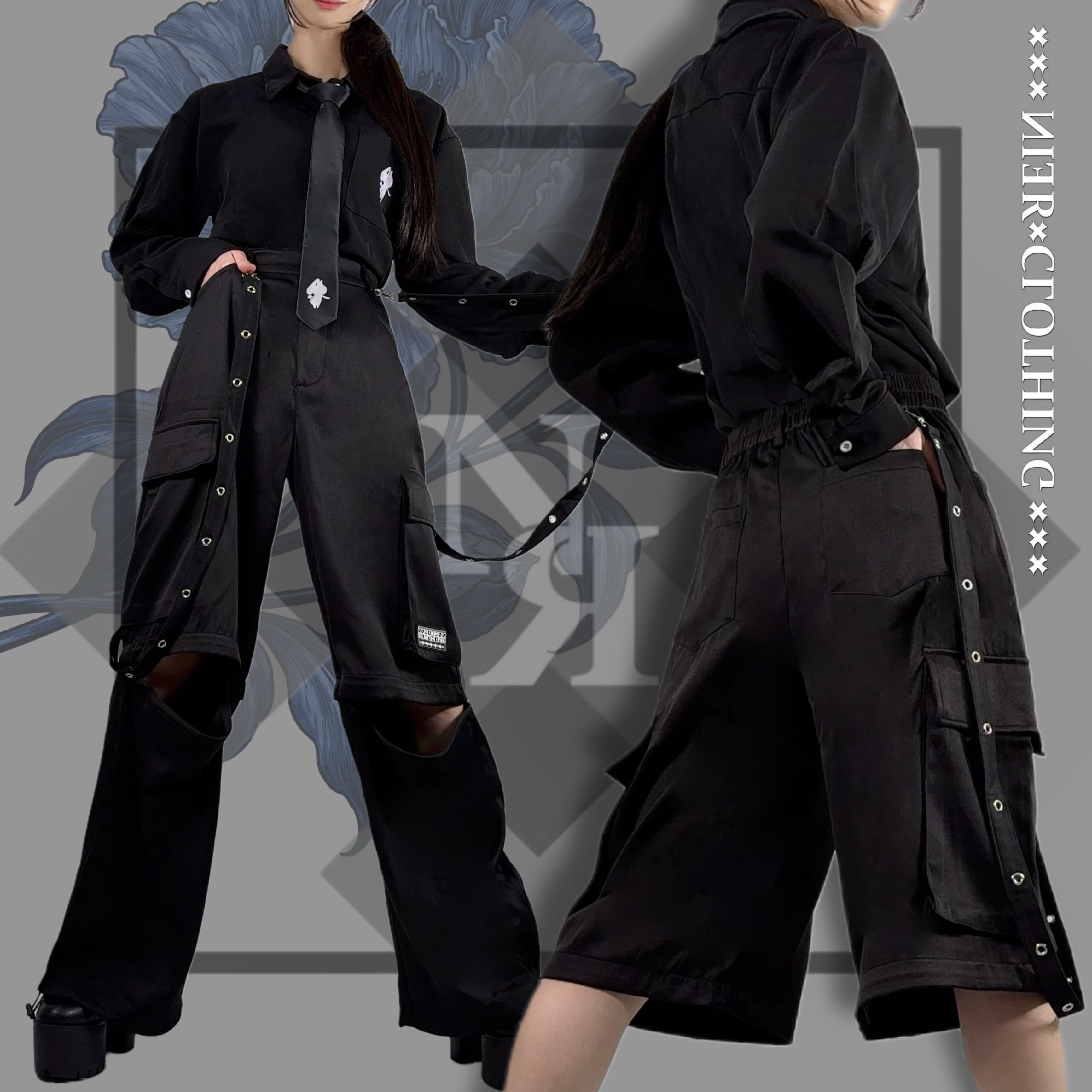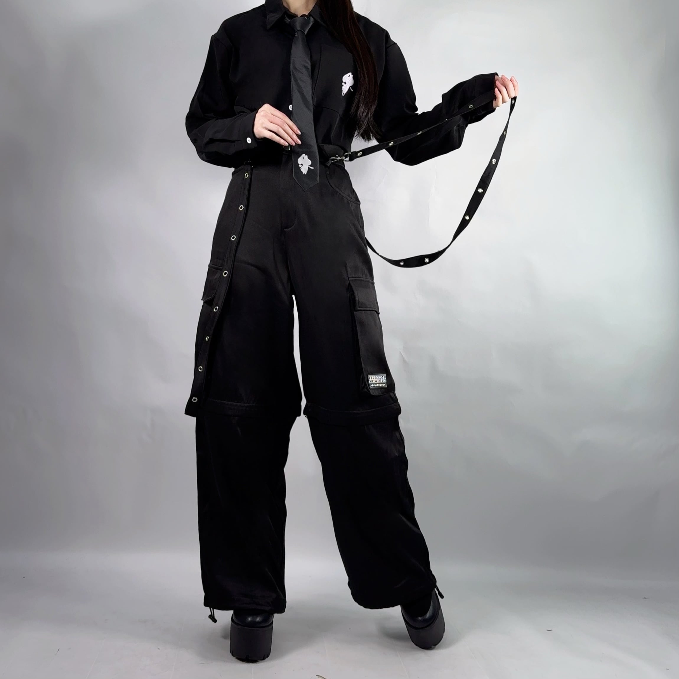 《先着39点限定サンキューセール》6POCKET BLACK 3WAY CARGO PANTS【RUBBER LOGO】