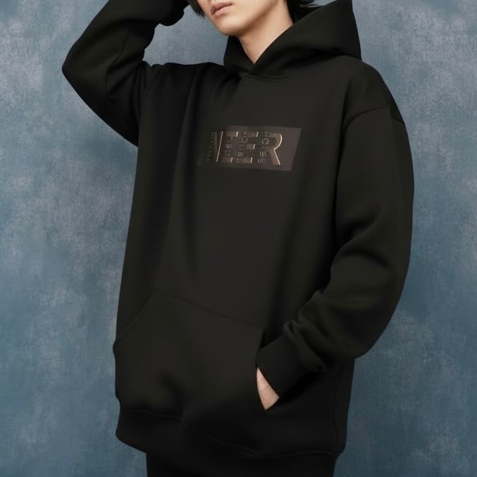 幻想的な光を纏ったロゴデザインが魅力のフーディートップスです。
