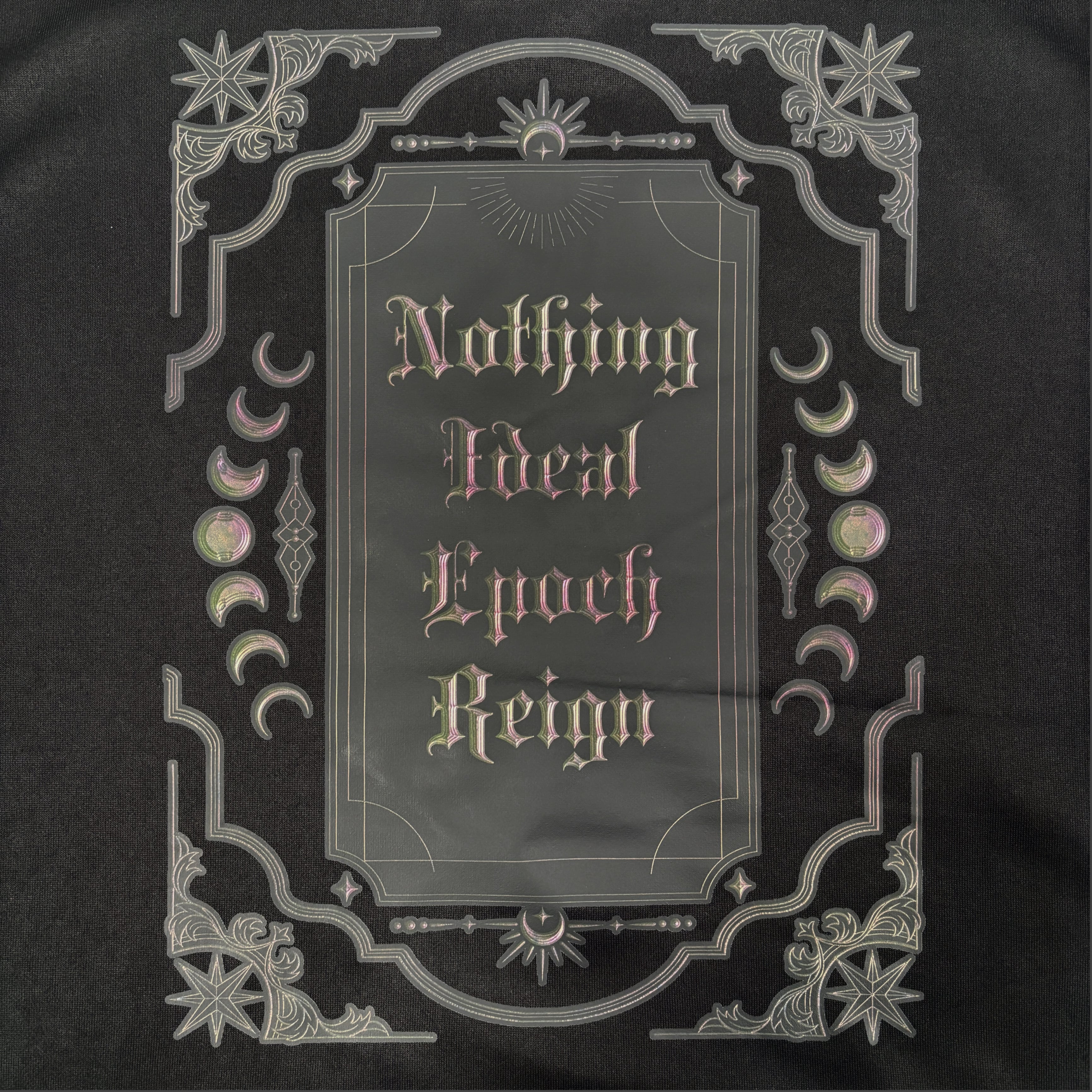 背面には額縁のようなゴシックデザインとメッセージを落とし込み、後ろ姿まで抜かりなく仕上げました。