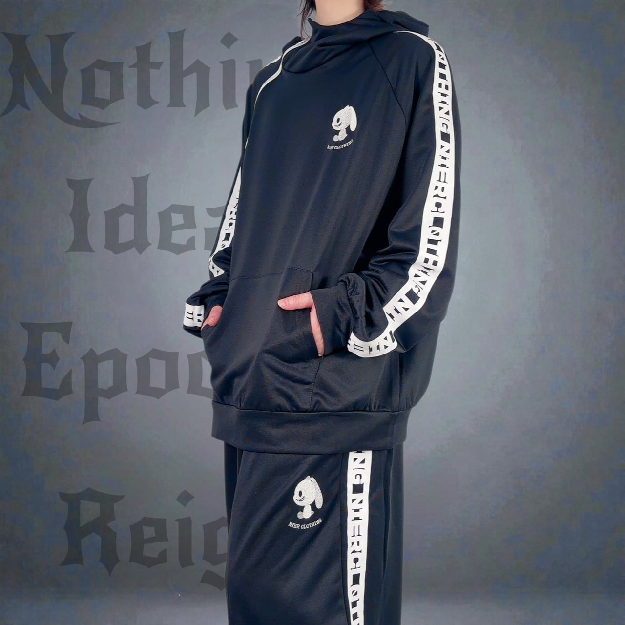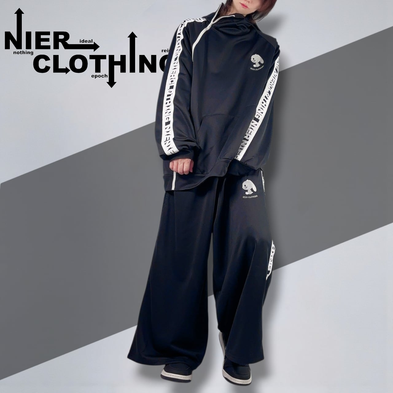 ジップアウター、パンツ共に男女問わずご着用可能なユニセックス商品です。