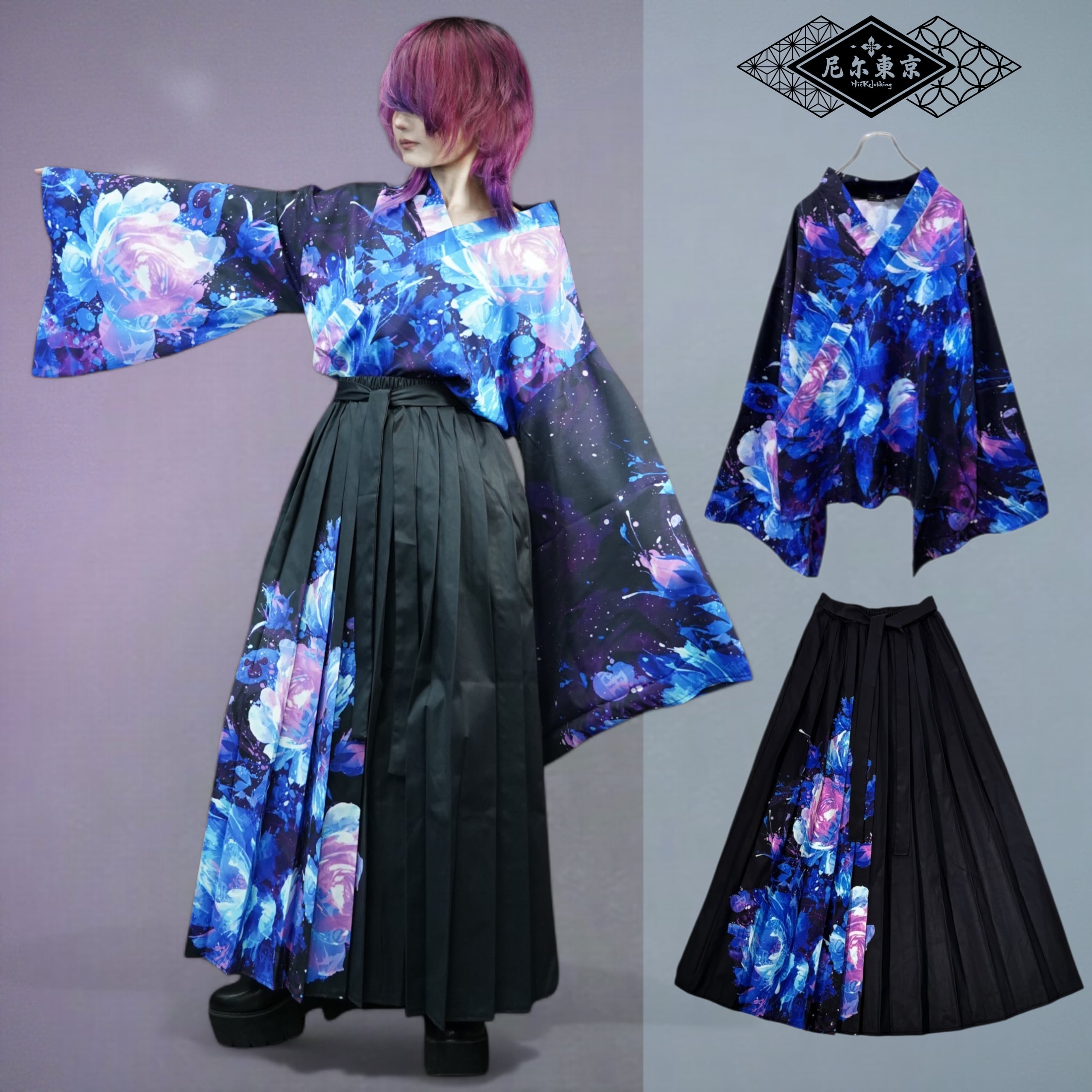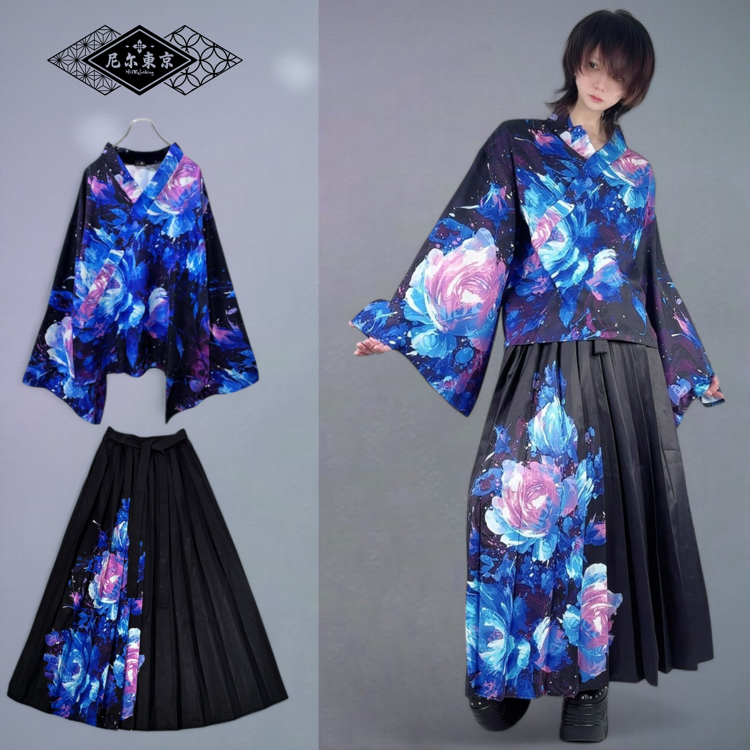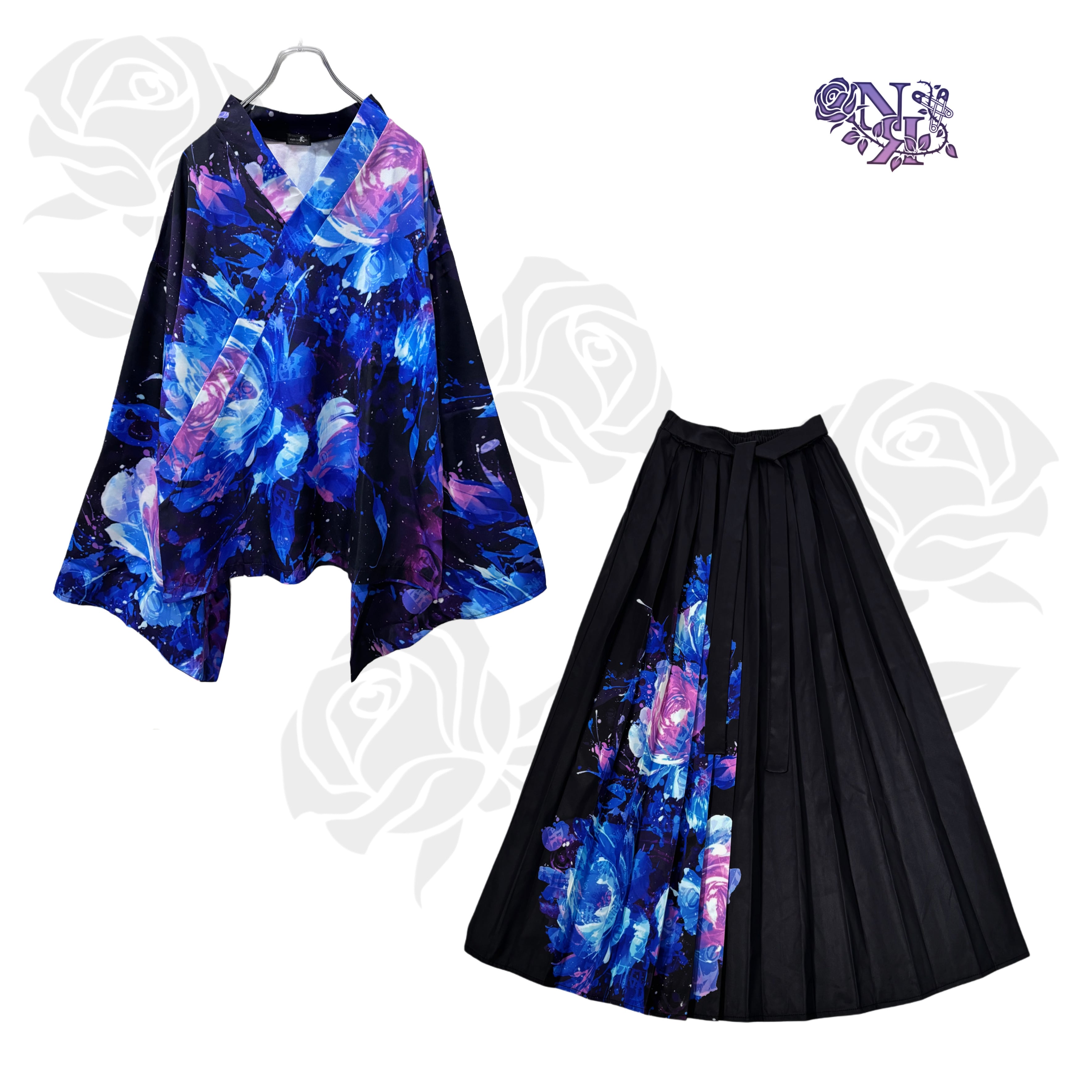 先着20点限定《約7000円OFF》UNISEX青和柄薔薇着物風コーデセット