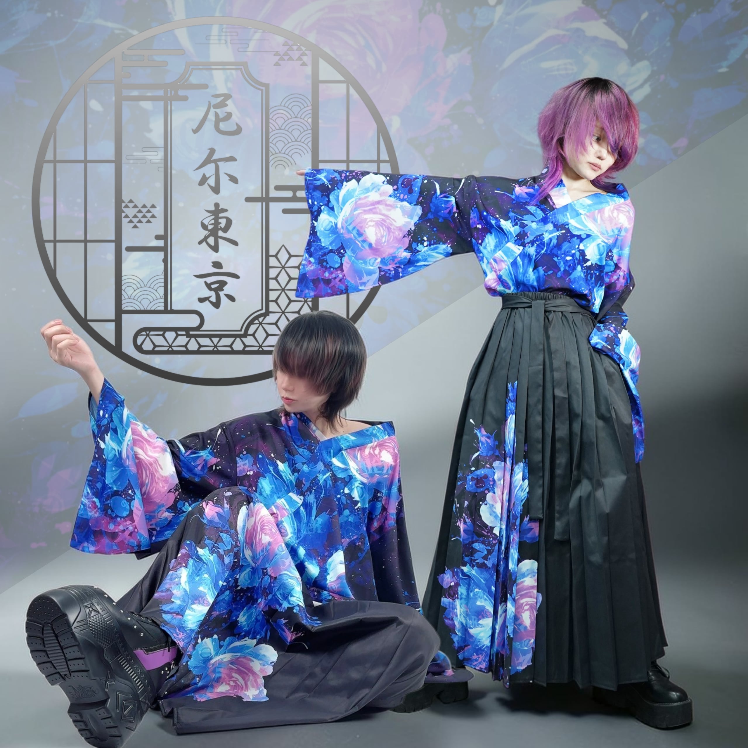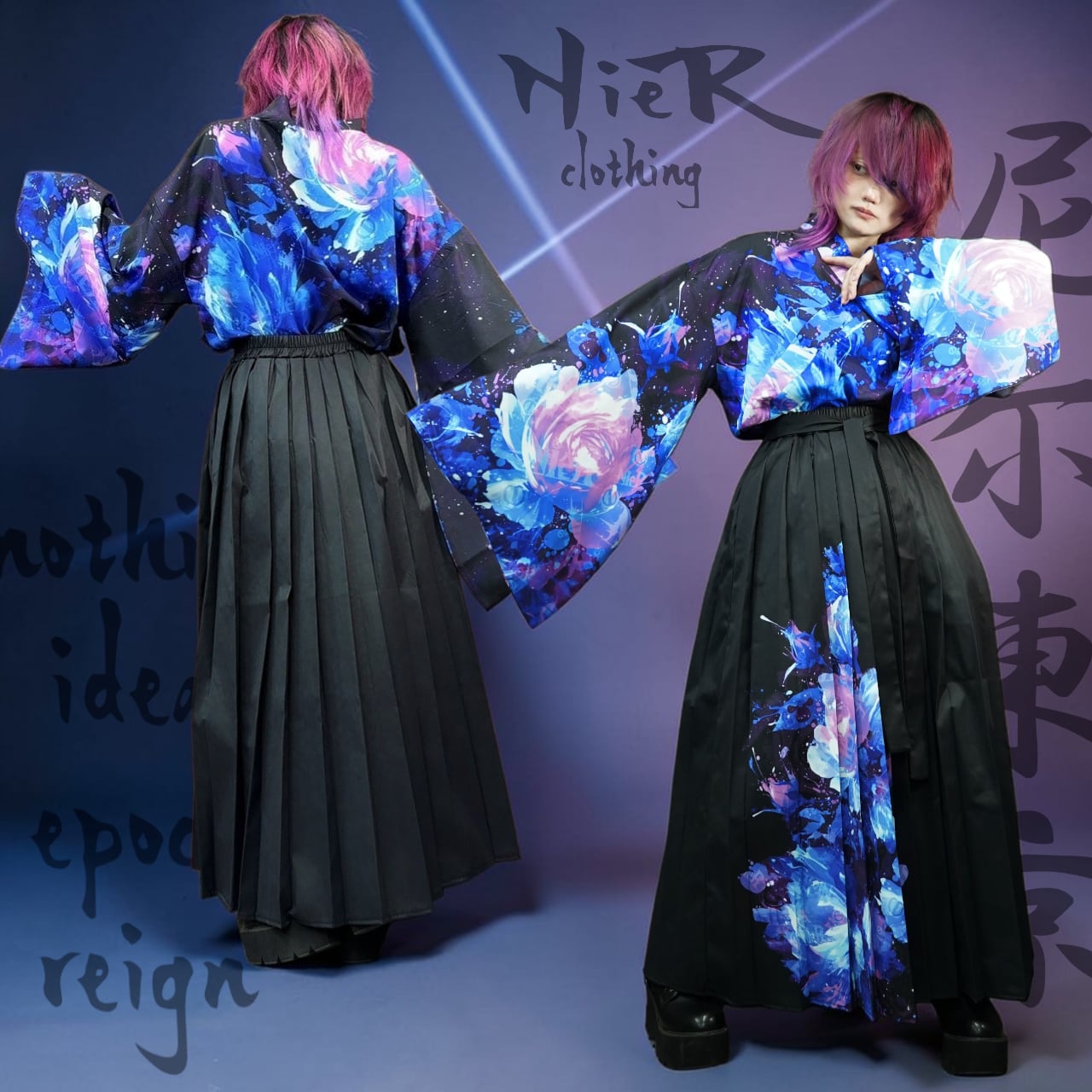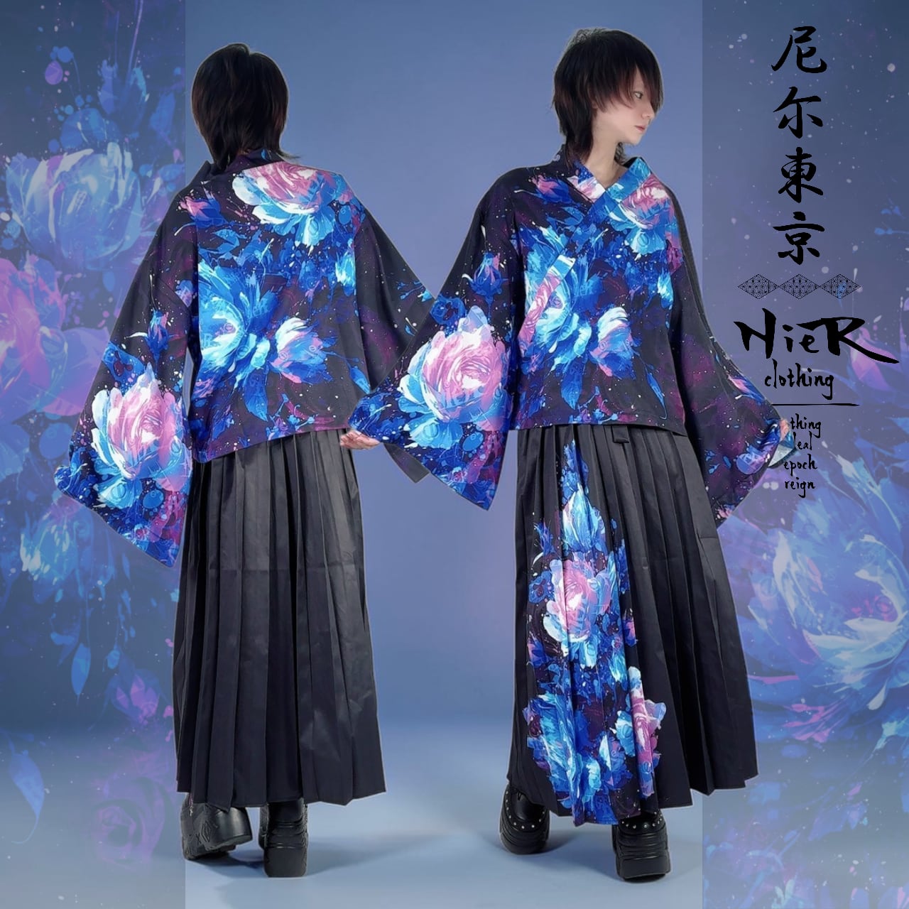 先着20点限定《約7000円OFF》UNISEX青和柄薔薇着物風コーデセット