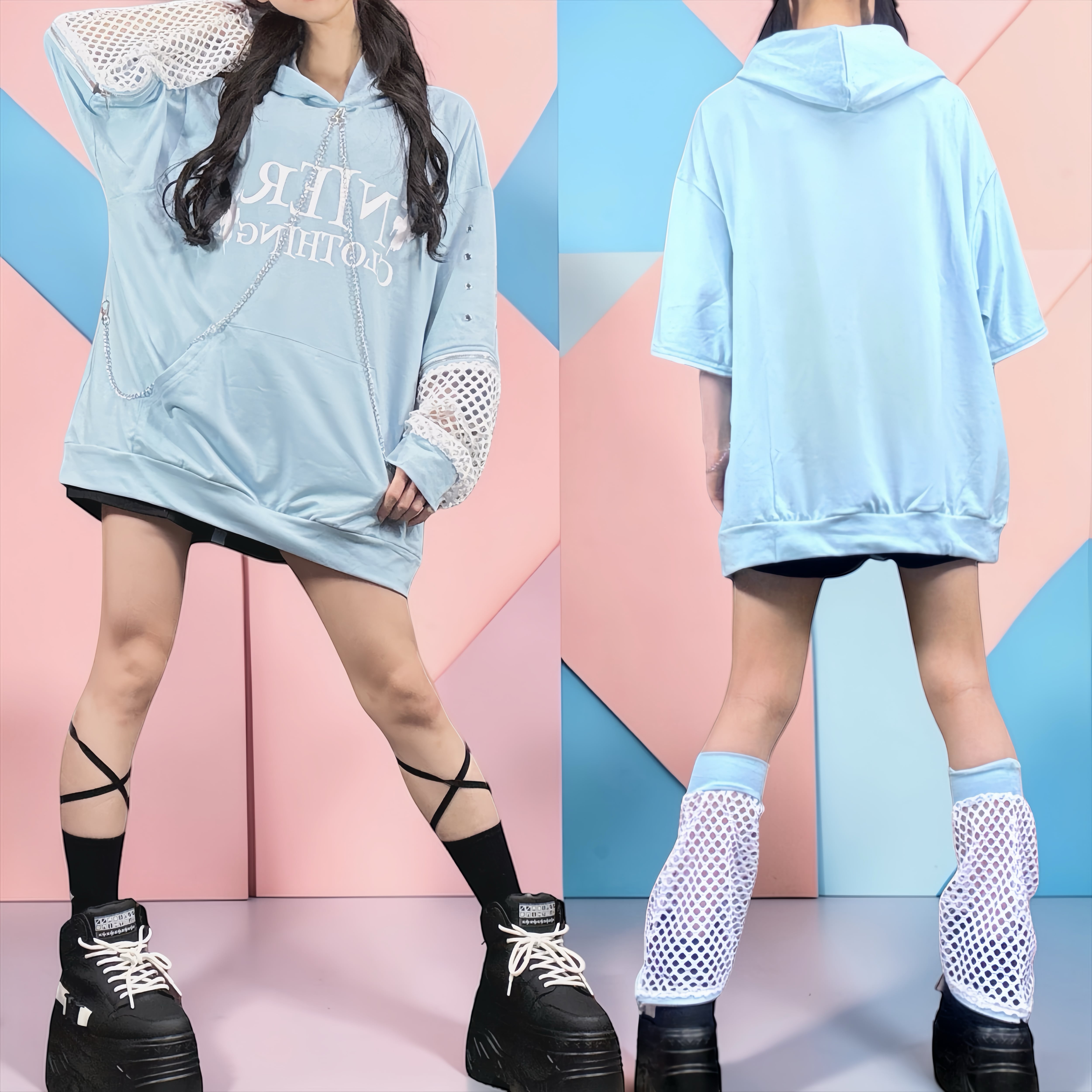 メッシュ素材のスリーブは抜け感を演出しつつ