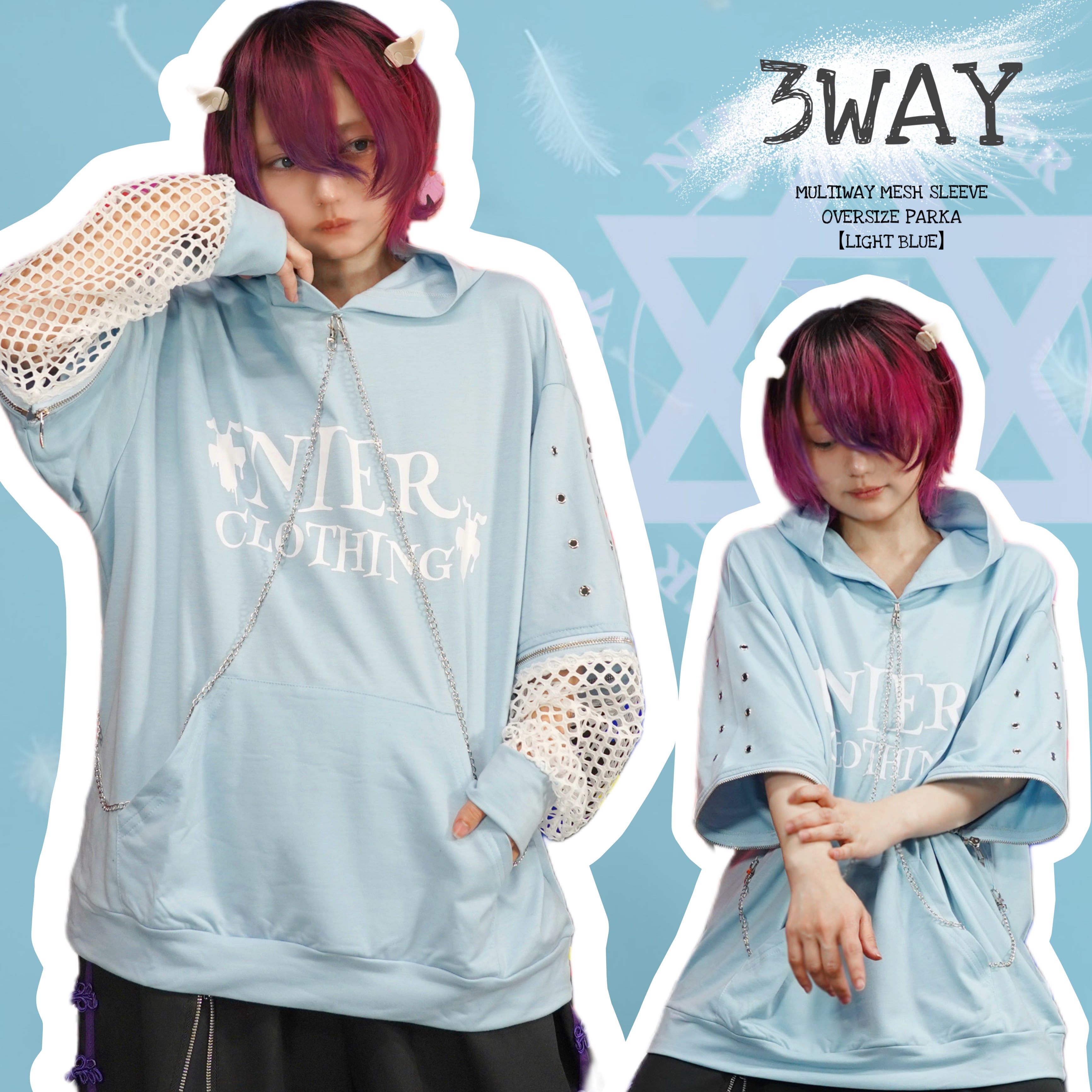 《3/10日目玉大特価》春夏用MULTIWAY MESH SLEEVE OVERSIZE PARKA【LIGHT BLUE】