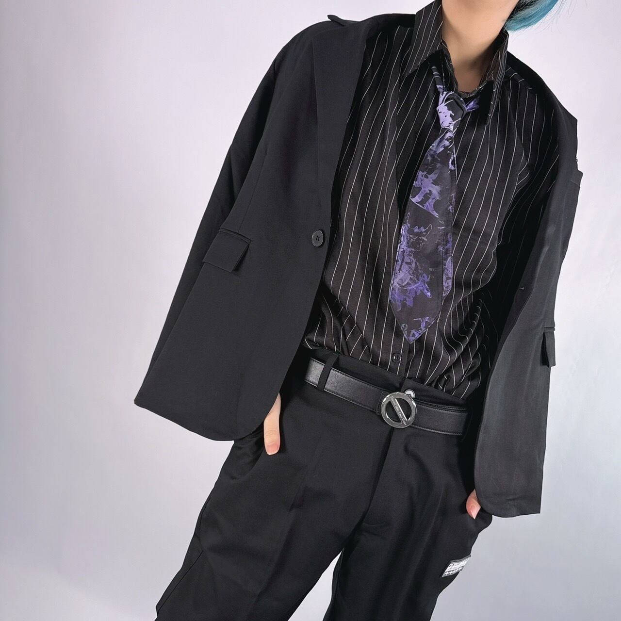 袖ZIP OVERSIZE STRIPE SHIRT【ネクタイ付き】
